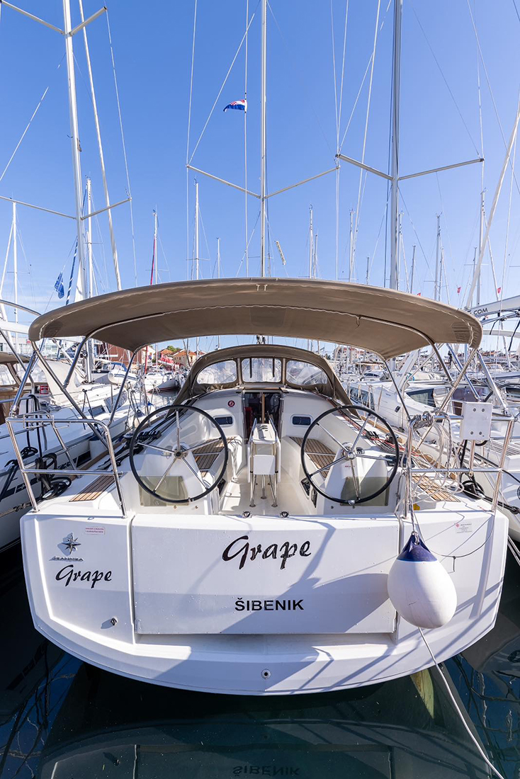 | Outside | 220 V-Landanschluss, Anker mit Kette, Badeleiter, Badeplattform, Biminitop, Bootshaken, Cockpitdusche, Cockpitlautsprecher, Cockpitleuchte, Cockpitpolster, Cockpittisch, Deckbeleuchtung, Dieselkanister , elektr. Ankerwinsch, Fender, Festmacherleinen, Gangway, Kugelfender, Sprayhood, Treibanker, Wantenschneider, Windex |