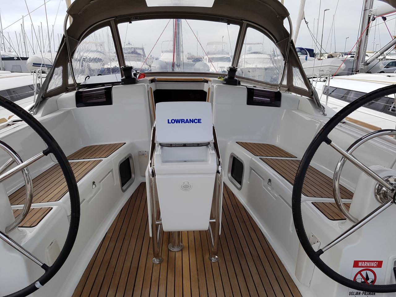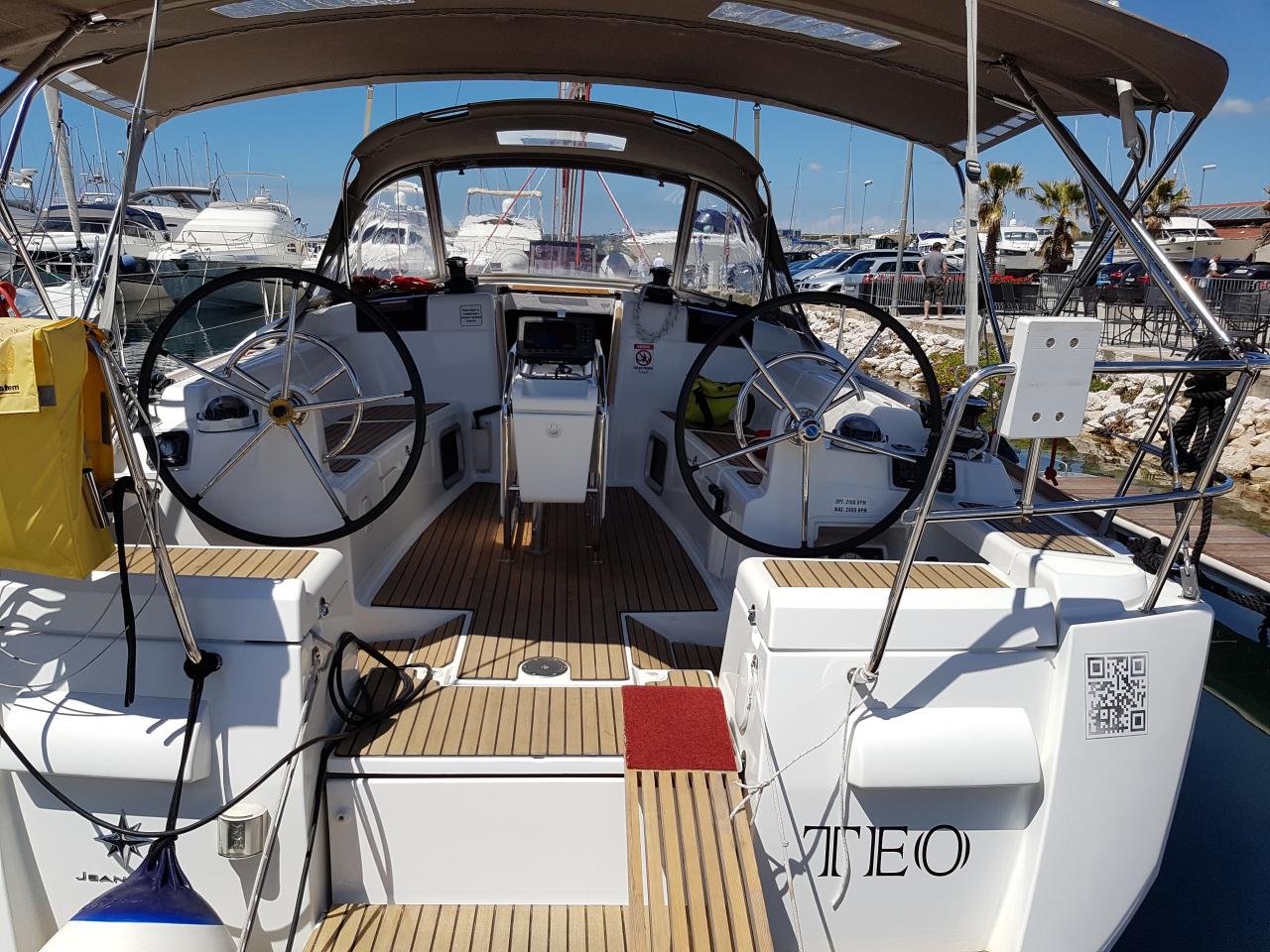 | Outside | 12 V-Anschluss, 220 V-Landanschluss, Biminitop, Cockpitdusche, Cockpittisch, elektr. Ankerwinsch, Gangway, Sprayhood, Teak im Cockpit, Windex |