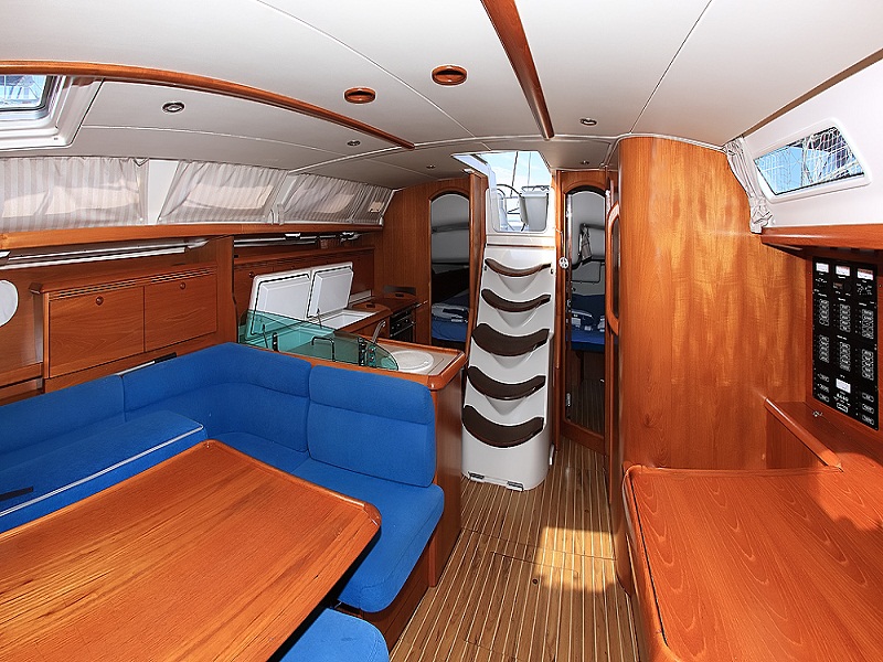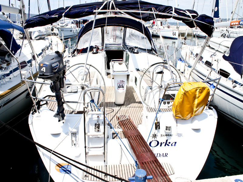 | Outside | 220 V-Landanschluss, Anker mit Kette, Biminitop, Bootshaken, Cockpitdusche, Cockpitlautsprecher, Cockpitpolster, Cockpittisch, elektr. Ankerwinsch, Fender, Festmacherleinen, Sprayhood, Teak im Cockpit, Windex |
