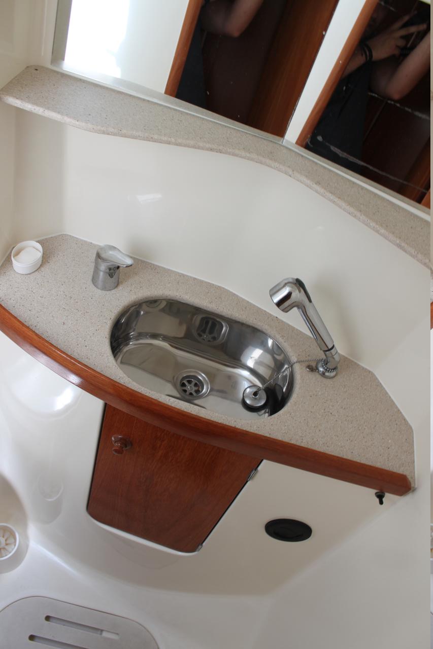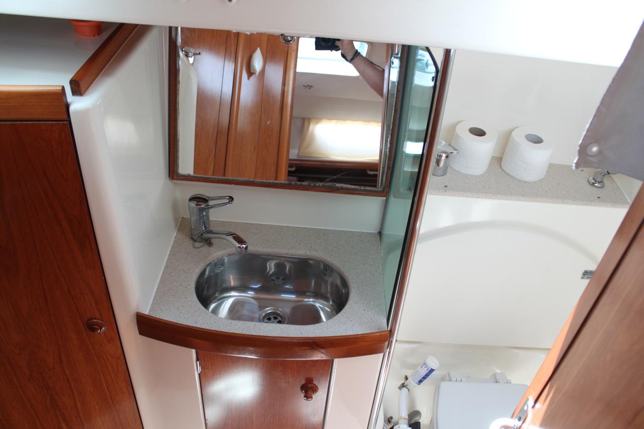 | Outside | 220 V-Landanschluss, Anker mit Kette, Biminitop, Bootshaken, Cockpitdusche, Cockpitlautsprecher, Cockpitpolster, Cockpittisch, elektr. Ankerwinsch, Fender, Festmacherleinen, Sprayhood, Teak im Cockpit, Windex |