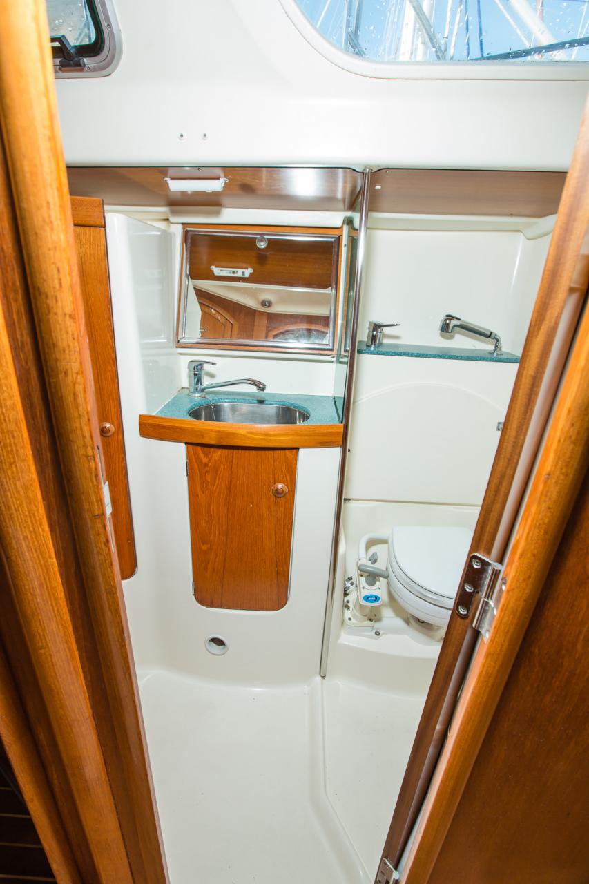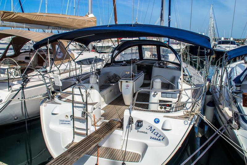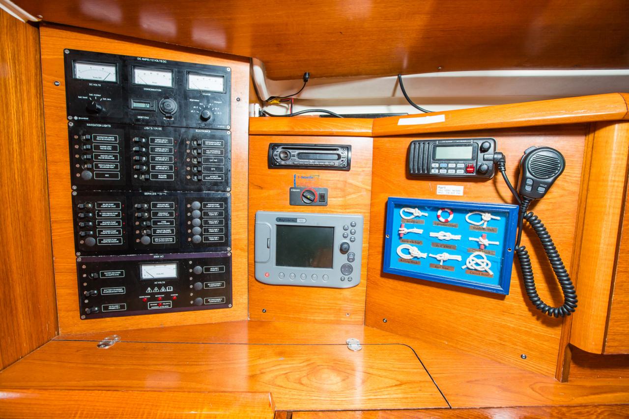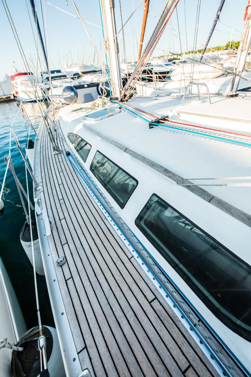 | Outside | Biminitop, Cockpitdusche, Cockpitlautsprecher, Cockpittisch, elektr. Ankerwinsch, Festmacherleinen, Sprayhood, Teak im Cockpit, Teakdeck |