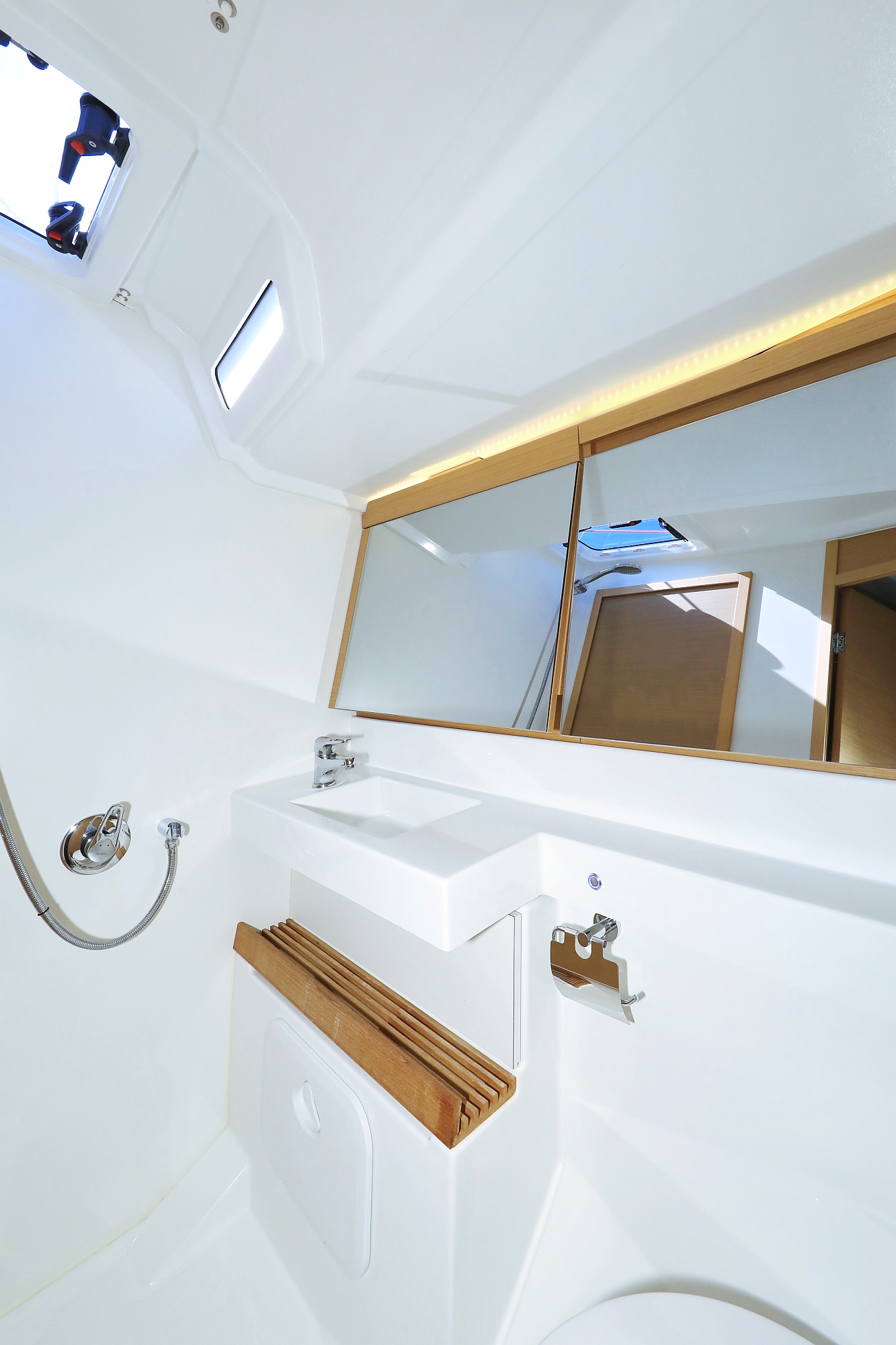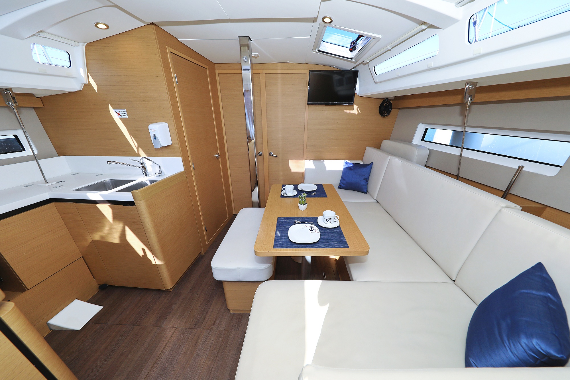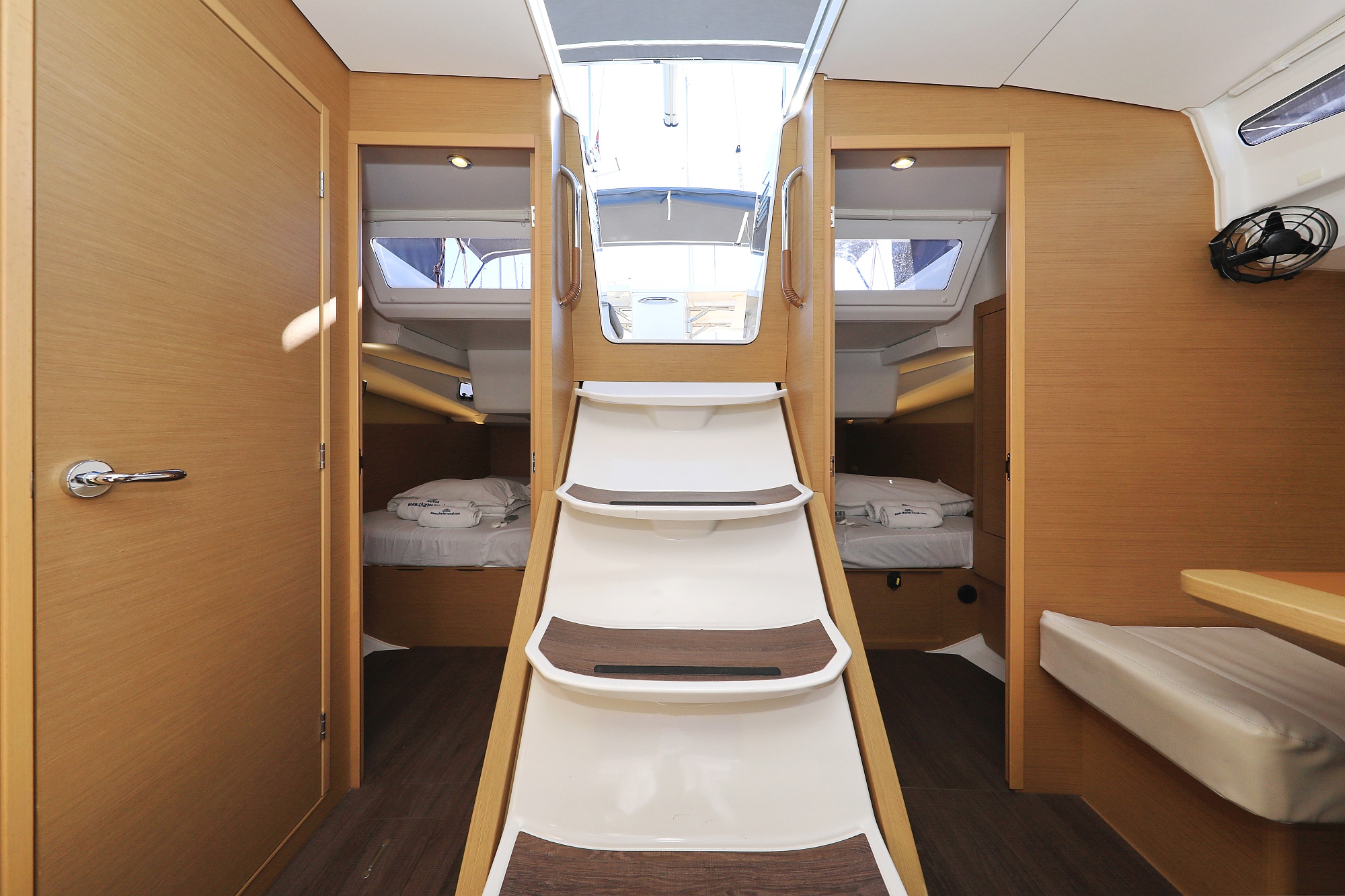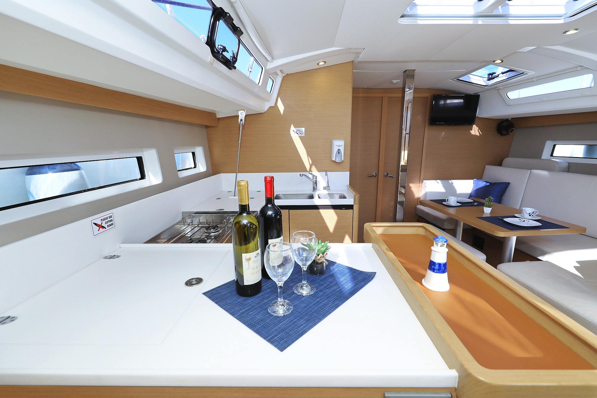 | Inside | Eiswürfelmaschine, Heizung, Inverter 12V/220V, Kaffeemaschine, Klimaanlage (Landstrom), Ladegerät, Lautsprecher im Salon, Radio mit USB und Bluetooth, Salontisch absenkbar, Spülbecken, USB Steckdose, Ventilatoren in Kabinen, Warmwasser, Watermaker |