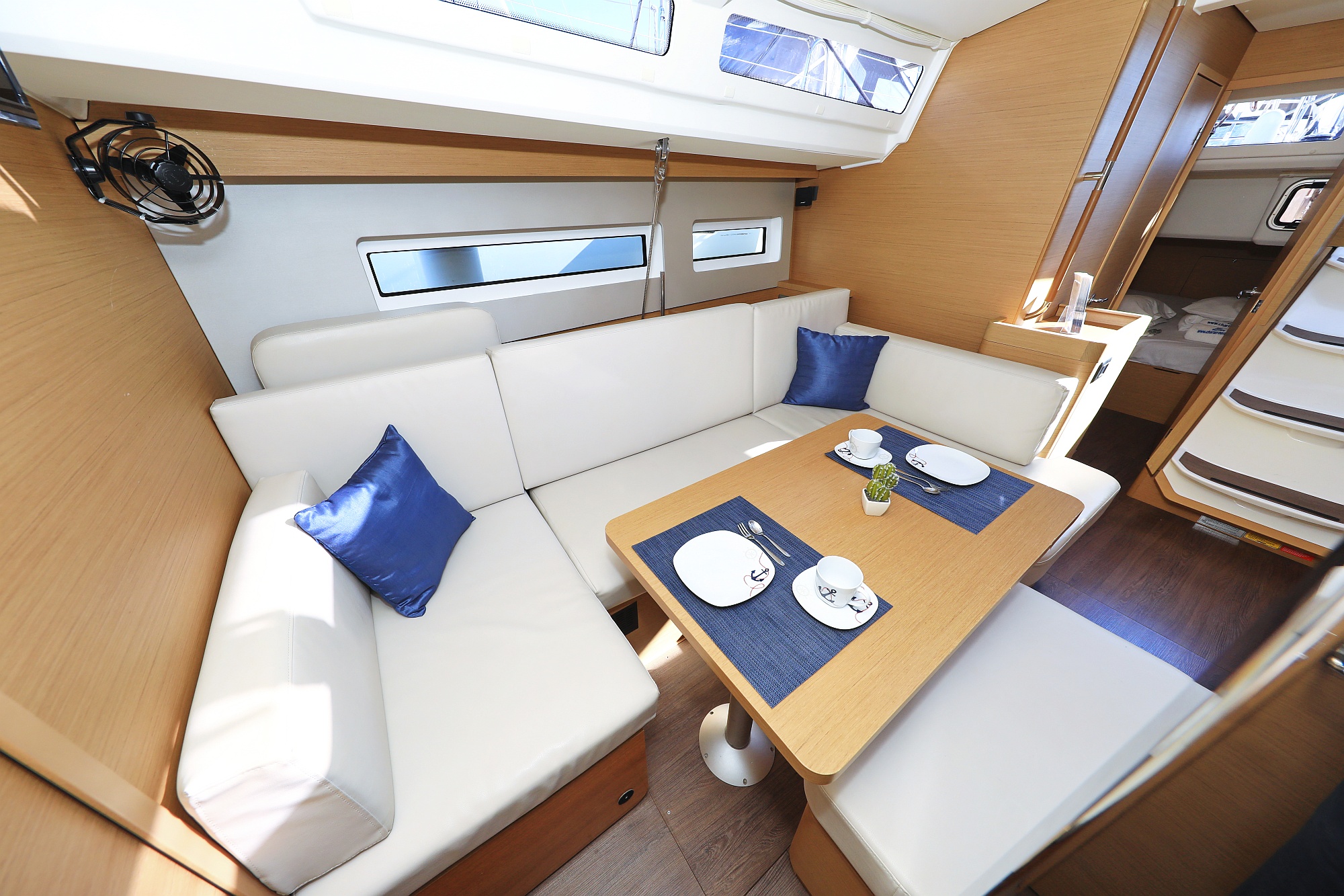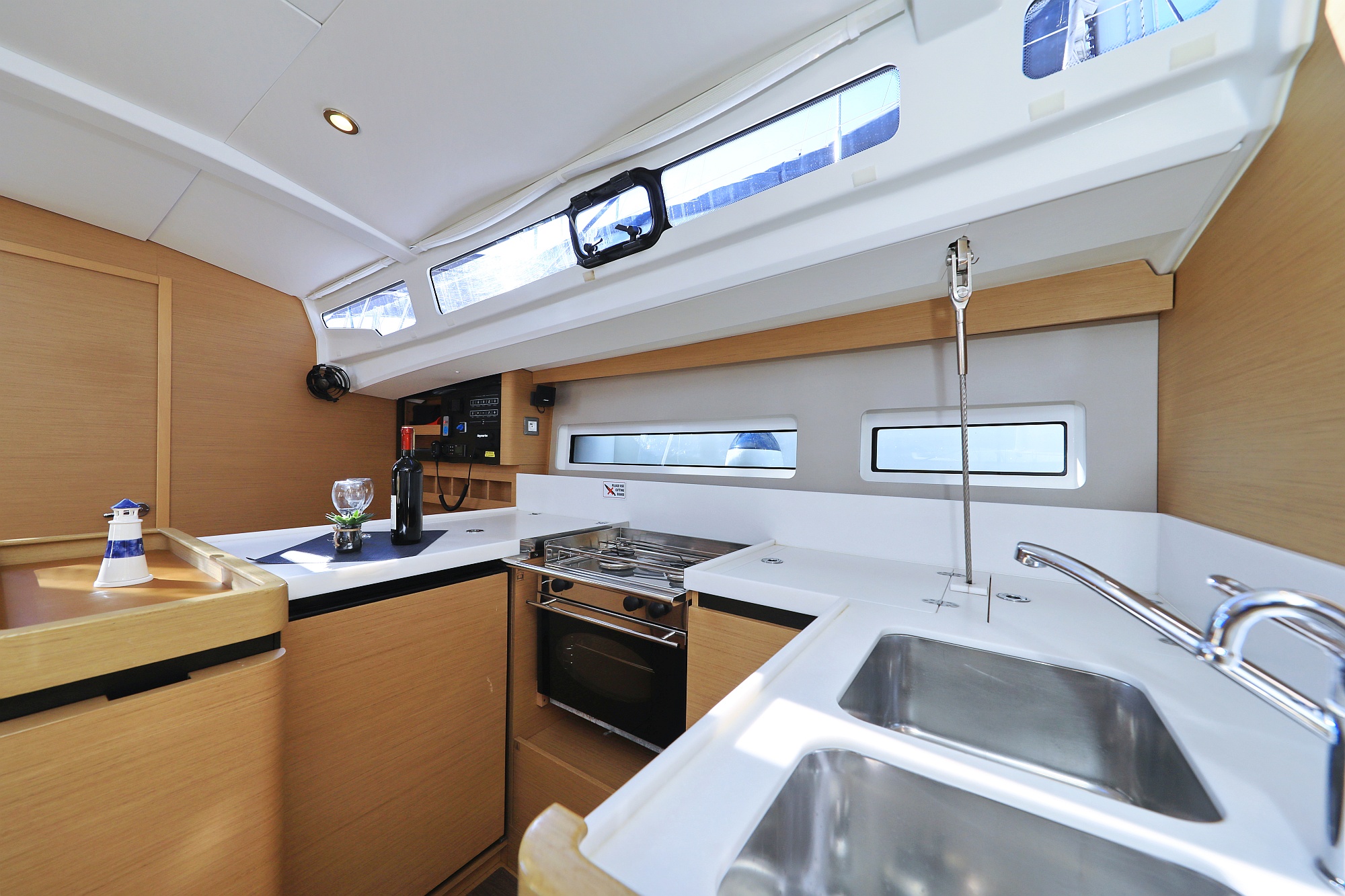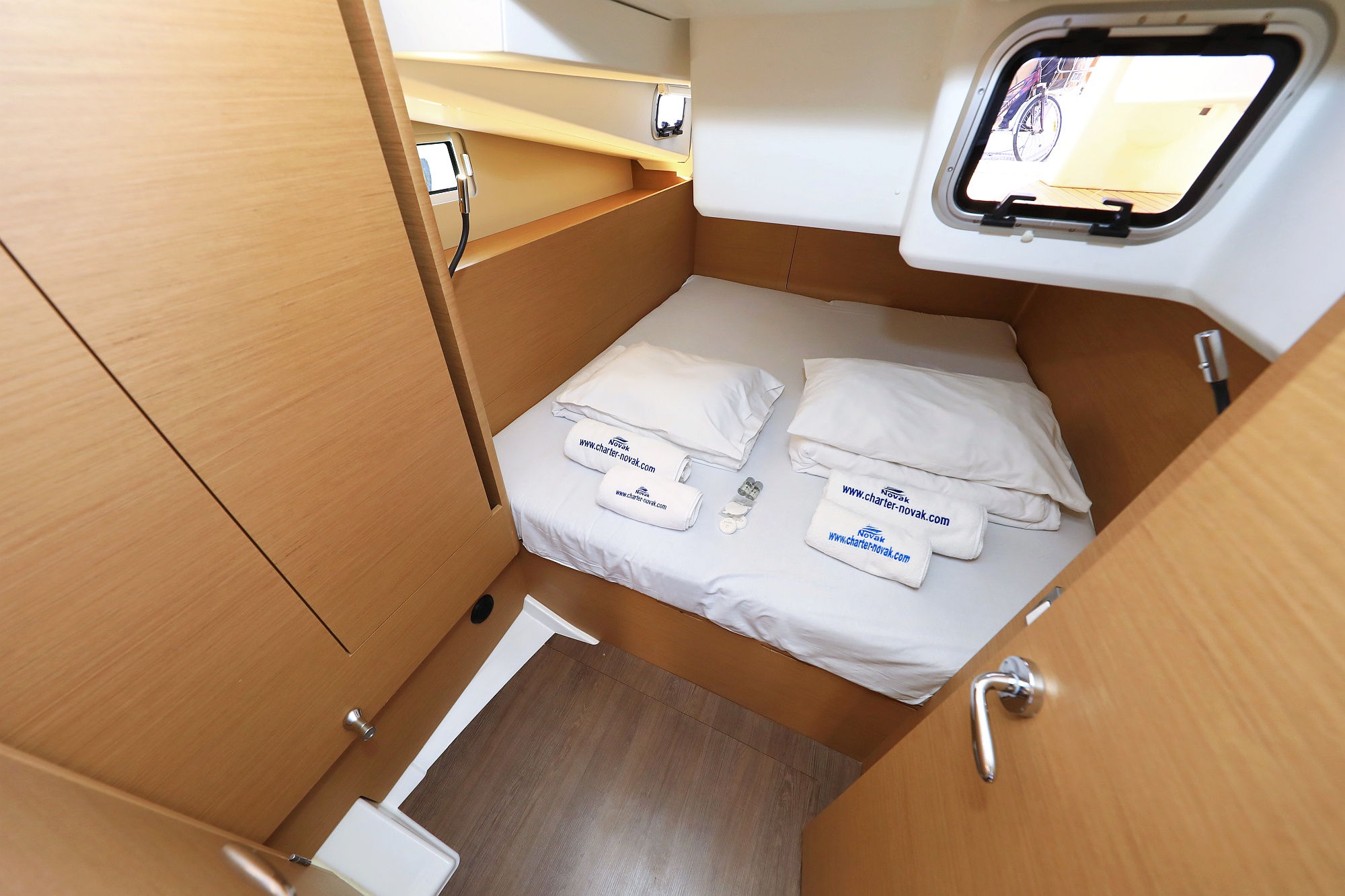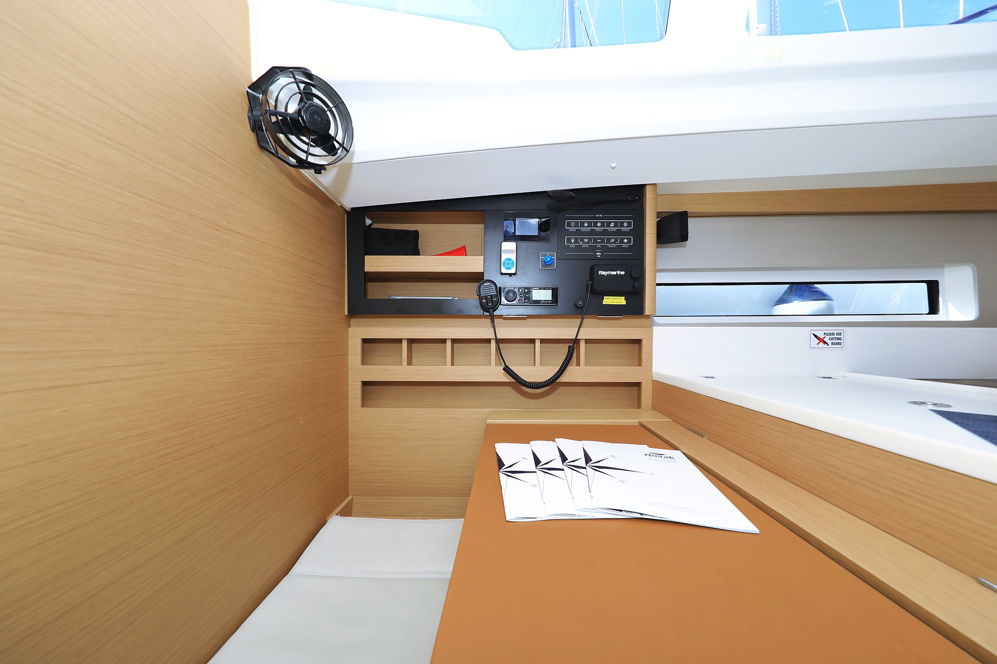 | Inside | Eiswürfelmaschine, Heizung, Inverter 12V/220V, Kaffeemaschine, Klimaanlage (Landstrom), Ladegerät, Lautsprecher im Salon, Radio mit USB und Bluetooth, Salontisch absenkbar, Spülbecken, USB Steckdose, Ventilatoren in Kabinen, Warmwasser, Watermaker |