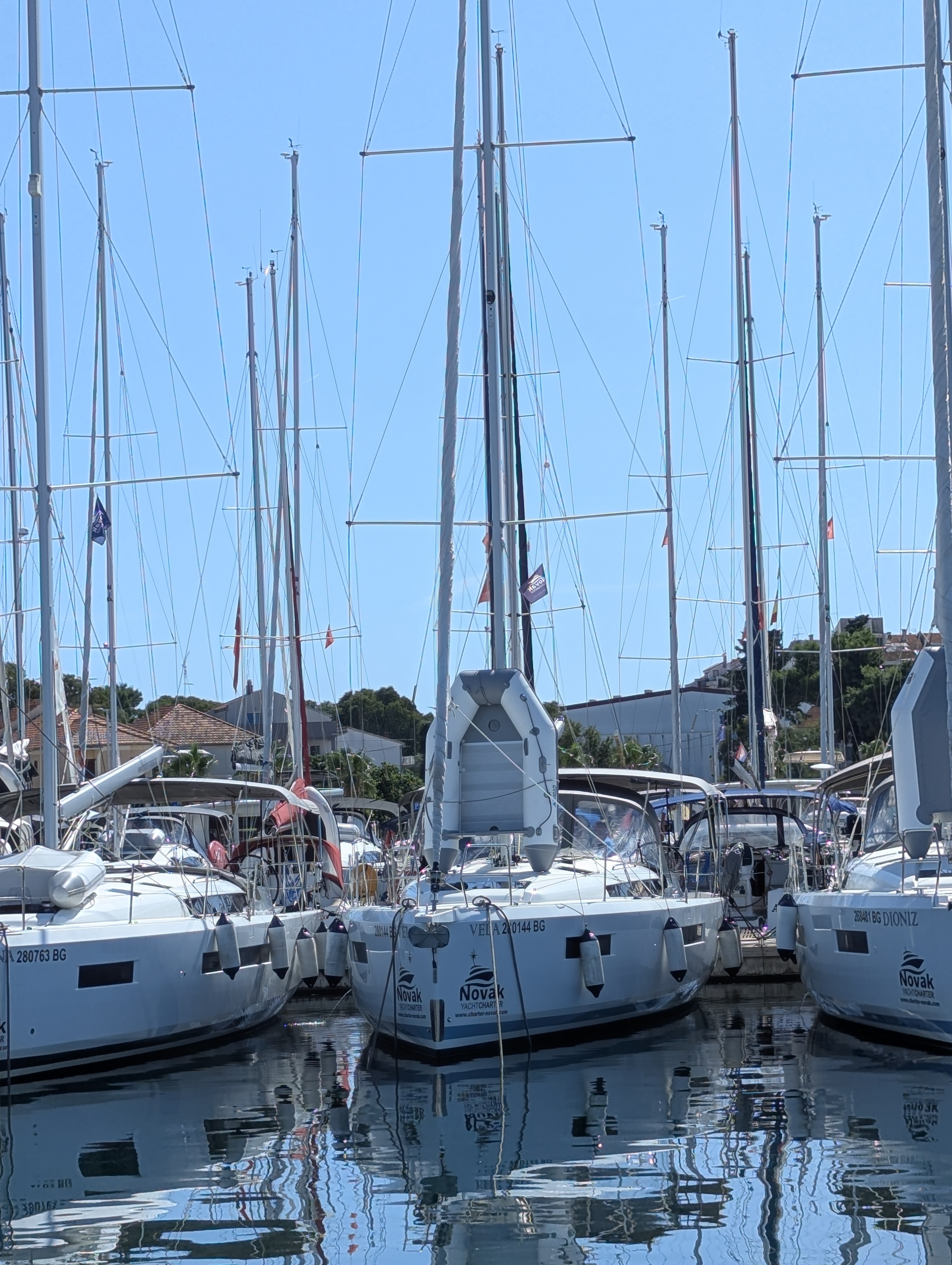 Biograd präsentiert sich als bedeutender Hafen mit einer Vielzahl an Charterfirmen. Die sanitären Einrichtungen sind ausgezeichnet und die Einkaufsmöglichkeiten am Hafen sind gut, obwohl die Preise, wie bei Konzum, recht hoch sind; daher haben wir bevorzugt im Hinterland eingekauft. Die Charterfirmen sind darauf ausgerichtet, die Vertragsabwicklungen rasch durchzuführen, was jedoch oft zu Lasten des persönlichen Kontakts geht. Niemand erkundigte sich nach unserem Törn, unseren Erlebnissen oder Zielen. Auch beim Check-in blieben Fragen zu Törnzielen und weiterführenden Informationen meist nur oberflächlich beantwortet. Ein hilfreicher Tipp von Ivana war, bereits einen Tag früher zu tanken, da die Yachttankstelle freitags extrem!!!! überlastet ist, mit Wartezeiten von mehreren Stunden. Ein Nachbarschiff verzichtete schließlich aufs Tanken, was zu hohen Zusatzkosten führte. Als Alternative bietet sich das Tanken in Murter an. Die Angabe zum Tiefgang der Yacht war leider irreführend, da auf dem Boot 2,10 Meter, in den Dokumenten aber 1,60 Meter angegeben waren. Kritikpunkt ist die "Abzockpolitik"; selbst an freien Ankerplätzen versucht man, den Crews Geld abzunehmen, was keinen positiven Eindruck hinterlässt. Die ohnehin begrenzten freien Ankerplätze werden dadurch weniger attraktiv. Unser Rückflug hatte sich um zwei Stunden verspätet, und am Flughafen Zadar wurden für 0,5 Liter stilles Wasser bei Temperaturen um 30 Grad unverschämte 4 Euro verlangt, ohne alternative Bezugsquellen. Insgesamt reiht sich dieser Törn trotz der genannten "Herausforderungen" unter unseren Top 4 Törns ein. Vielen Dank an 1A Yachtcharter für die ausgezeichnete Betreuung – wie immer fühlten wir uns bestens aufgehoben!