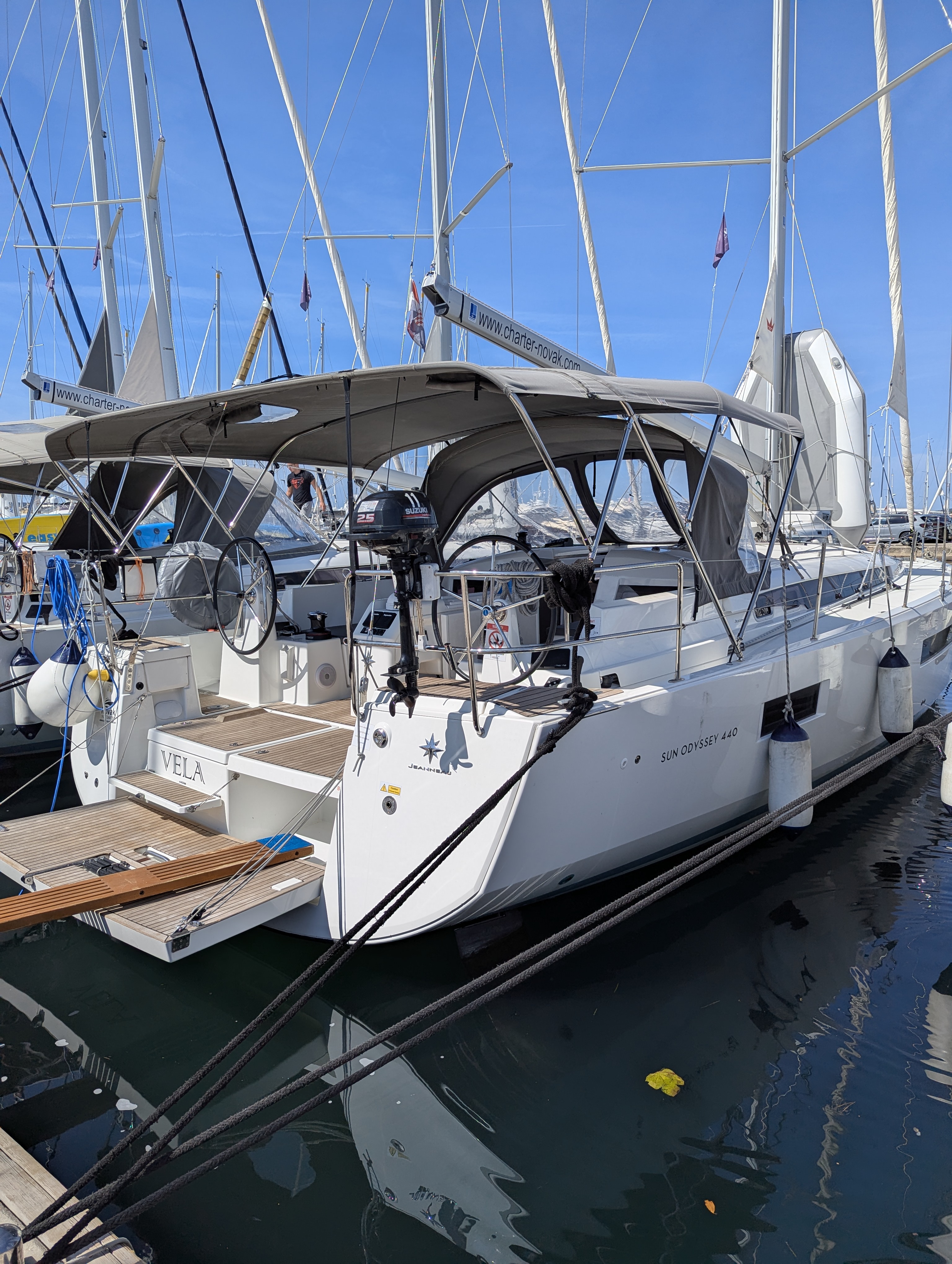 Bilge mit Süßwasser voll gelaufen, Ankerwinsch teilweise sehr langsam, war dem Vercharterer bekannt. Wir durften keine Gegenstände beim Vercharterer lassen. Elektrikpaneele falsch herum verkabelt, Windmesser defekt. Ein älterer Herr vor Ort beim Anlegemanöver sehr unfreundlich und hatte barschen Ton. Monika von der Anmeldung sehr nett und Typ von der Bootsübergabe auch nett. Außenborder hat nicht funktioniert, immerhin Geld zurück bekommen