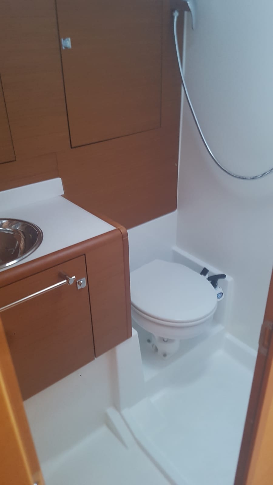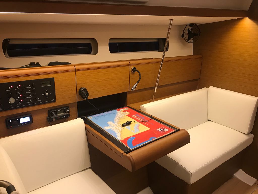 | Outside | Badeplattform, Biminitop, Cockpitdusche, Cockpitlautsprecher, Cockpittisch, elektr. Ankerwinsch, Sprayhood, Teak im Cockpit |