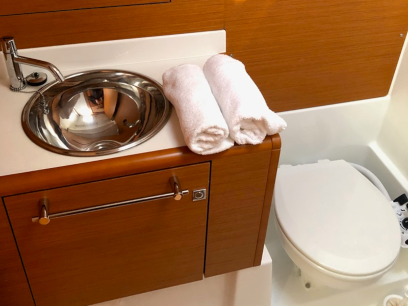 | Outside | Außendusche, Biminitop, elektr. Ankerwinsch, Gangway, Sprayhood |