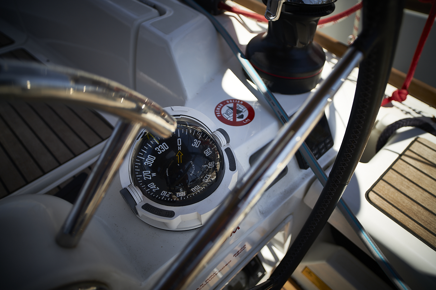 | Navigation | GPS mit Kartenplotter im Cockpit, Hafenhandbücher, Handpeilkompass, Kompass, Seekarten, Sumlog, Tridata (Log, Echolot, Windm.), Windmesser |