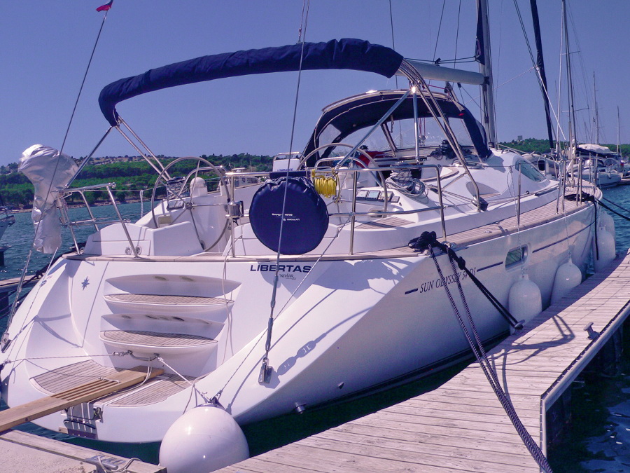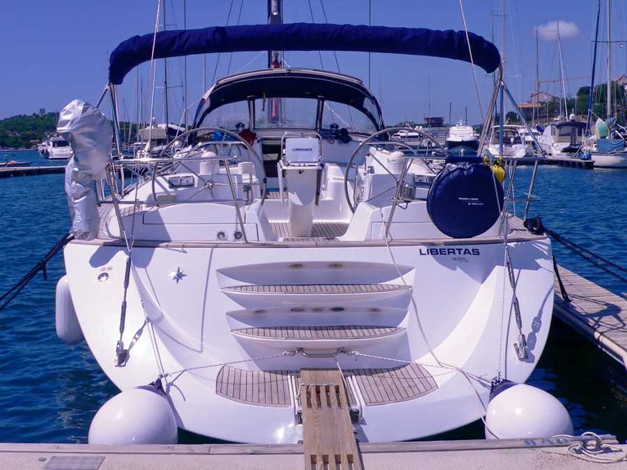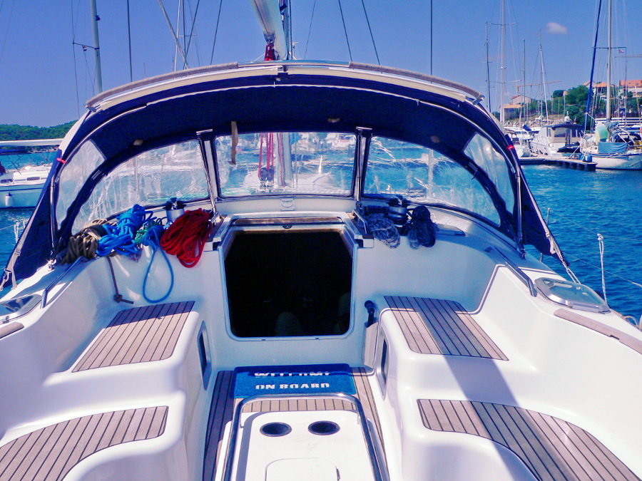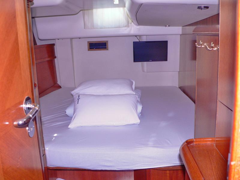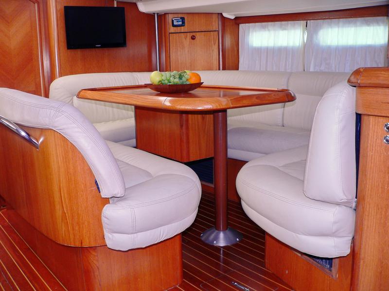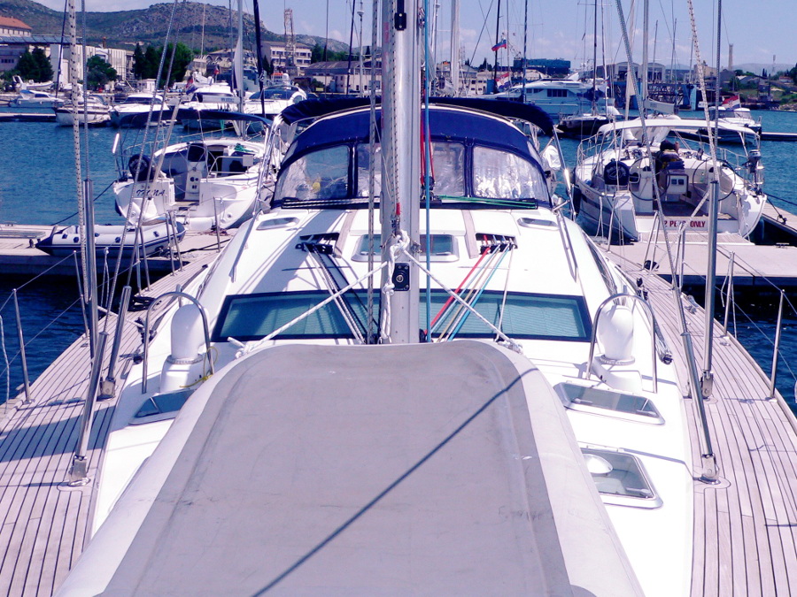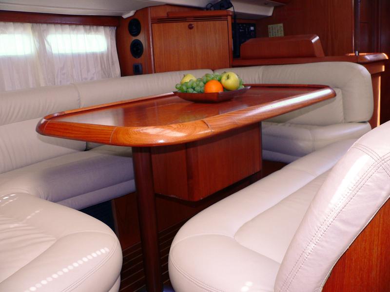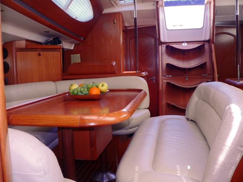 | Outside | Biminitop, Cockpitlautsprecher, Cockpittisch, elektr. Ankerwinsch, Fallwinschen, Festmacherleinen, Gangway, Genuawinschen, Spi-Winschen, Sprayhood, Teakdeck, Unterwasserbeleuchtung |