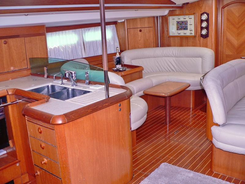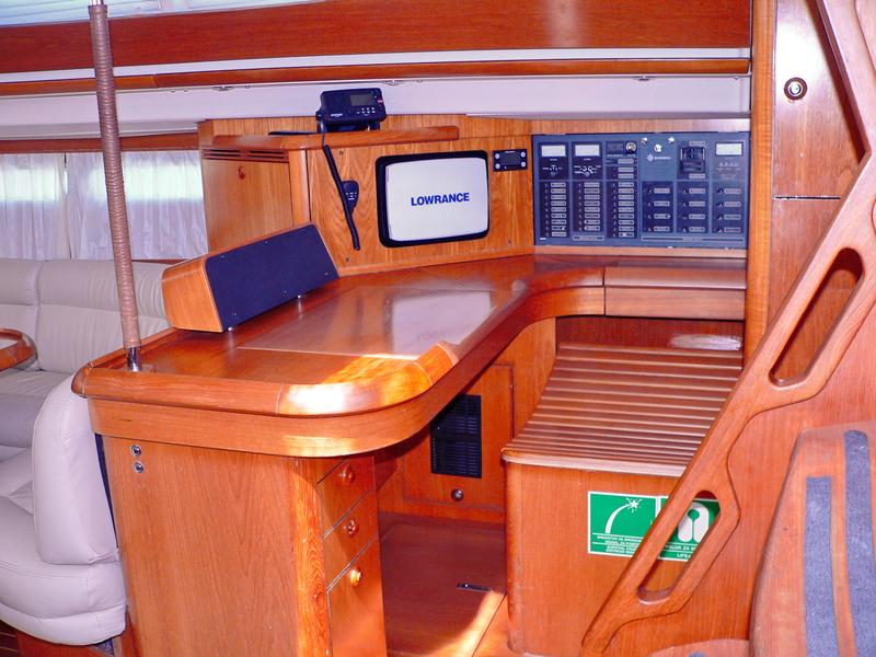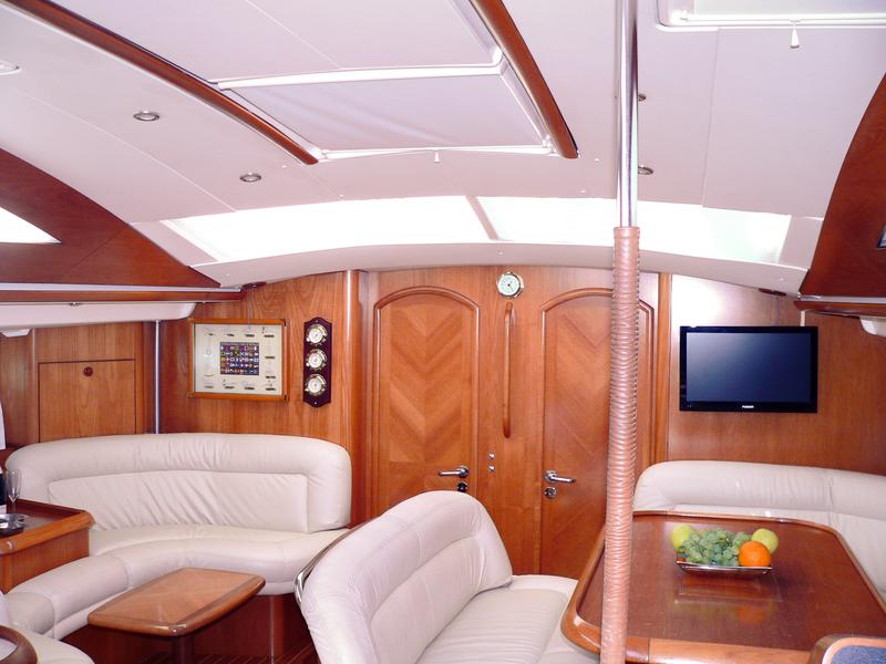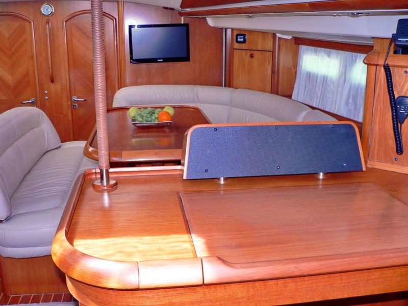 | Navigation | elektr. Seekarten, GPS mit Kartenplotter im Cockpit, Kartenplotter im Salon, Kompass, Radar, Windmesser |