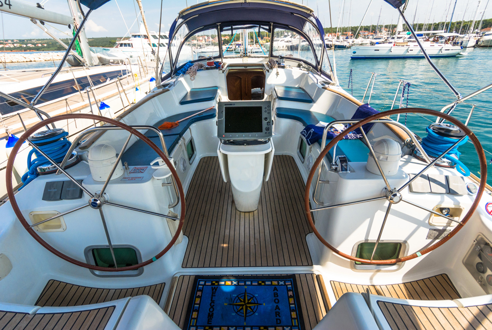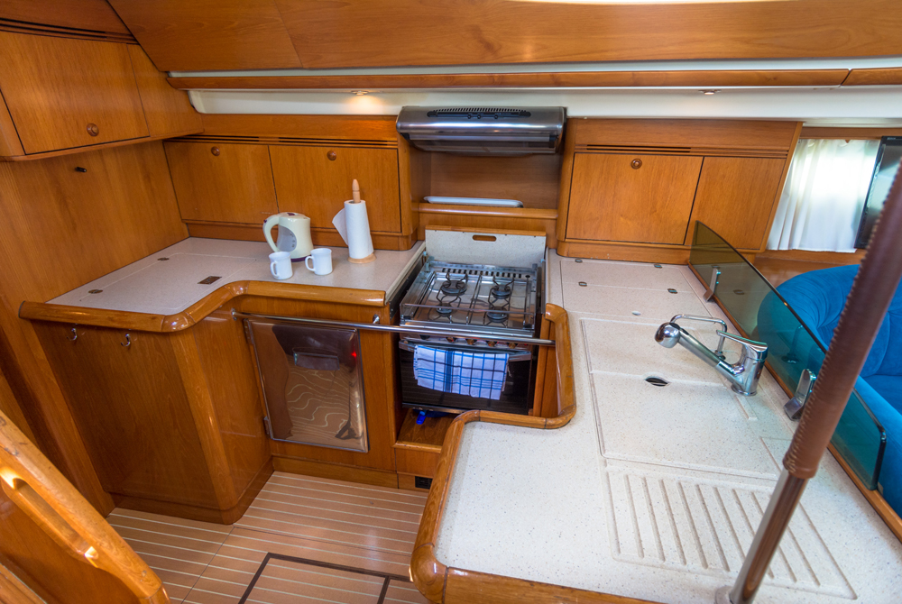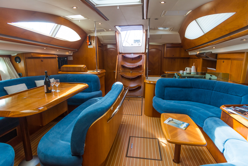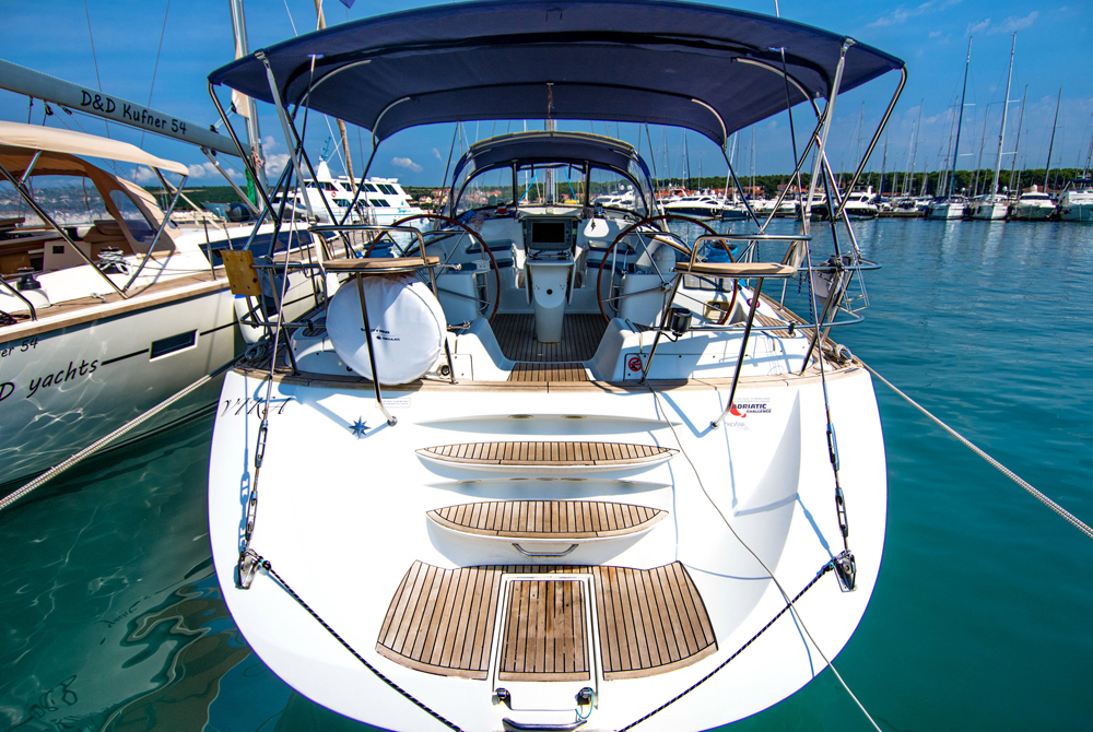 | Outside | Biminitop, Cockpitdusche, Cockpitlautsprecher, Cockpittisch, elektr. Ankerwinsch, Fallwinschen, Gangway, Genuawinschen, Sonnensegel, Spi-Winschen, Sprayhood, Teakdeck |