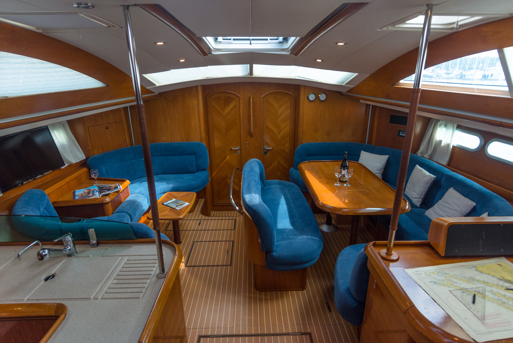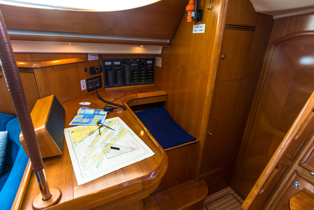 | Navigation | elektr. Seekarten, GPS mit Kartenplotter im Cockpit, Kartenplotter im Salon, Kompass, Windmesser |