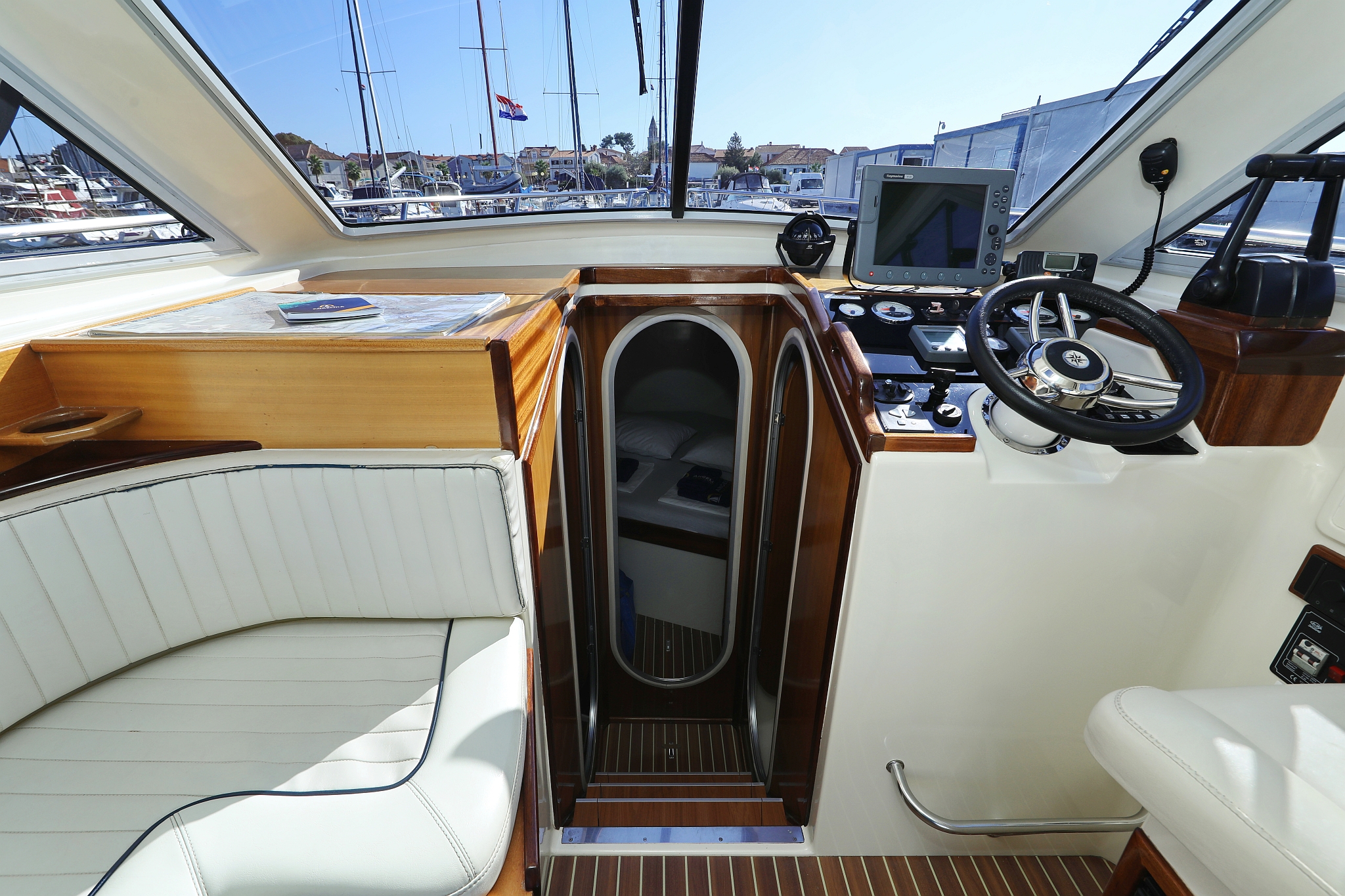 | Navigation | Fernglas, GPS mit Kartenplotter im Salon, Hafenhandbücher, Kompass, Radar, Seekarten, Tridata (Log, Echolot, Windm.) |