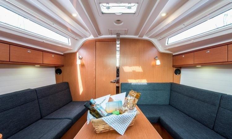 | Outside | Badeplattform, Biminitop, Cockpitdusche, Cockpitlautsprecher, Cockpitpolster, elektr. Ankerwinsch, Gangway, Solaranlage, Sprayhood |
