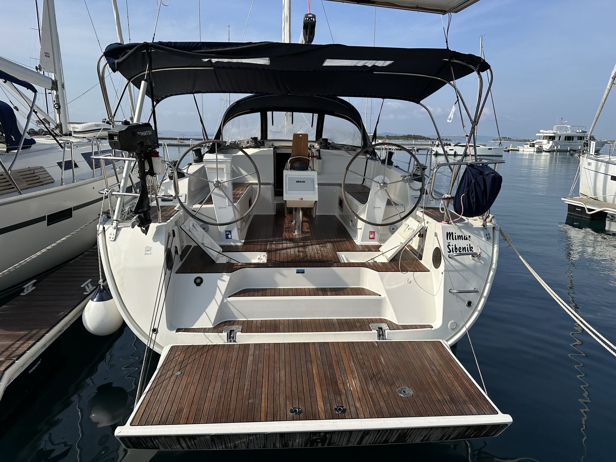 Outside 220 V-Landanschluss, Anker mit Kette, Ankerwinsch, Badeplattform, Biminitop, Bootshaken, Cockpitdusche, Cockpitlautsprecher, Cockpittisch, Dieselkanister , elektr. Ankerwinsch, Fender, Festmacherleinen, Gangway, Kugelfender, Kunststoff-Eimer (Pütz), Solaranlage, Sprayhood, Teak im Cockpit, Wasserkanister , Wasserschlauch, Windex