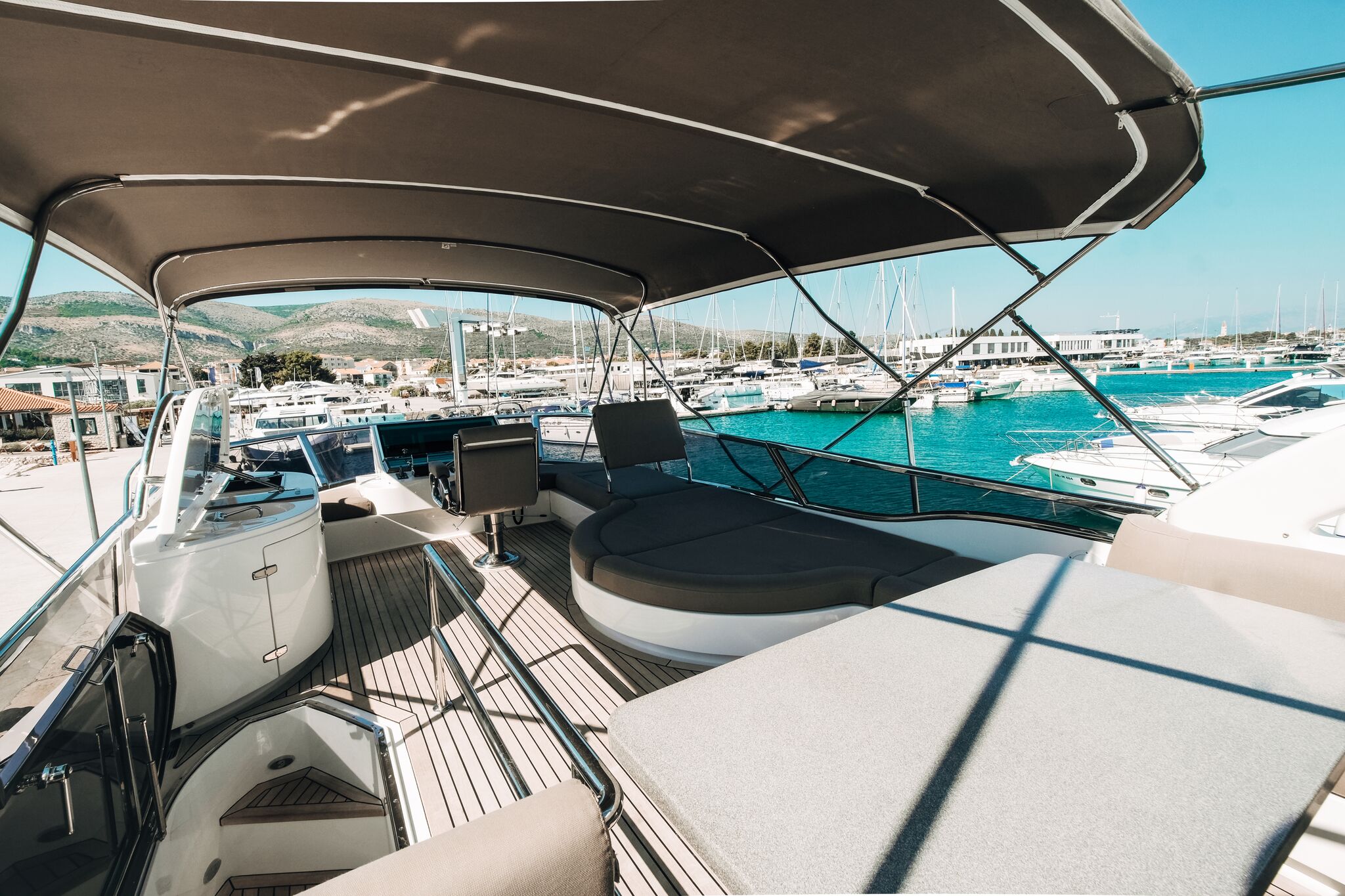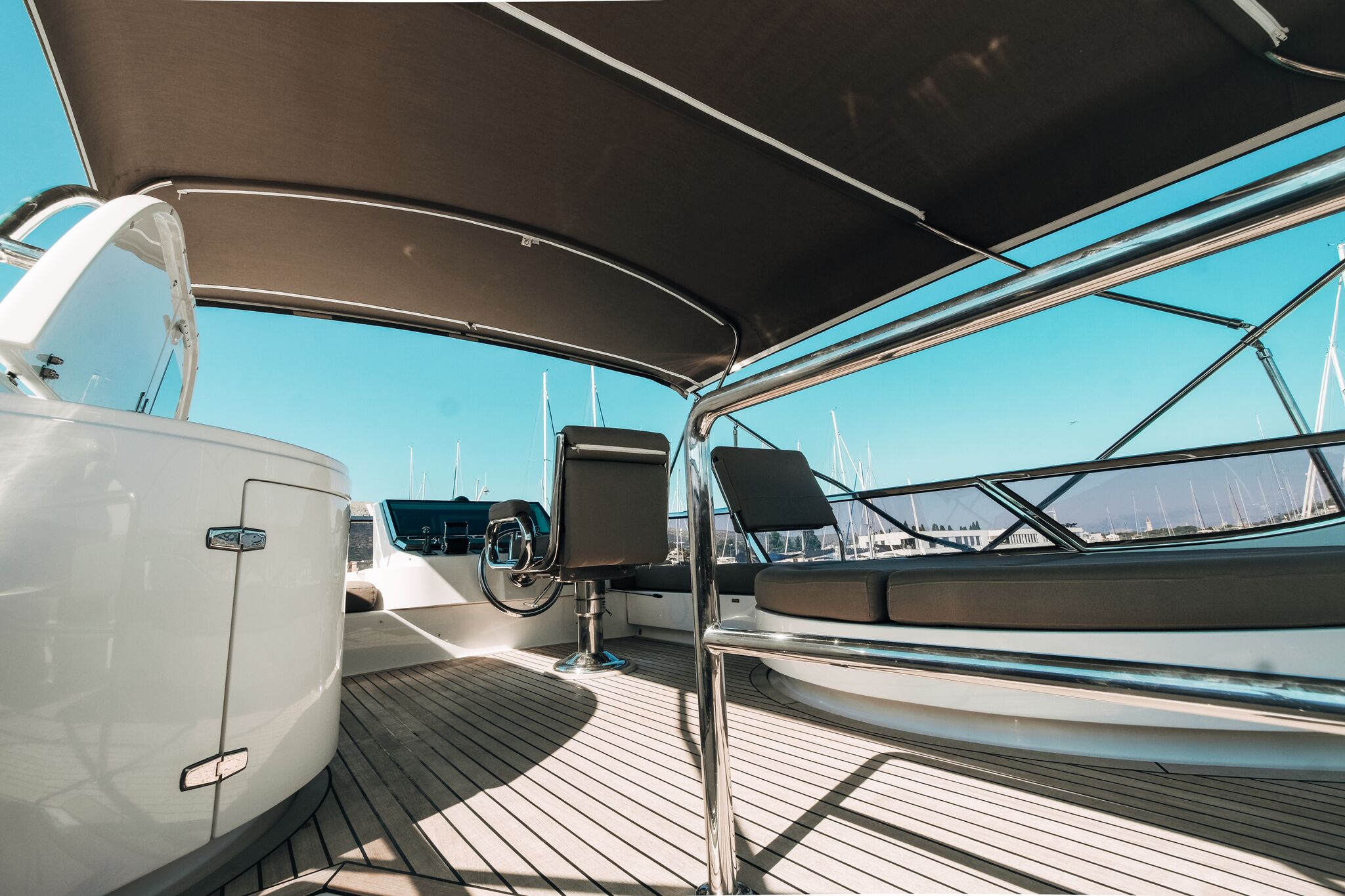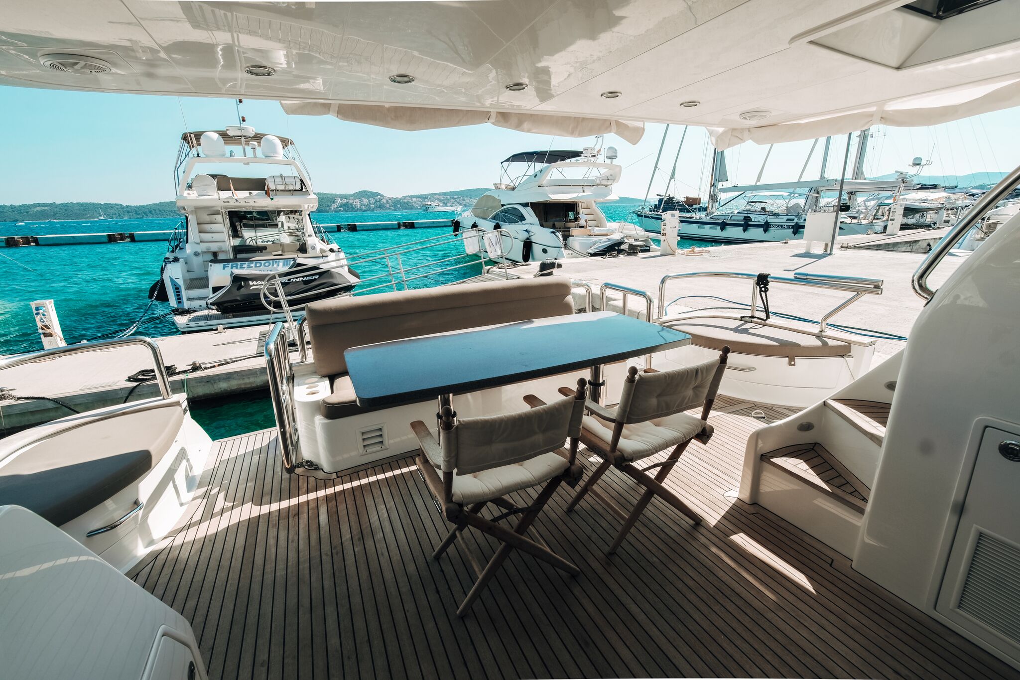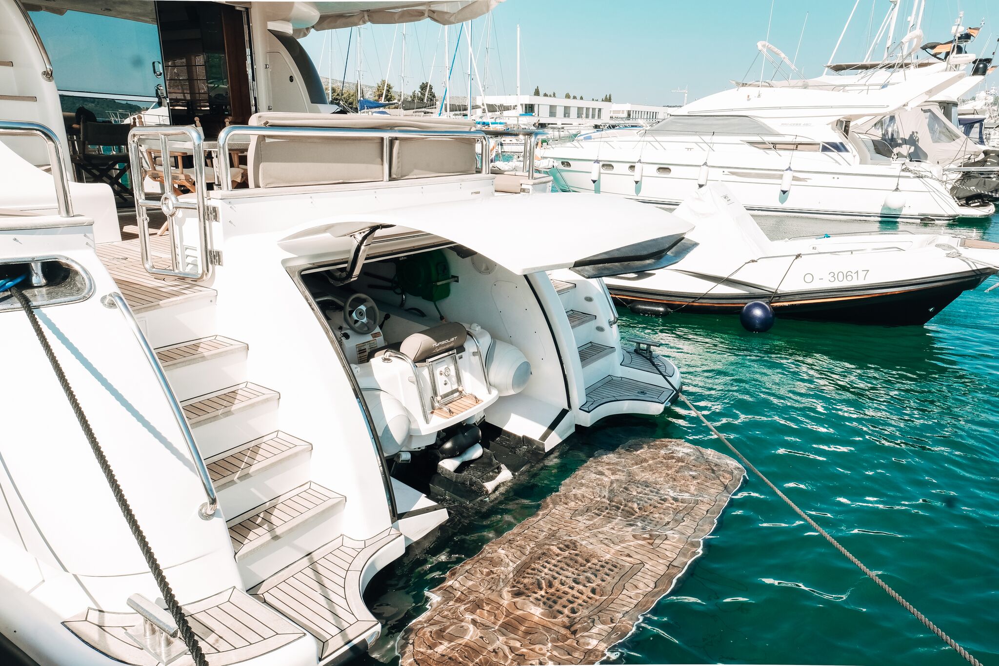 | Outside | Anker mit Kette, Badeplattform (hydr.), Cockpitdusche, hydraul. Gangway |