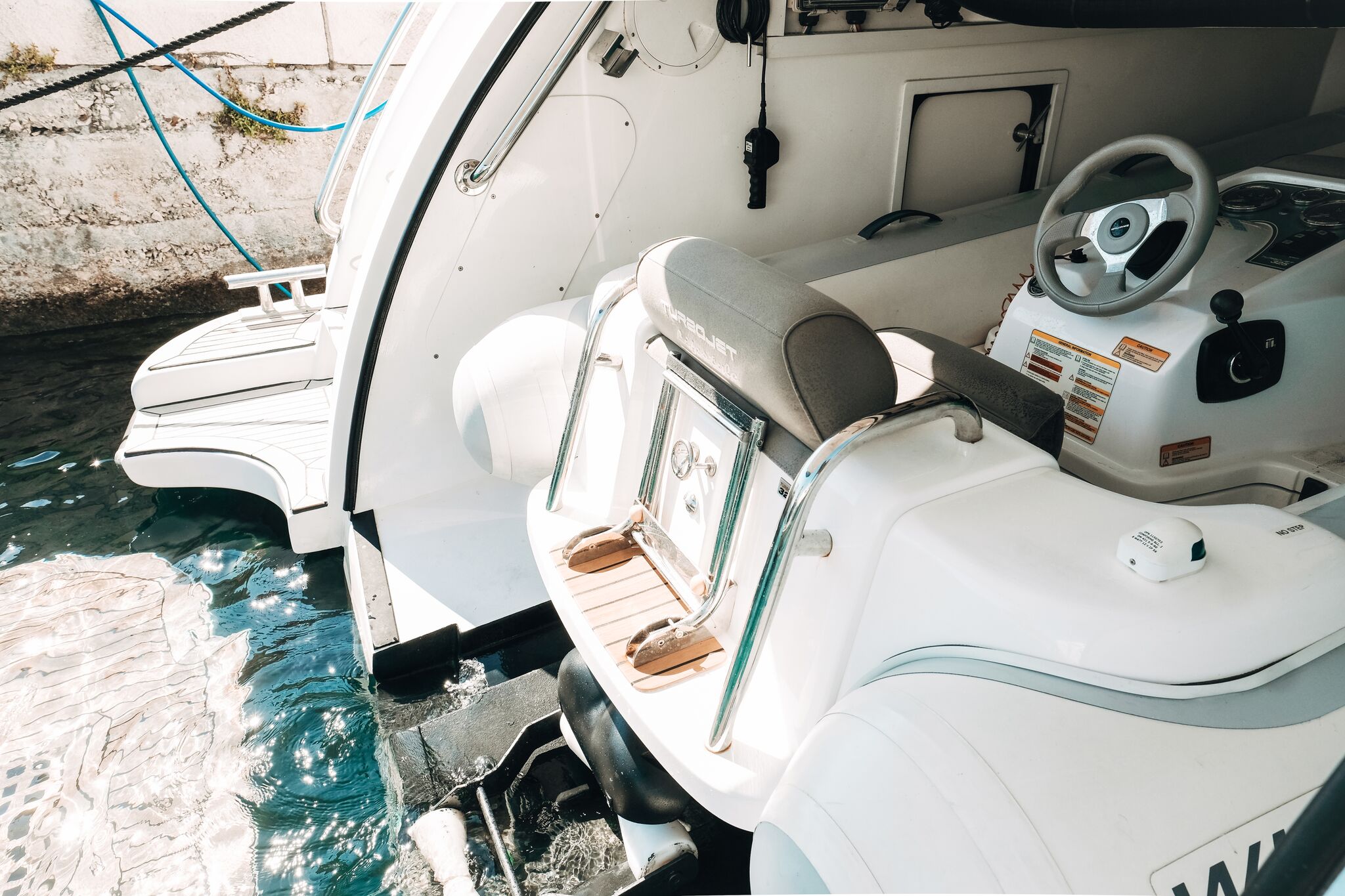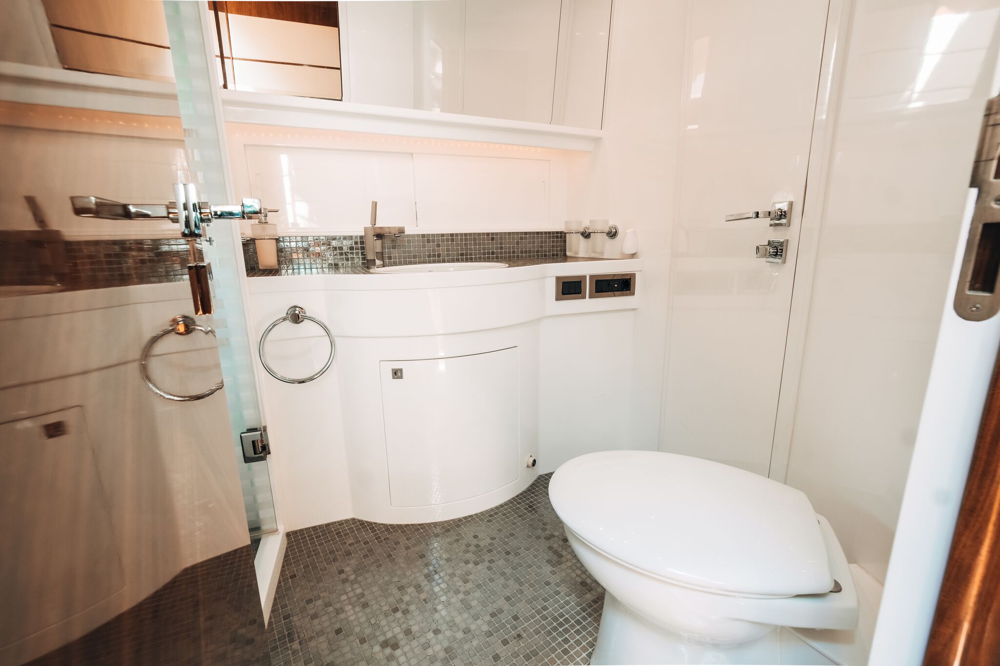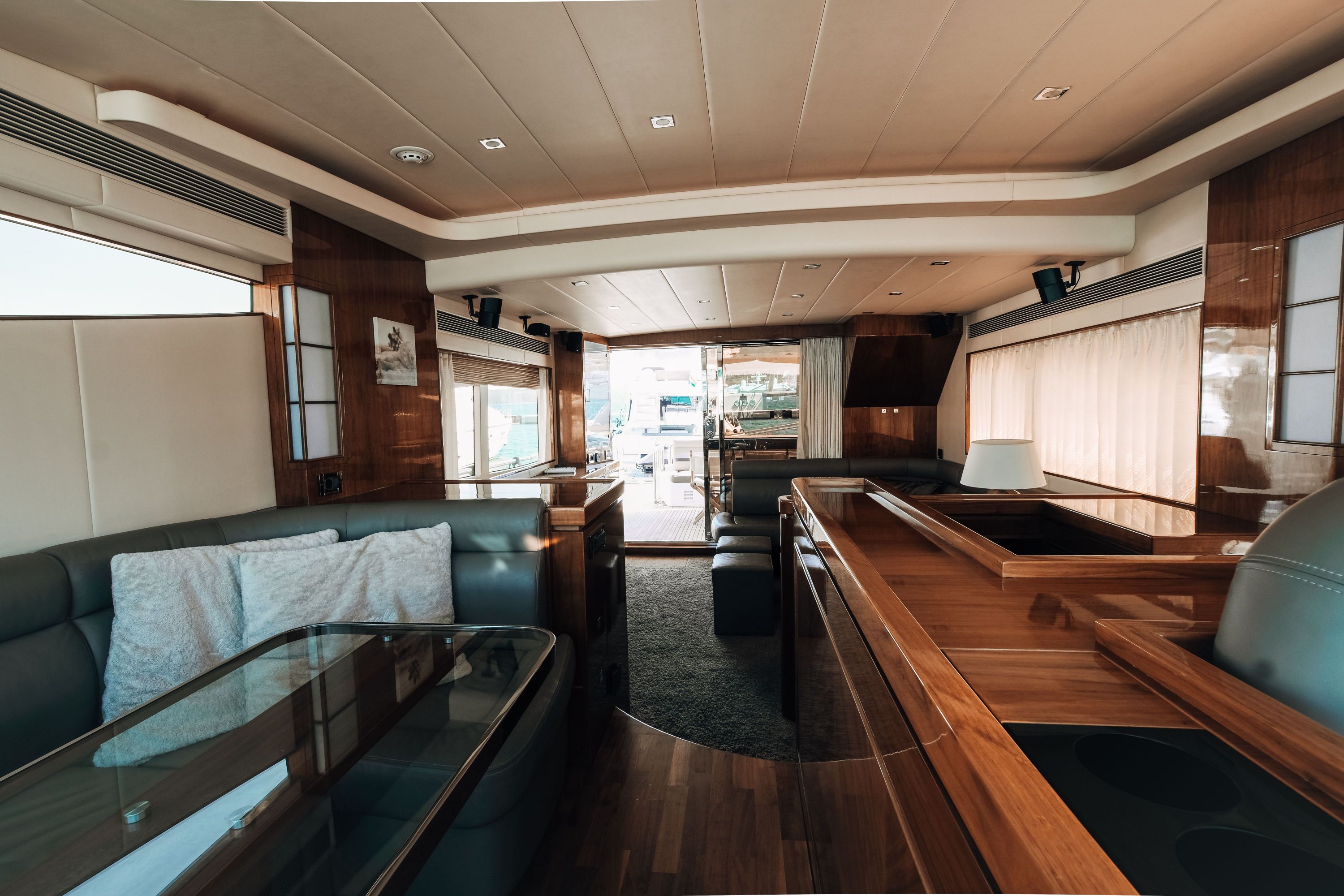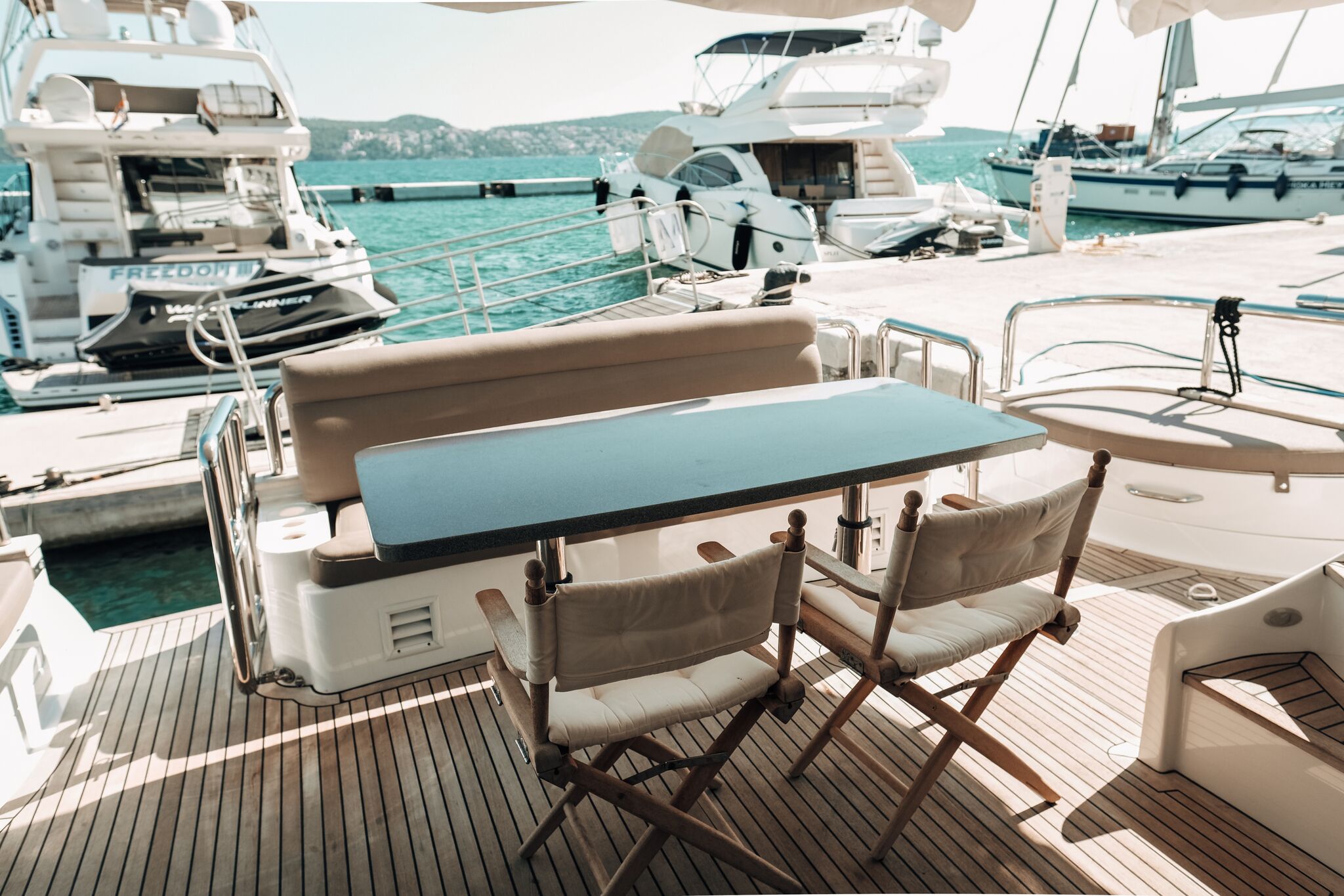 | Outside | Anker mit Kette, Badeplattform (hydr.), Cockpitdusche, hydraul. Gangway |