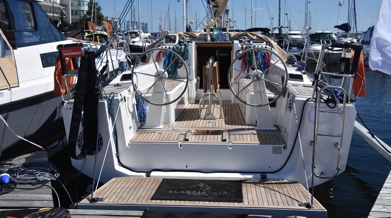 | Outside | 220 V-Landanschluss, Biminitop, Cockpitdusche, Cockpitpolster, Cockpittisch, elektr. Ankerwinsch, Fender, Festmacherleinen, Sprayhood, Teak im Cockpit, Unterwasserbeleuchtung |