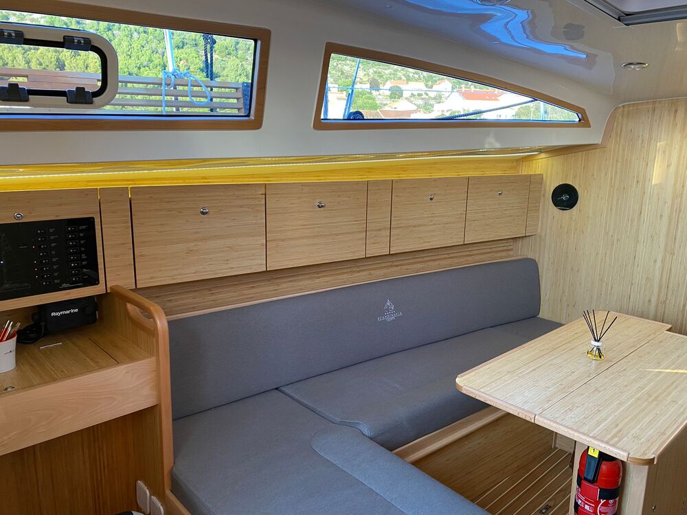 | Outside | 220 V-Landanschluss, Biminitop, Cockpitdusche, Cockpitpolster, Cockpittisch, elektr. Ankerwinsch, Fender, Festmacherleinen, Sprayhood, Teak im Cockpit, Unterwasserbeleuchtung |