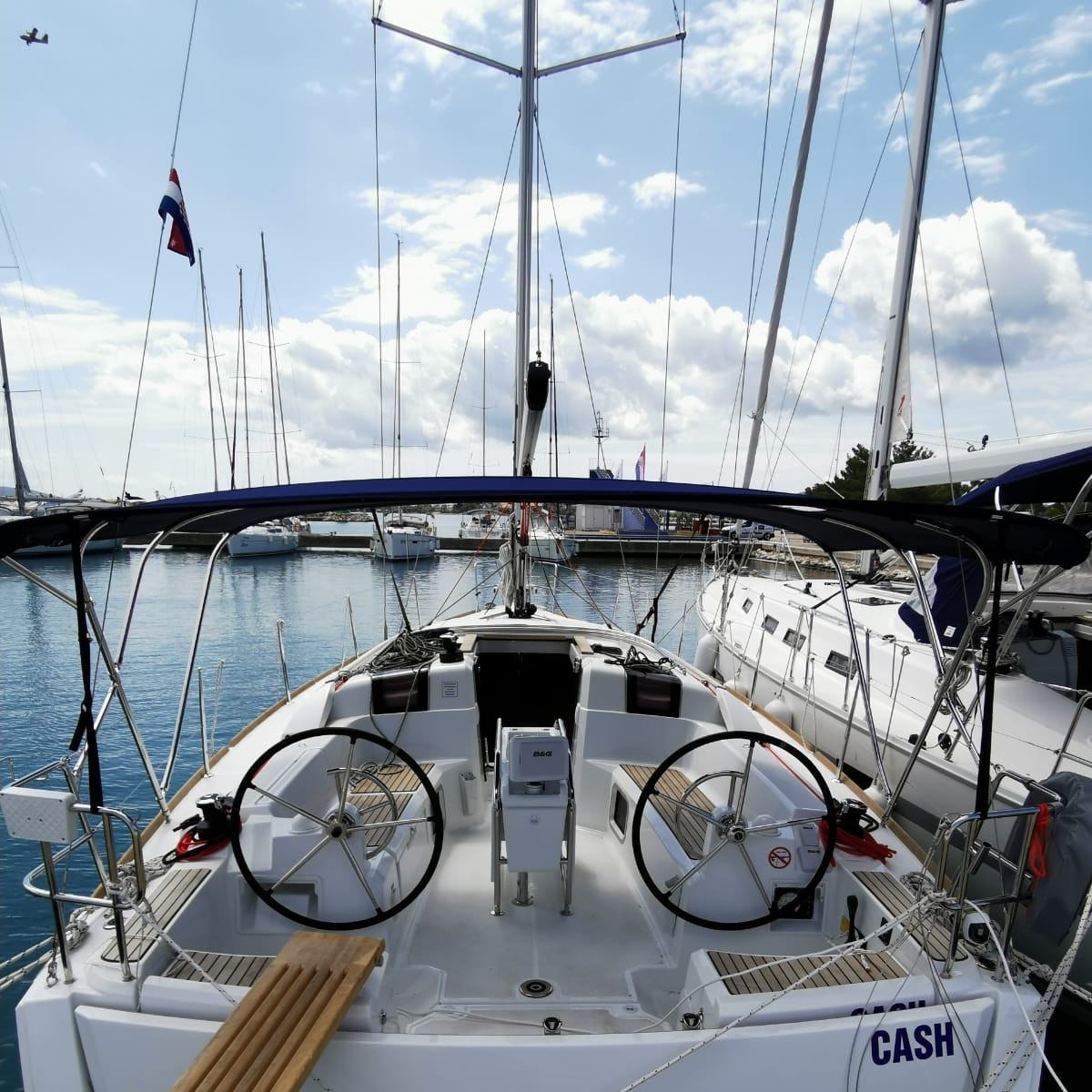 | Outside | Außendusche, Biminitop, Cockpitdusche, Cockpitlautsprecher, Cockpittisch, elektr. Ankerwinsch, Solaranlage, Sprayhood, Windex |