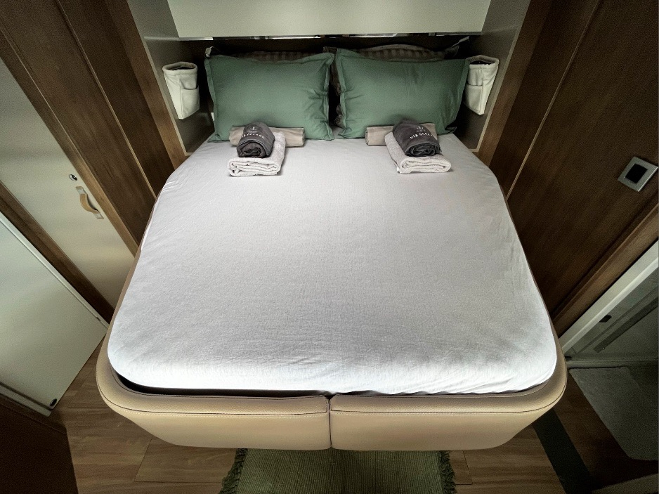 | Inside | Eiswürfelmaschine, Gefrierschrank, Generator, Geschirrspüler, Heizung, Inverter 12V/220V, Kaffeemaschine, Klimaanlage (ohne Landstrombedarf), Kühlschrank, TV, Warmwasser, Watermaker, WC (elektr.) |