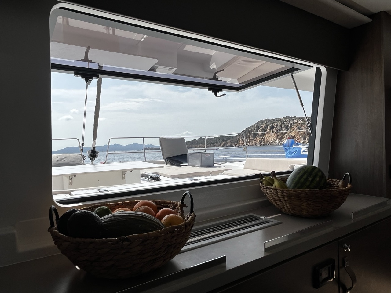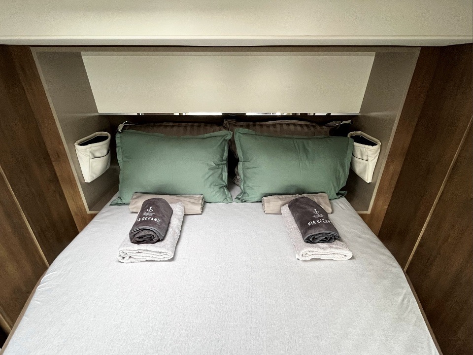 | Outside | 220 V-Landanschluss, Badeplattform, Biminitop, Cockpitlautsprecher, elektr. Ankerwinsch, Schnorchelausrüstung, Teak im Cockpit, Teakdeck |