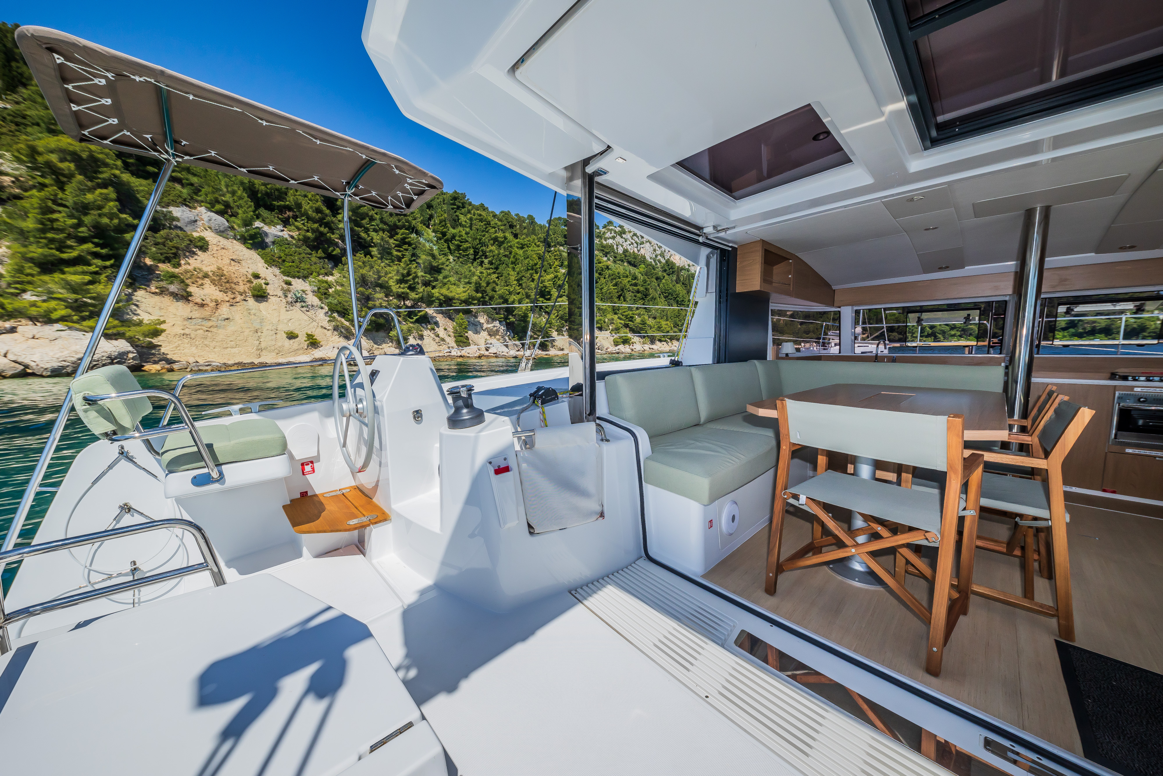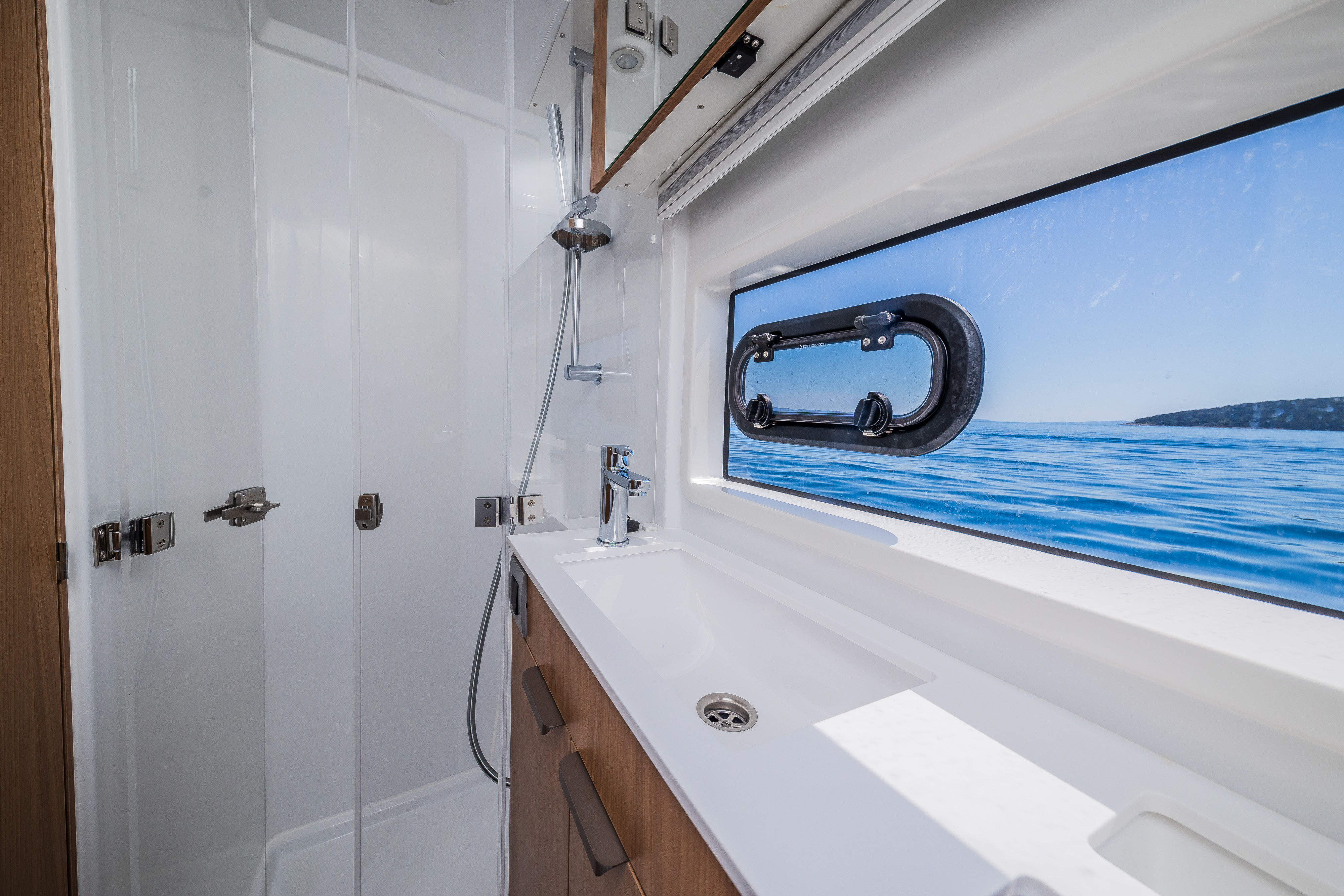 | Outside | Badeplattform, Biminitop, Cockpitdusche, Cockpitlautsprecher, Cockpittisch, Solaranlage |