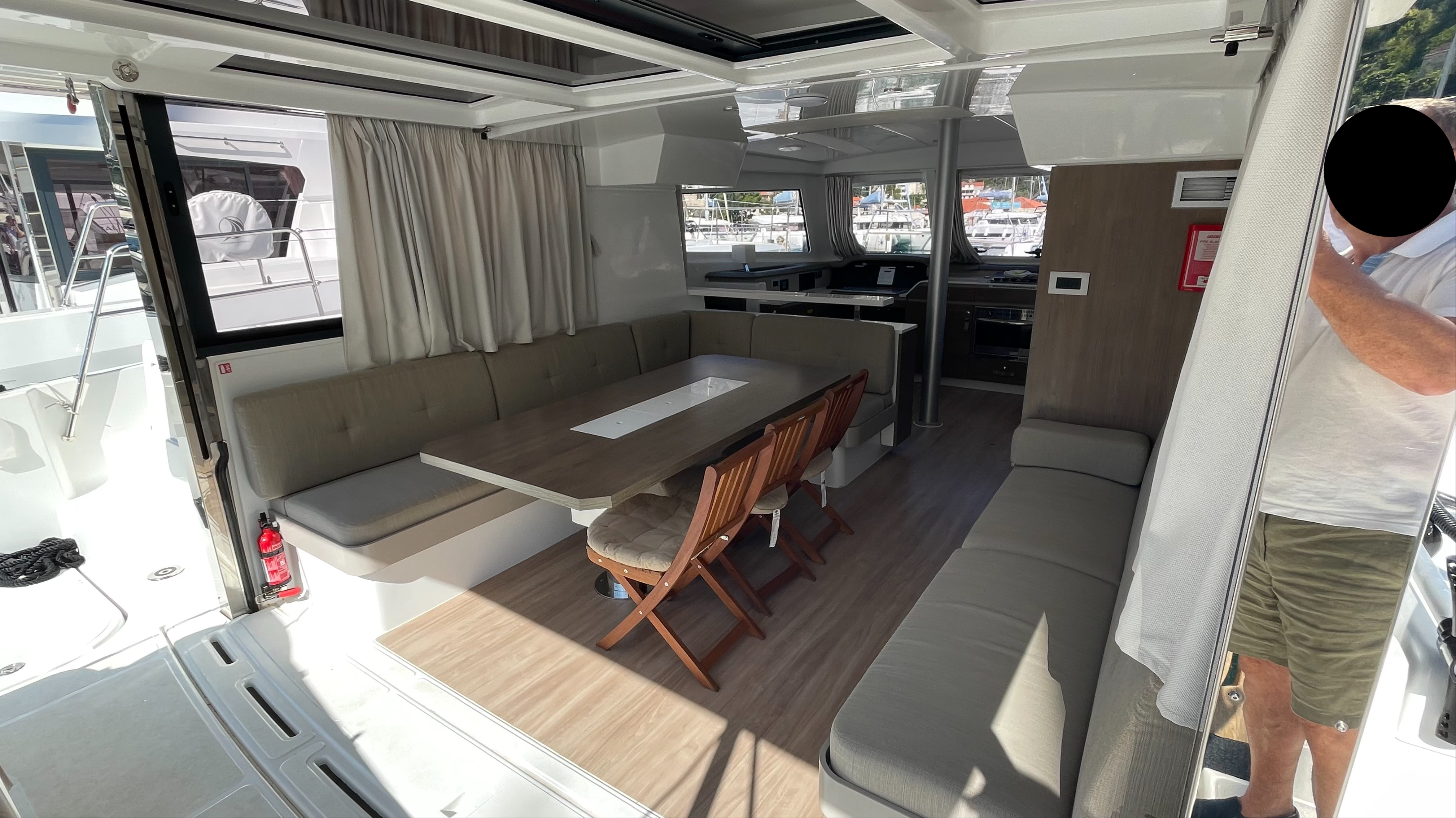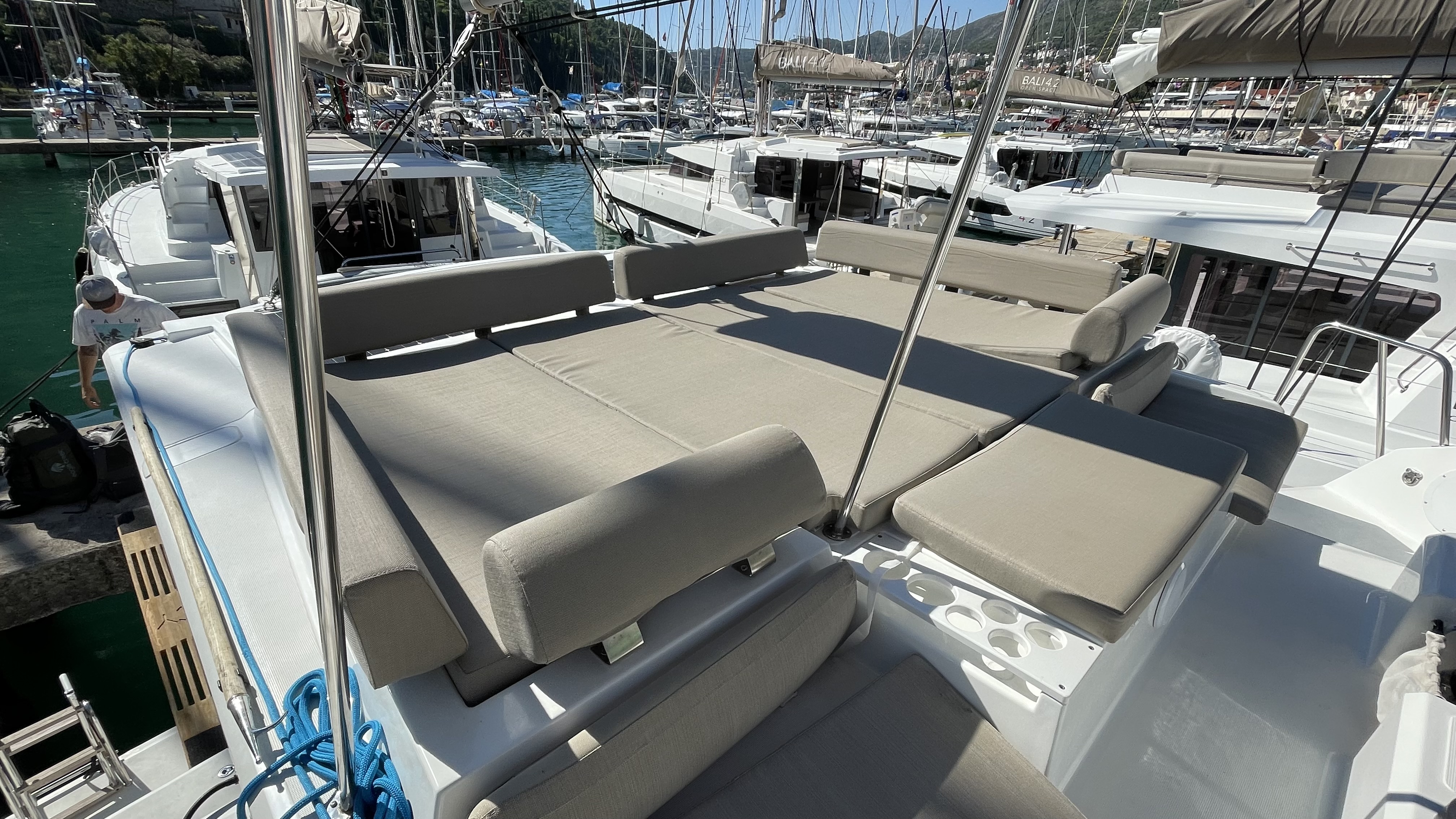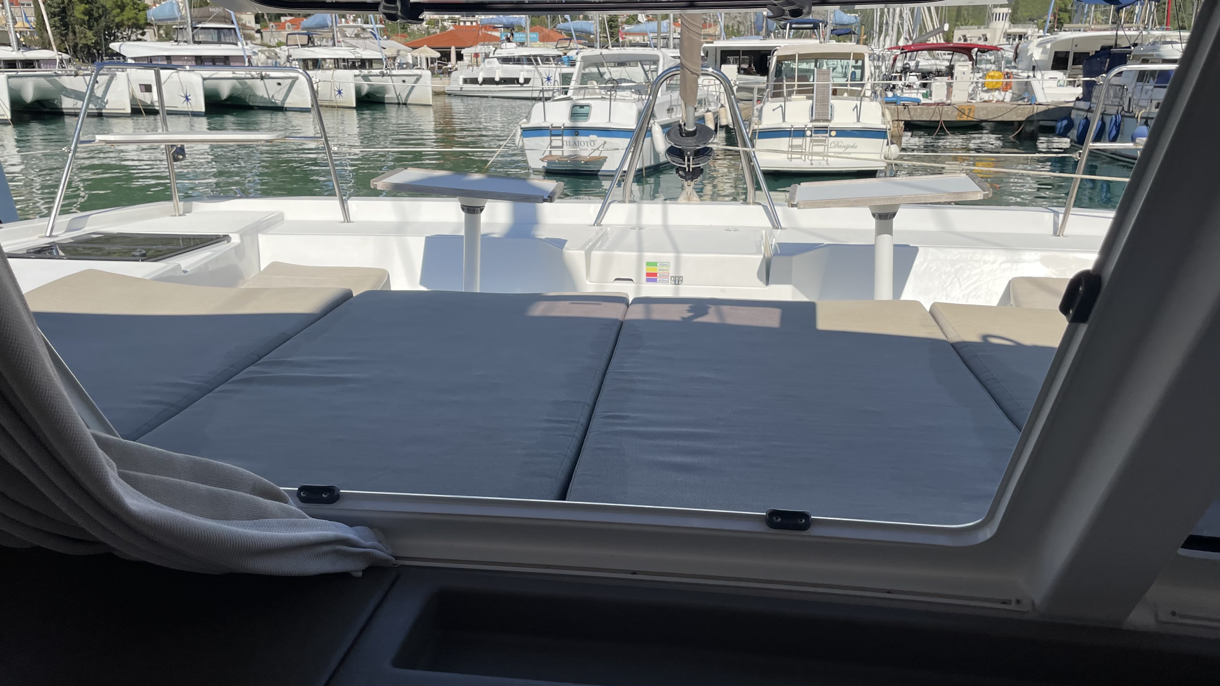 | Outside | Badeplattform, Biminitop, Cockpitdusche, Cockpitlautsprecher, Cockpitpolster, Cockpittisch, Deckpolster, Solaranlage, Sprayhood |