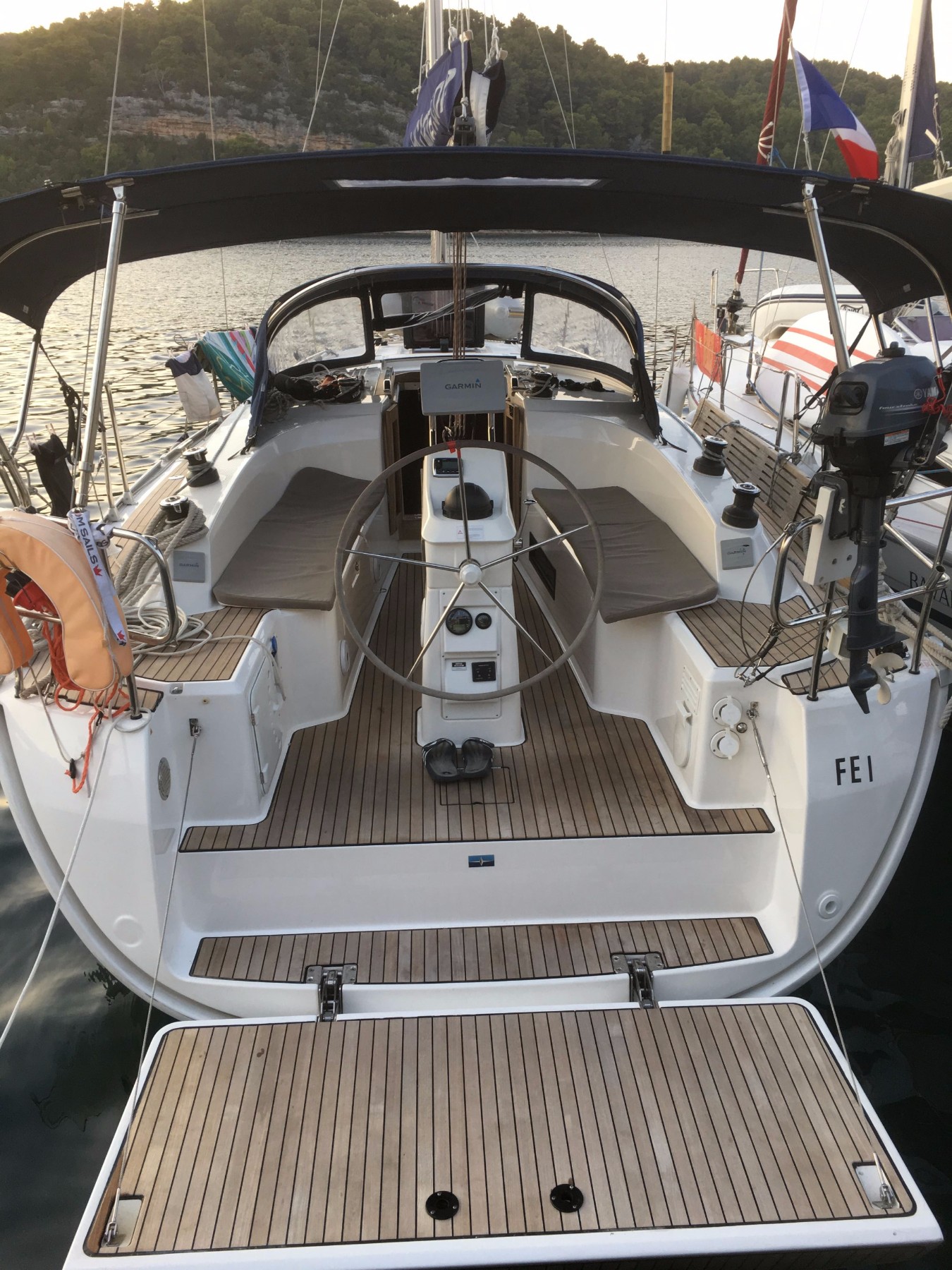 Outside 12 V-Anschluss, Badeleiter, Badeplattform, Biminitop, Cockpitdusche, Cockpitlautsprecher, Cockpittisch, elektr. Ankerwinsch, elektr. Winsch, Selbstholende Winschen, Teakdeck