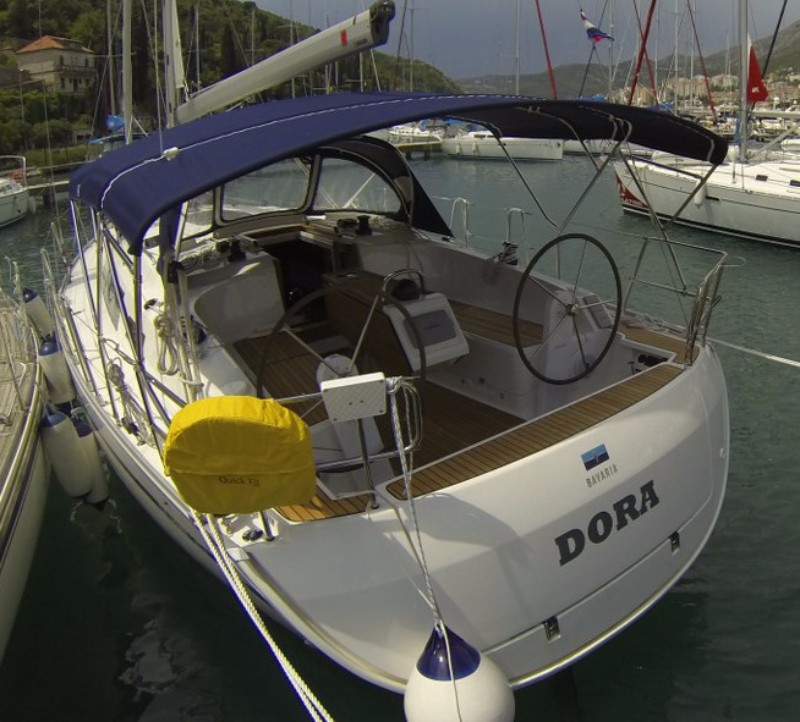 | Outside | Anker mit Kette, Ankerwinsch, Badeplattform, Biminitop, Bootshaken, Cockpitdusche, Cockpitlautsprecher, Deckbürste, Dieselkanister , elektr. Ankerwinsch, Fender, Fernsteuerung für elektr. Ankerwinsch, Gangway, Kunststoff-Eimer (Pütz), Sprayhood, Wasserkanister , Wasserschlauch, Windex |