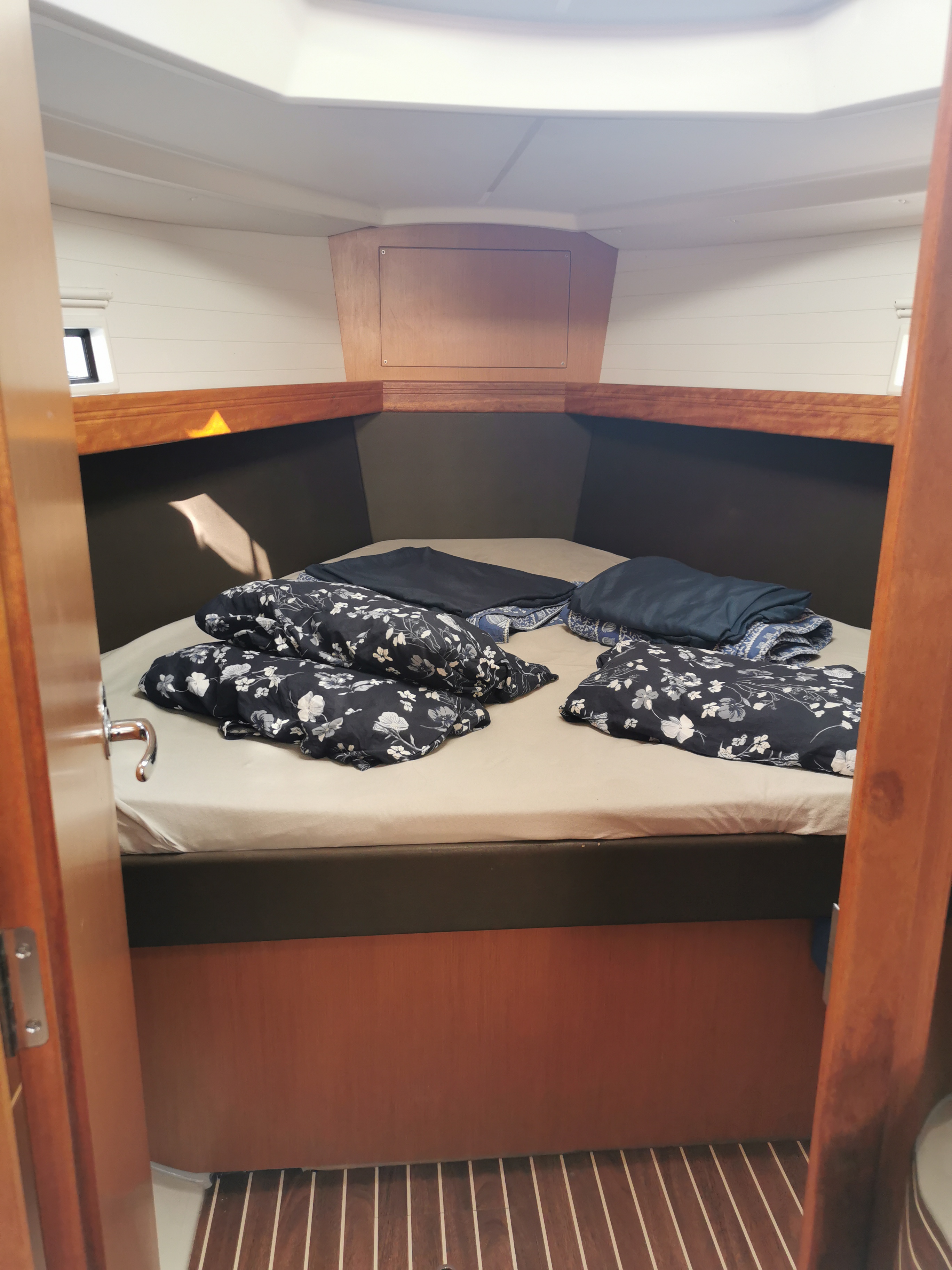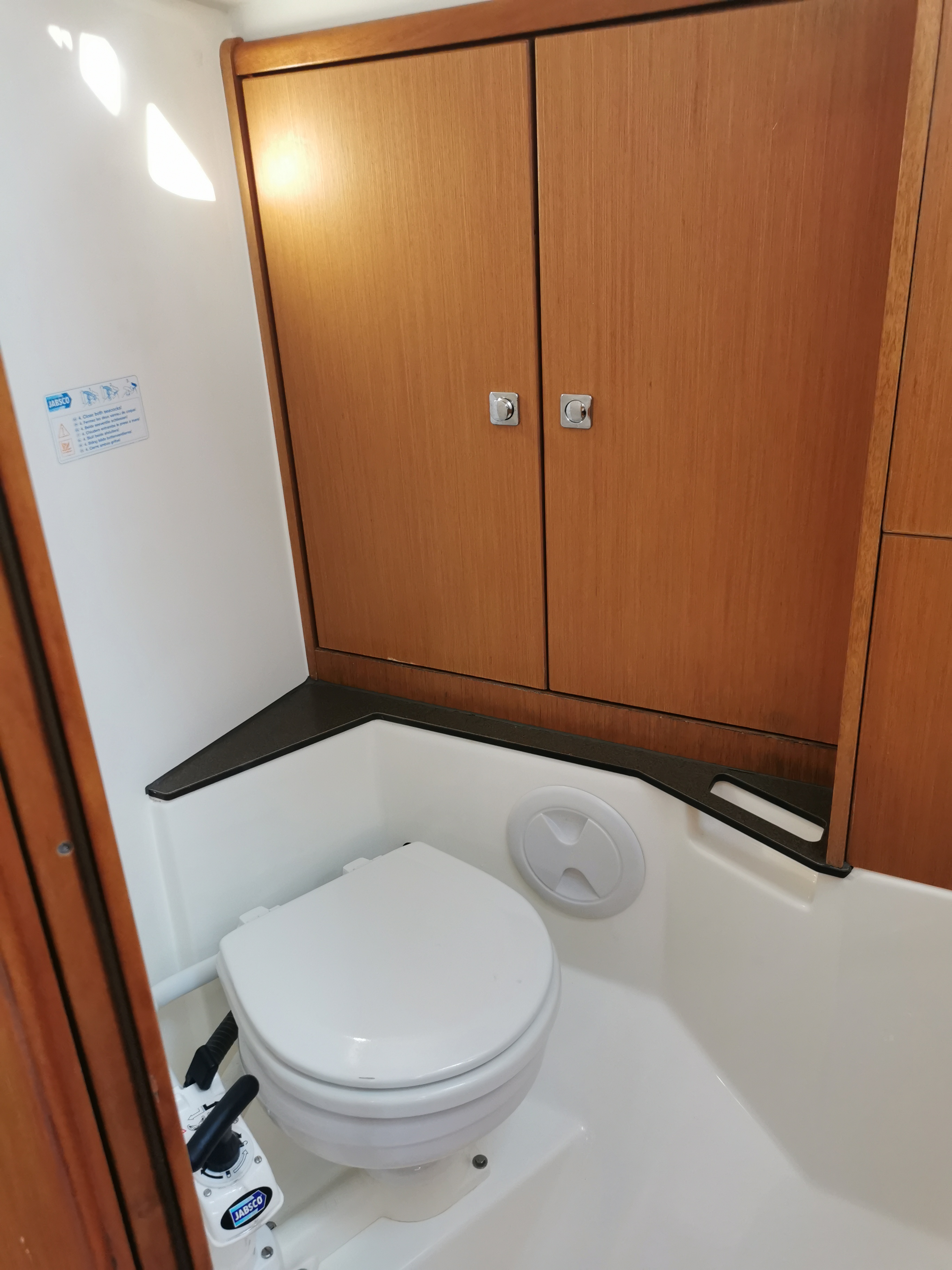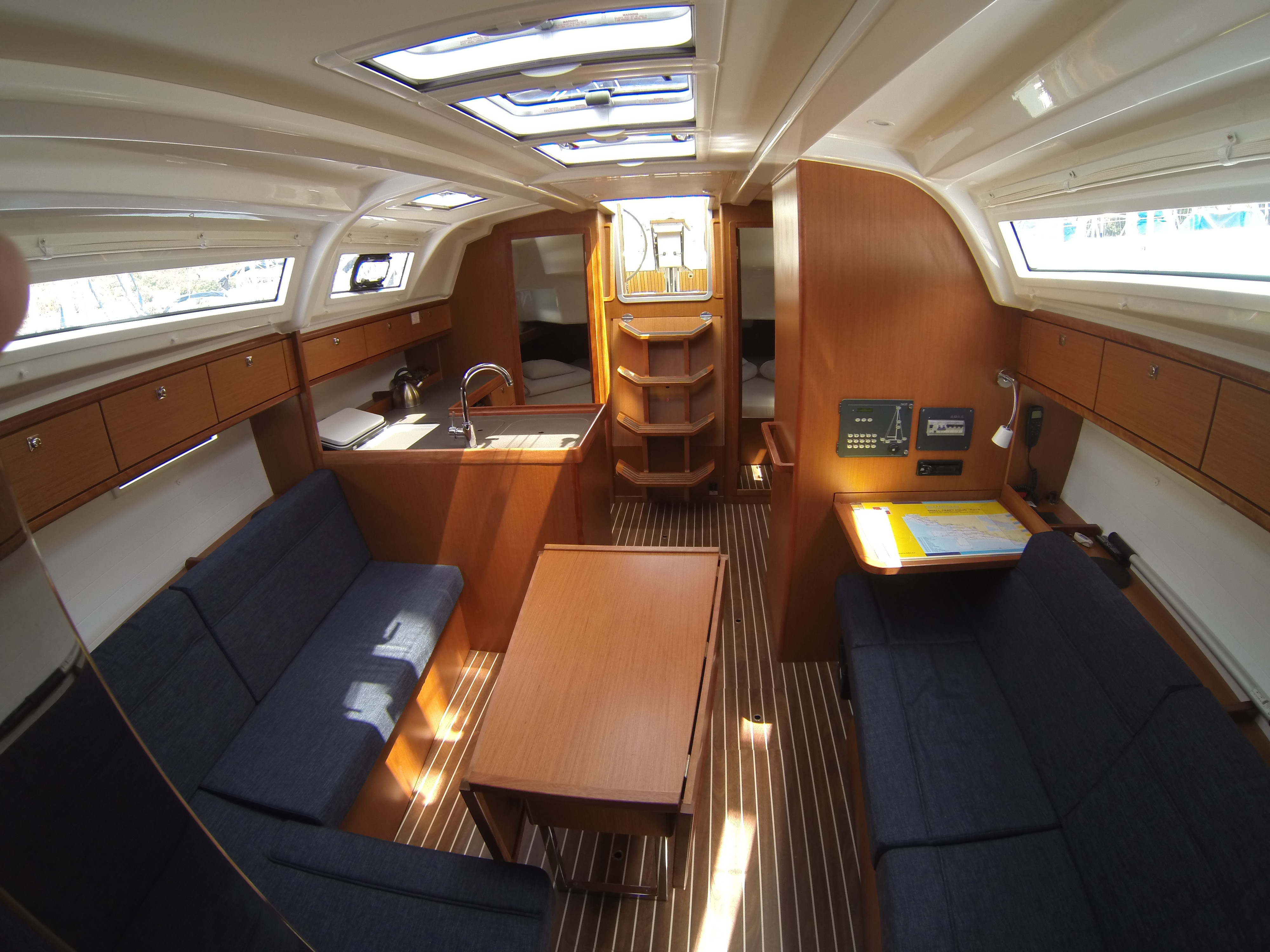| Safety | Autopilot, Bootsmannstuhl, Bordapotheke, Bordwerkzeug, elektr. Bilgepumpe, Feststoffschwimmwesten, Feuerlöscher, Navigationslichter, Nebelhorn, Notpinne, Notsignale, Radarreflektor, Taschenlampe, UKW-Funk, Zweitanker |