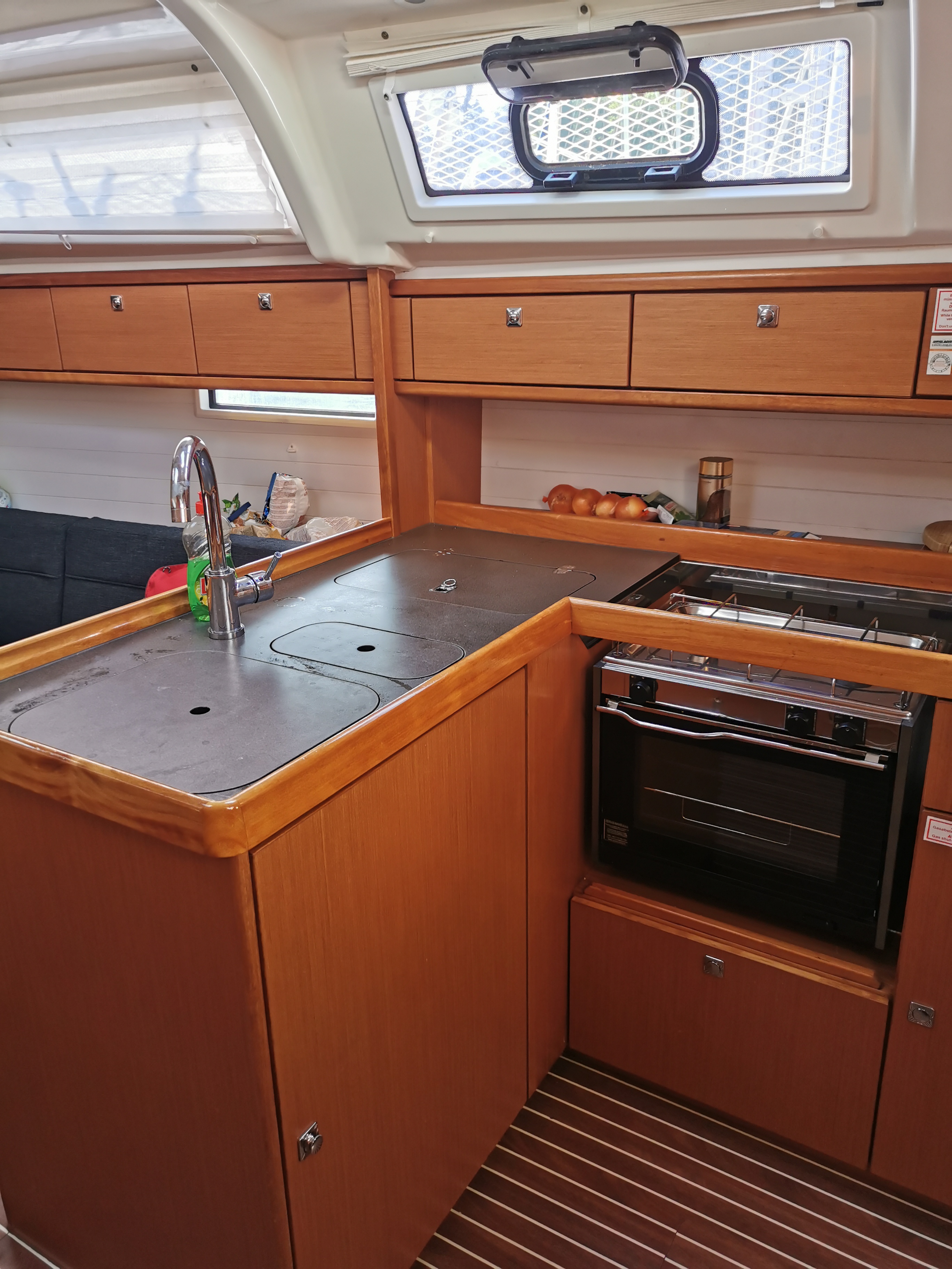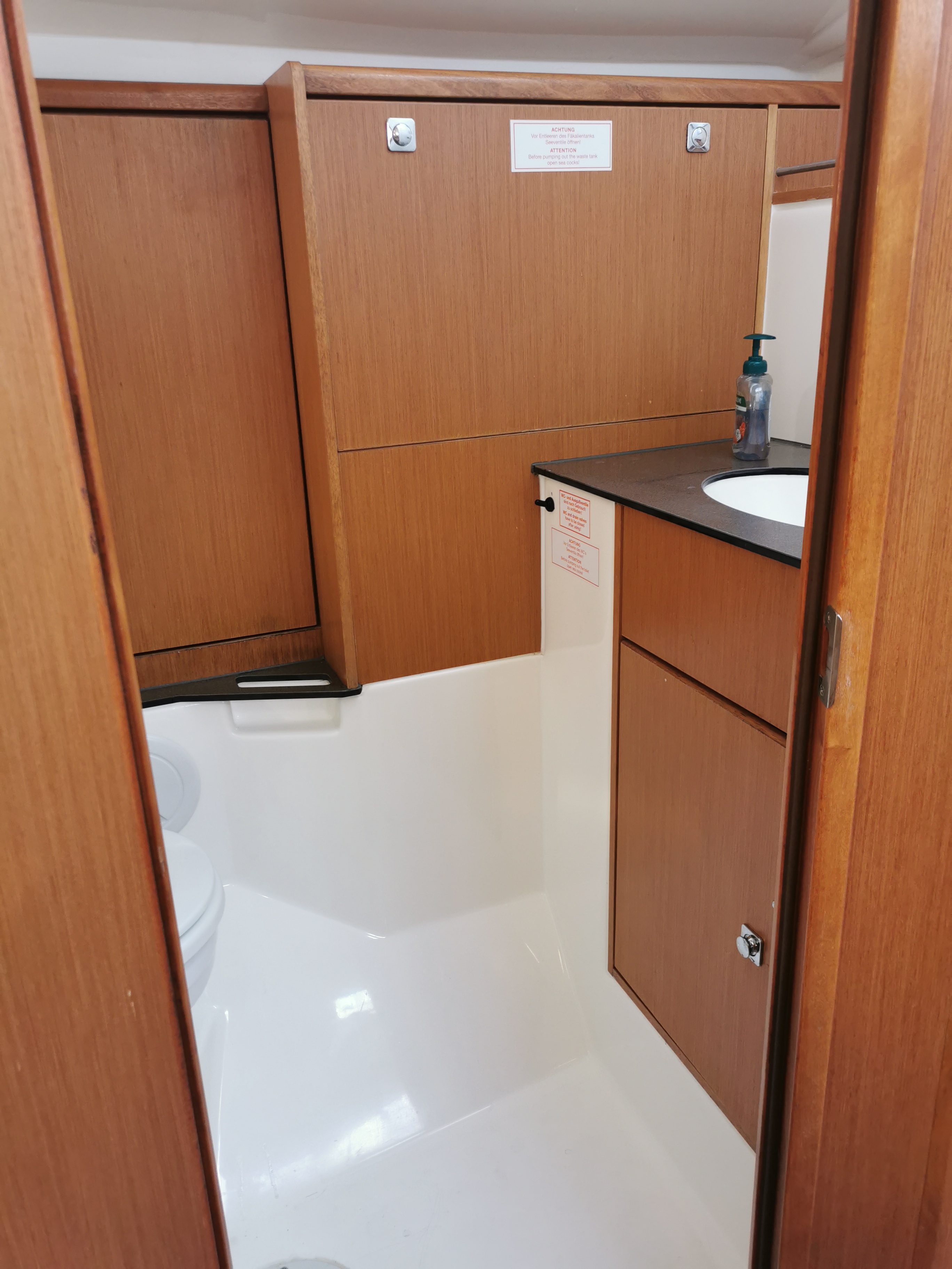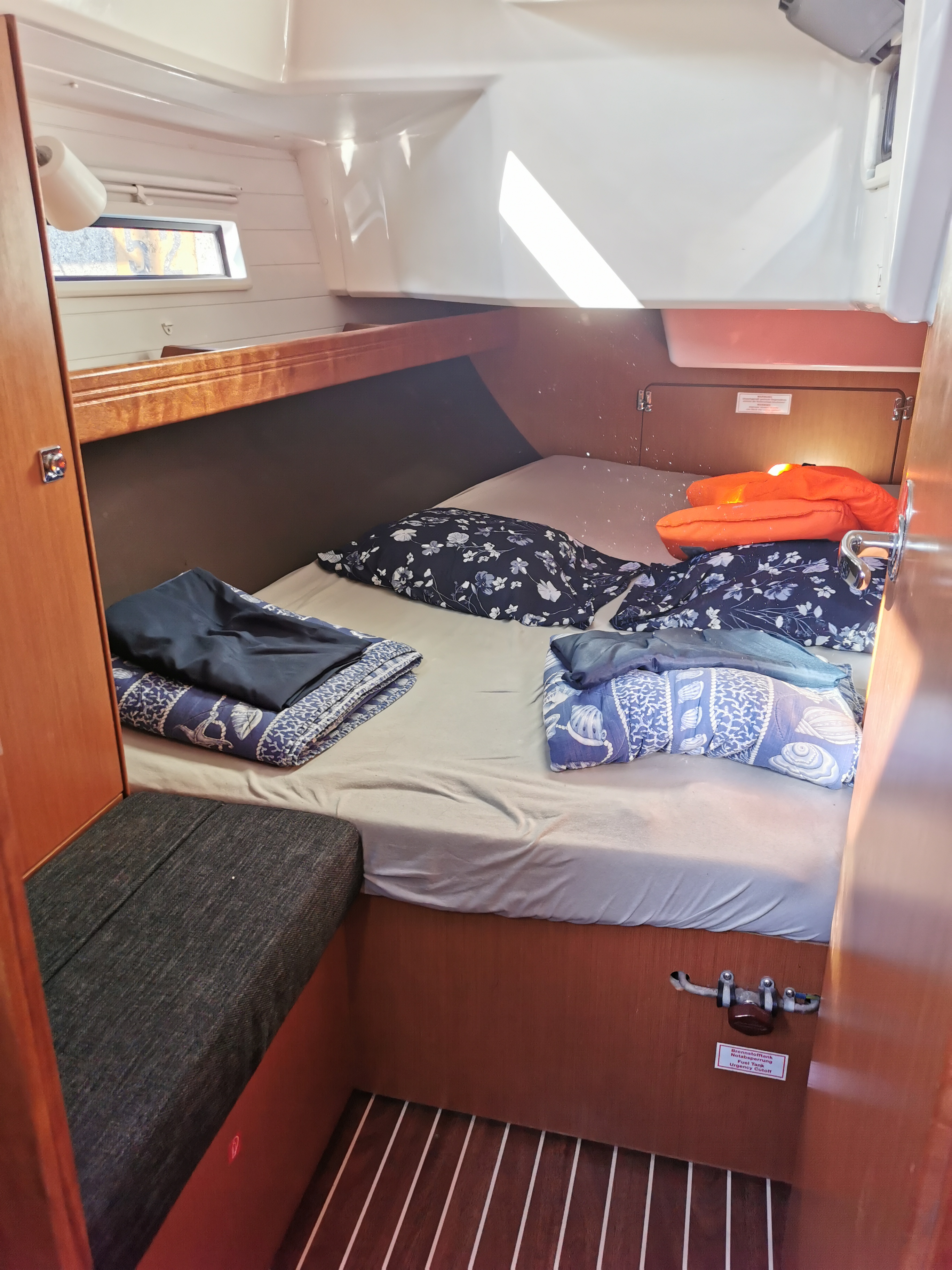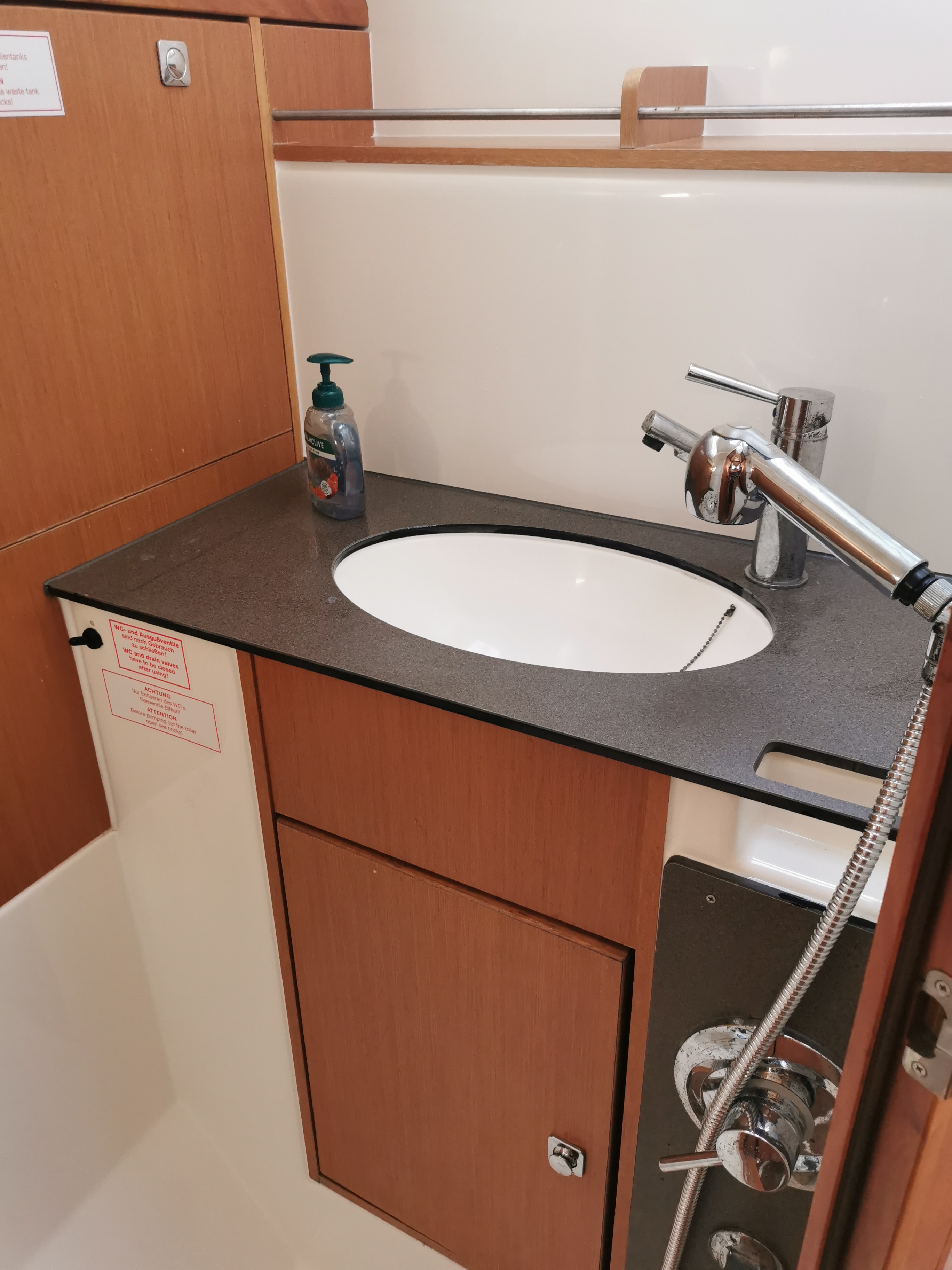 | Safety | Autopilot, Bootsmannstuhl, Bordapotheke, Bordwerkzeug, elektr. Bilgepumpe, Feststoffschwimmwesten, Feuerlöscher, Navigationslichter, Nebelhorn, Notpinne, Notsignale, Radarreflektor, Taschenlampe, UKW-Funk, Zweitanker |