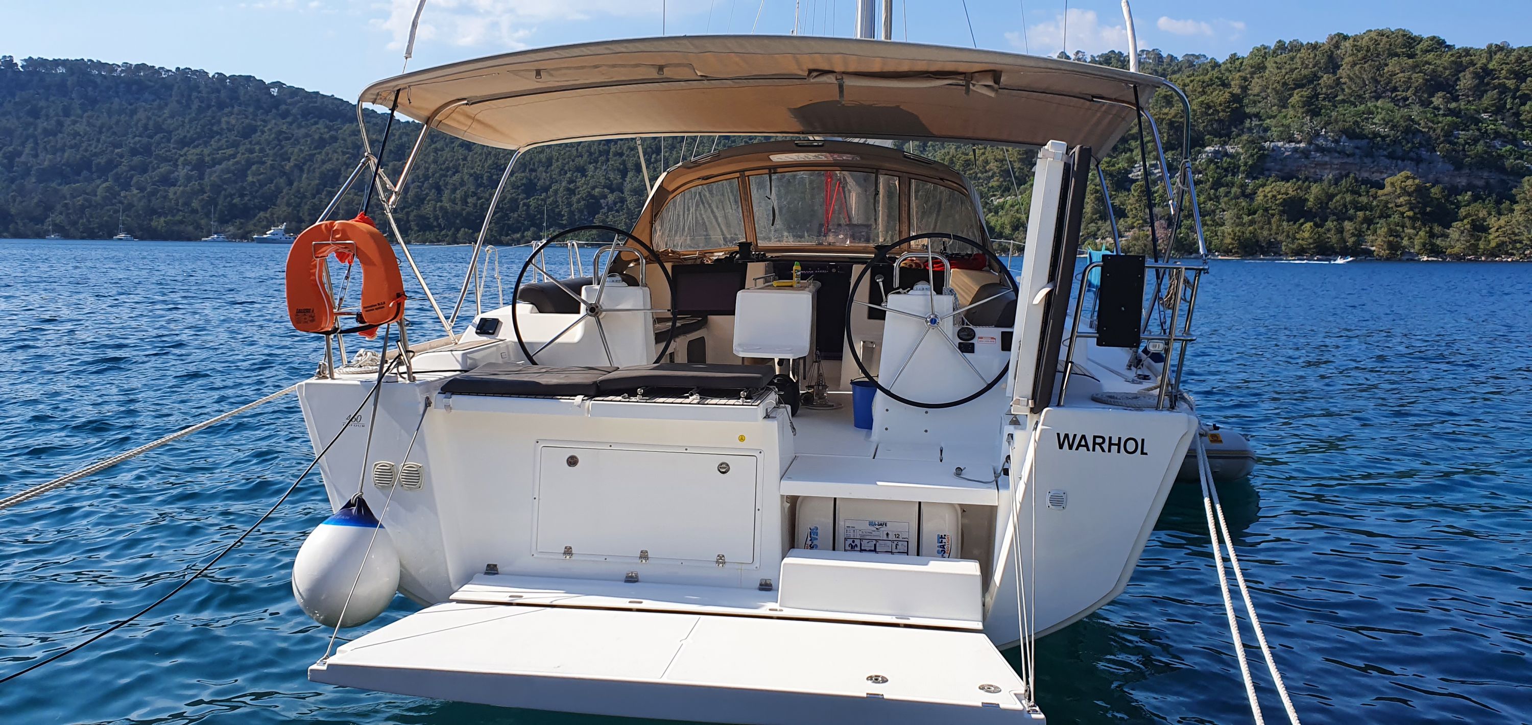 Outside Badeleiter, Biminitop, Cockpitdusche, Cockpitlautsprecher, Cockpitpolster, Cockpittisch, elektr. Ankerwinsch, Gangway, Selbstholende Winschen, Sprayhood