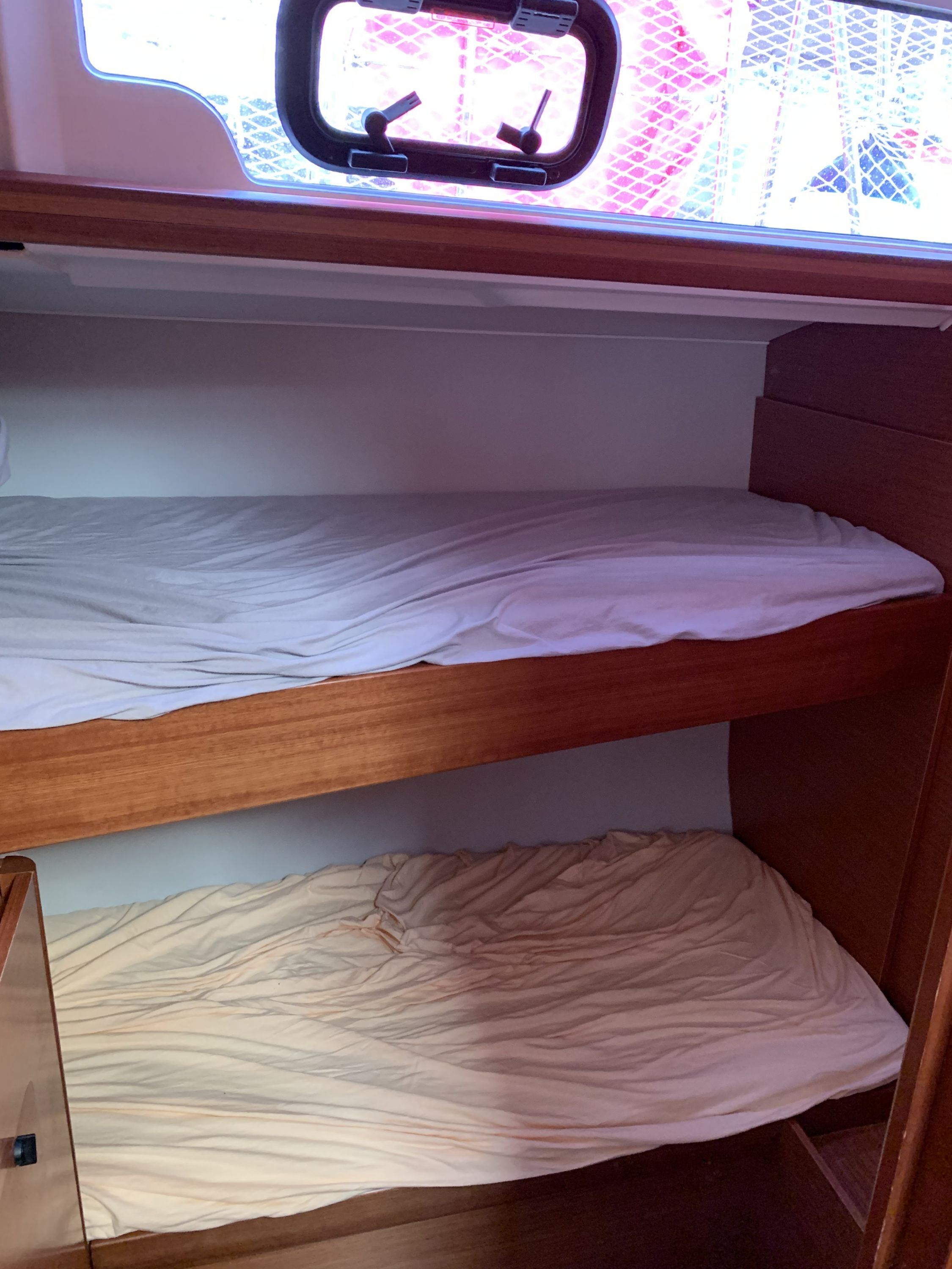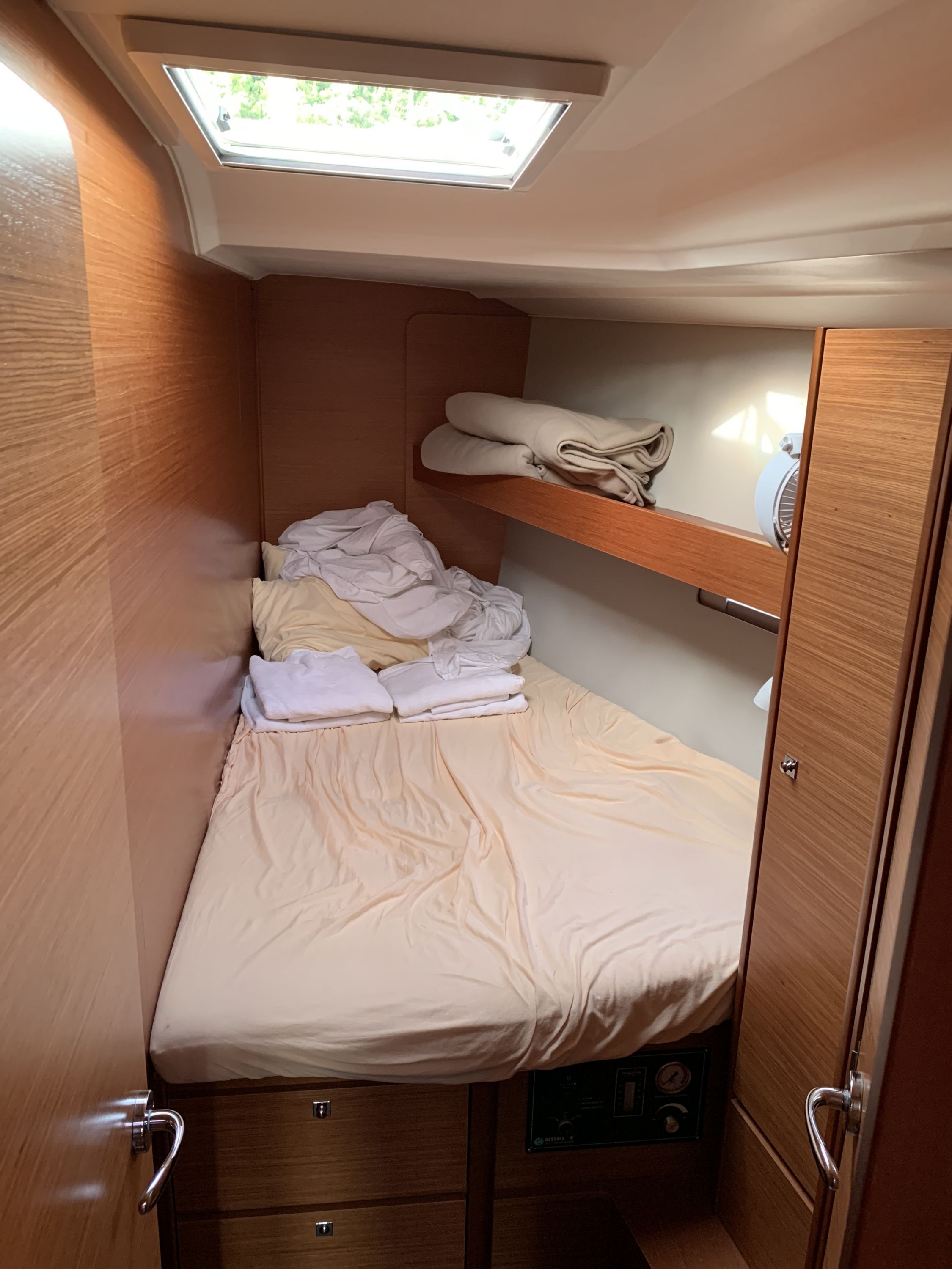 Die Dufour 460 GL ist generell für eine Belegung mit 10 Personen ungeeignet, da die Kajüten/Kojen zu eng sind. Dass kein Bugstrahlruder vorhanden ist, macht das Manövrieren schwierig.