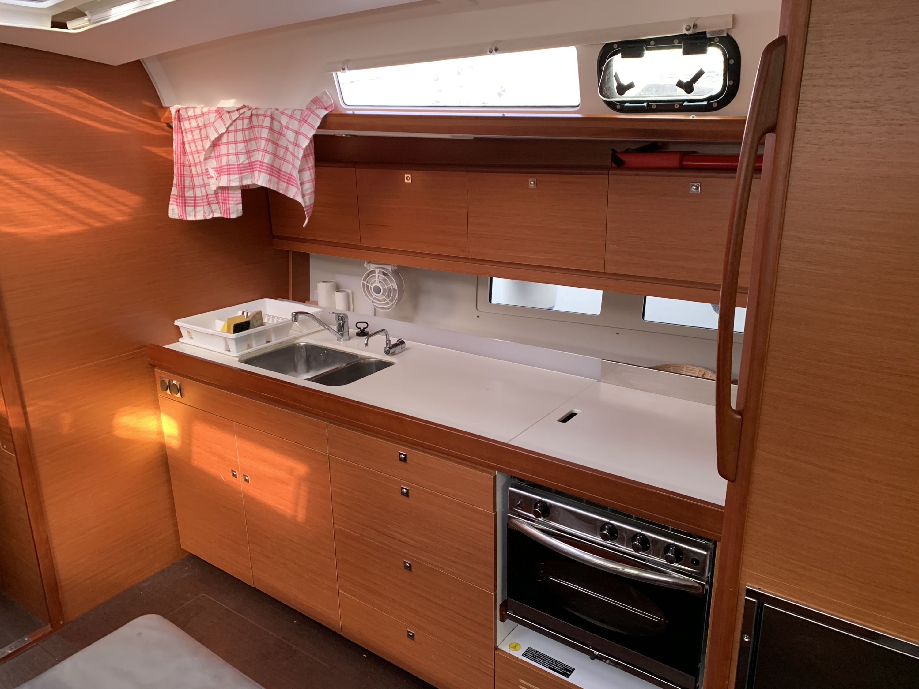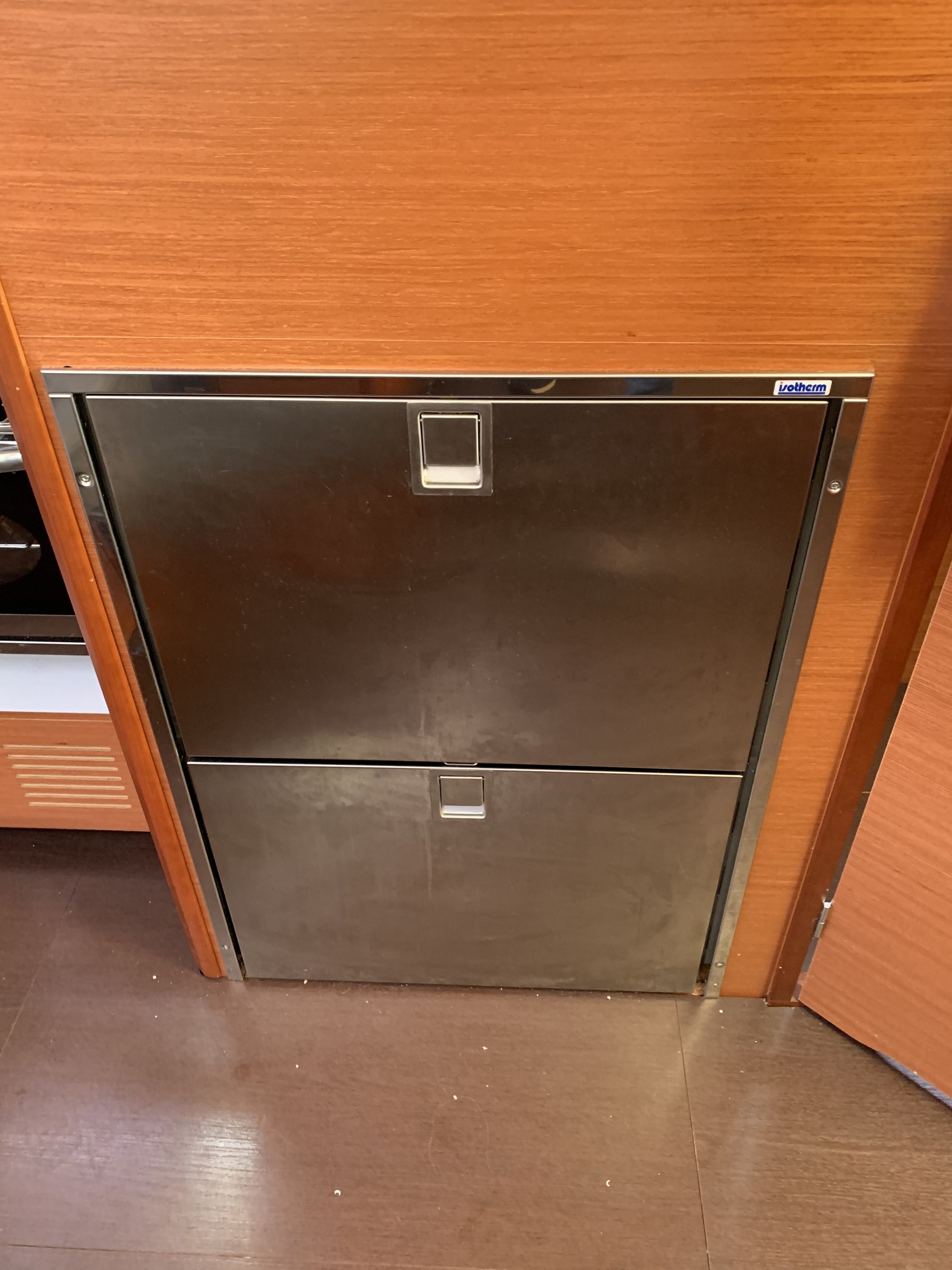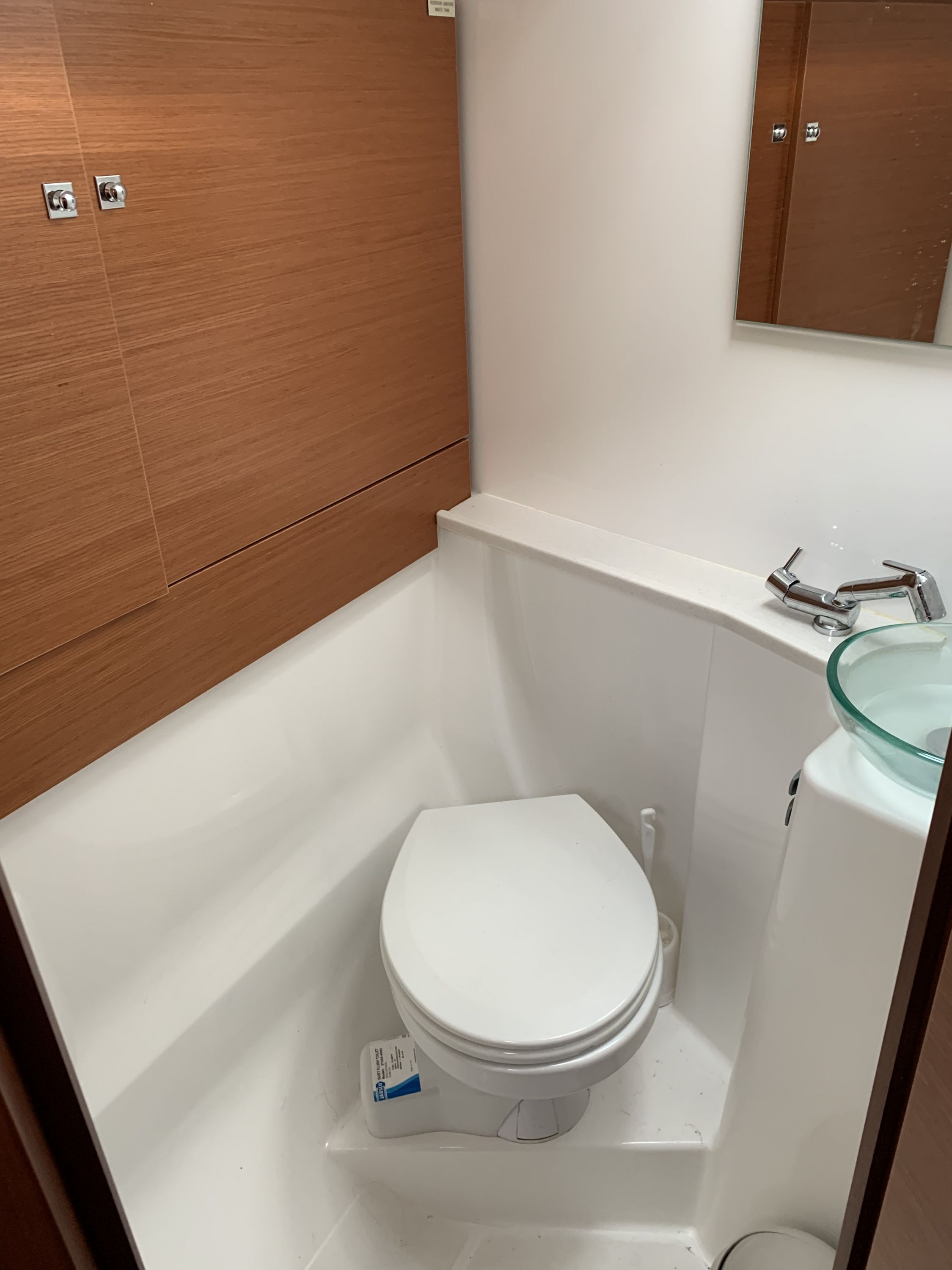 Inside 220V Steckdosen, Backofen, Gasherd, Inverter 12V/220V, Kühlschrank, Ladegerät, Radio mit CD und MP3, Salontisch absenkbar, Ventilatoren in Kabinen, Watermaker, WC (elektr.)