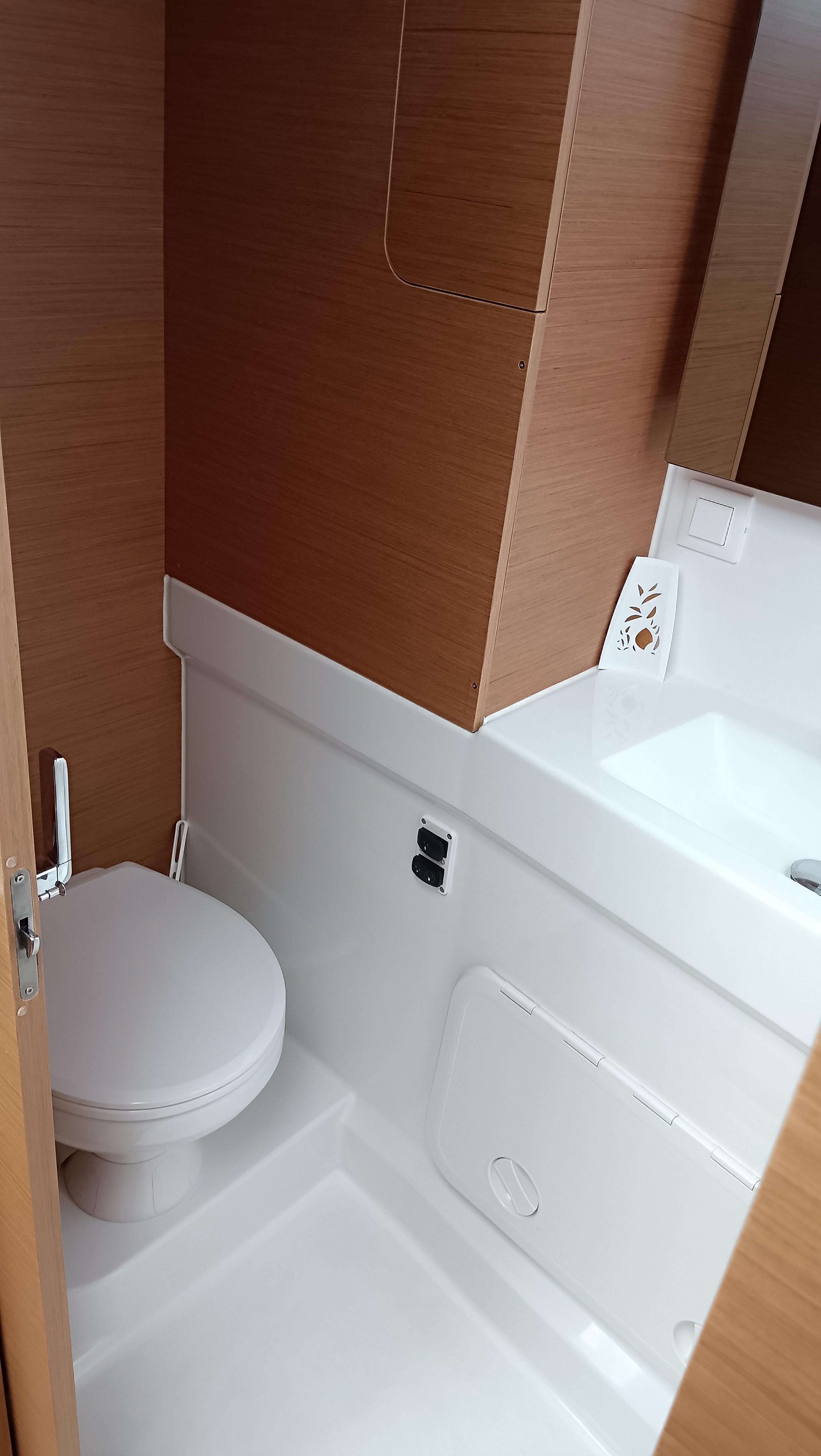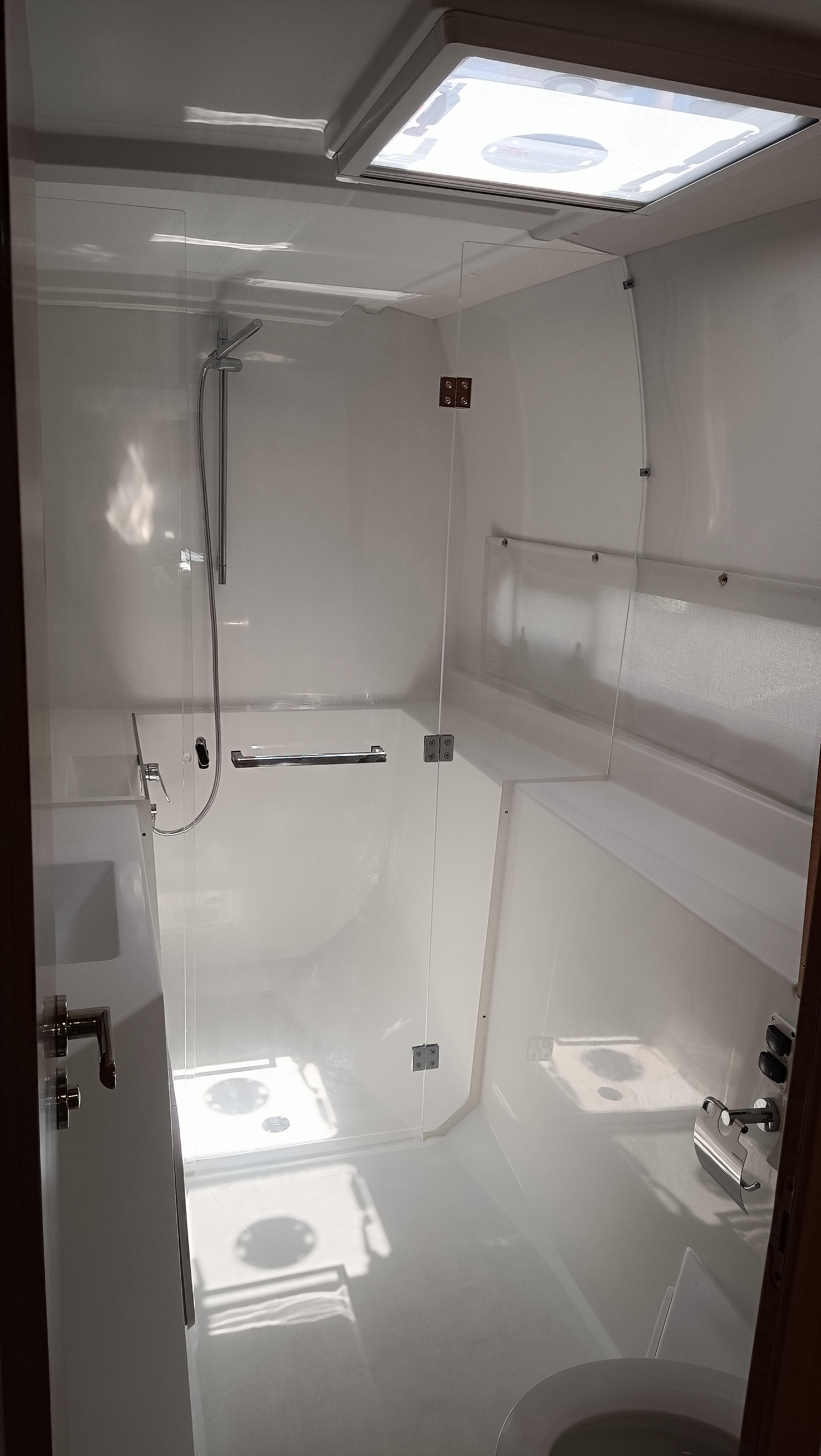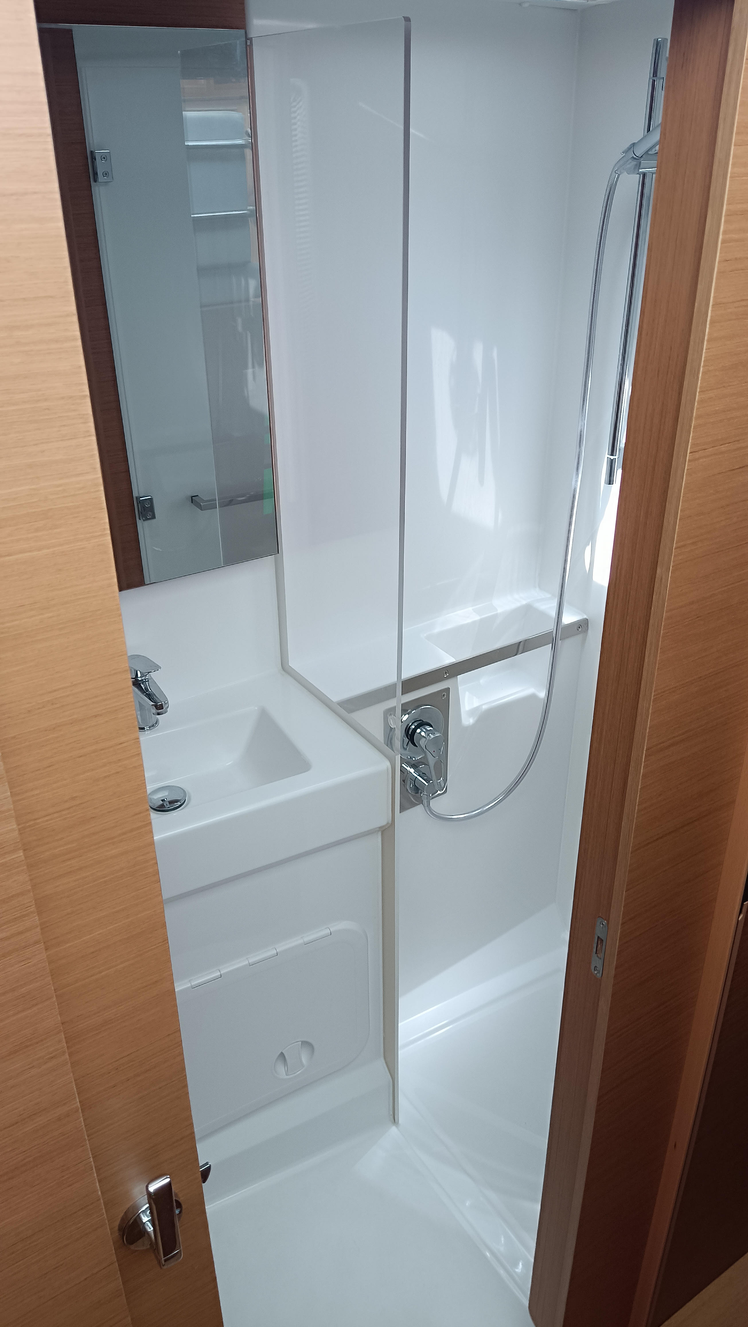 | Safety | AIS Empfänger, Bootsmannstuhl, Bordapotheke, Bordwerkzeug, elektr. Bilgepumpe, Feststoffschwimmwesten, Feuerlöscher, Navigationslichter, Nebelhorn, Notpinne, Notsignale, Radarreflektor, Taschenlampe, UKW-Funk, Zweitanker |
