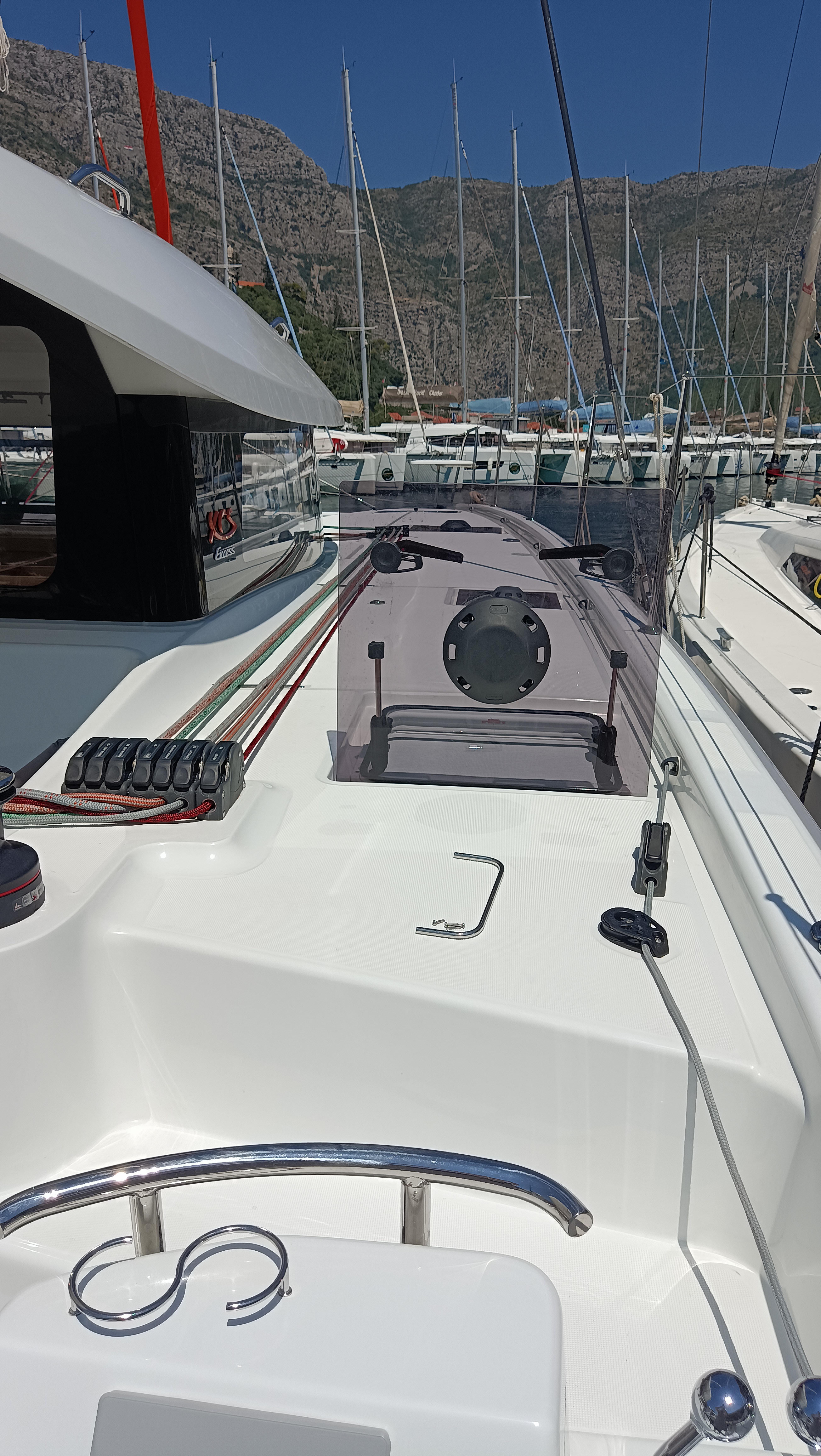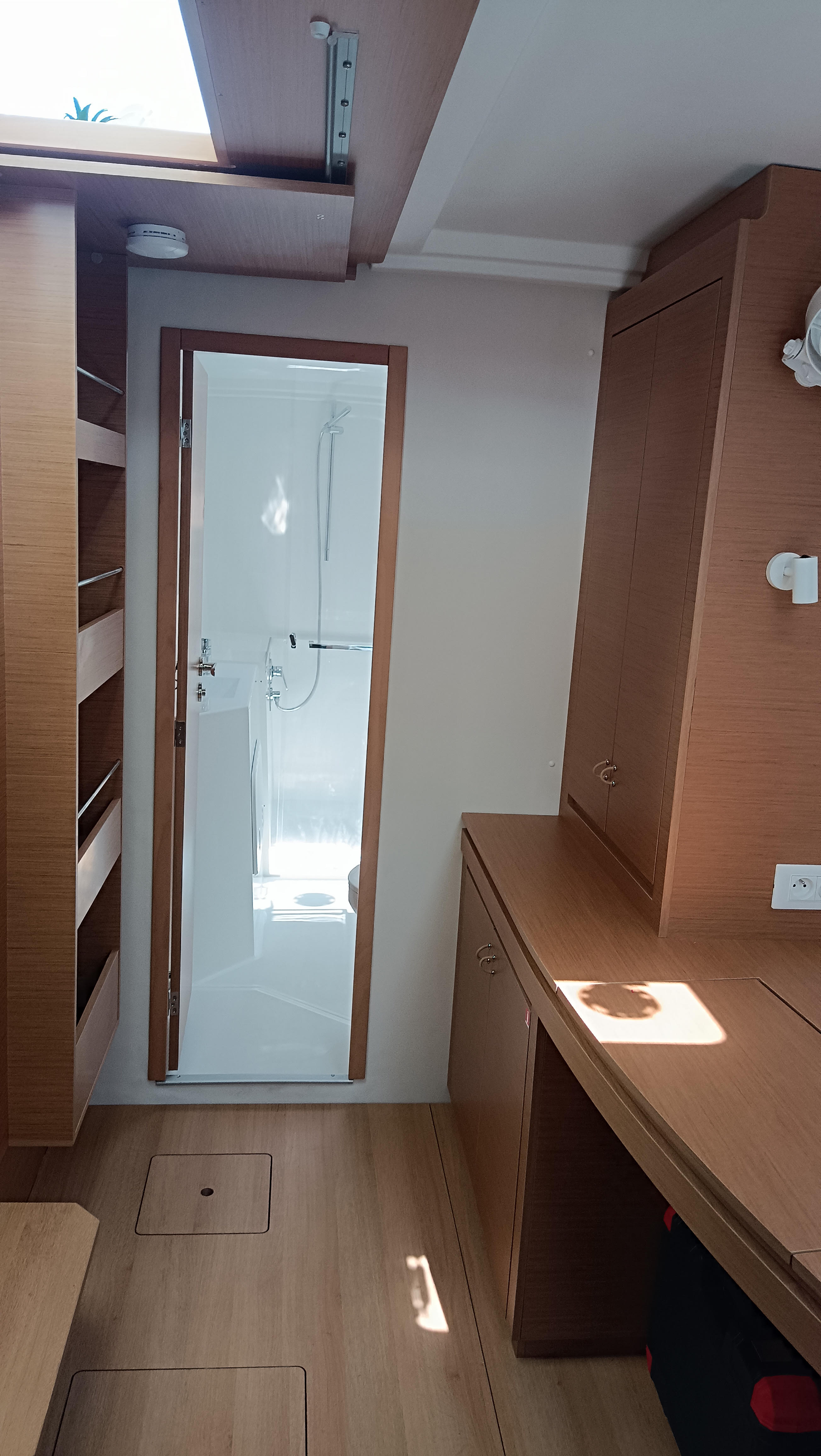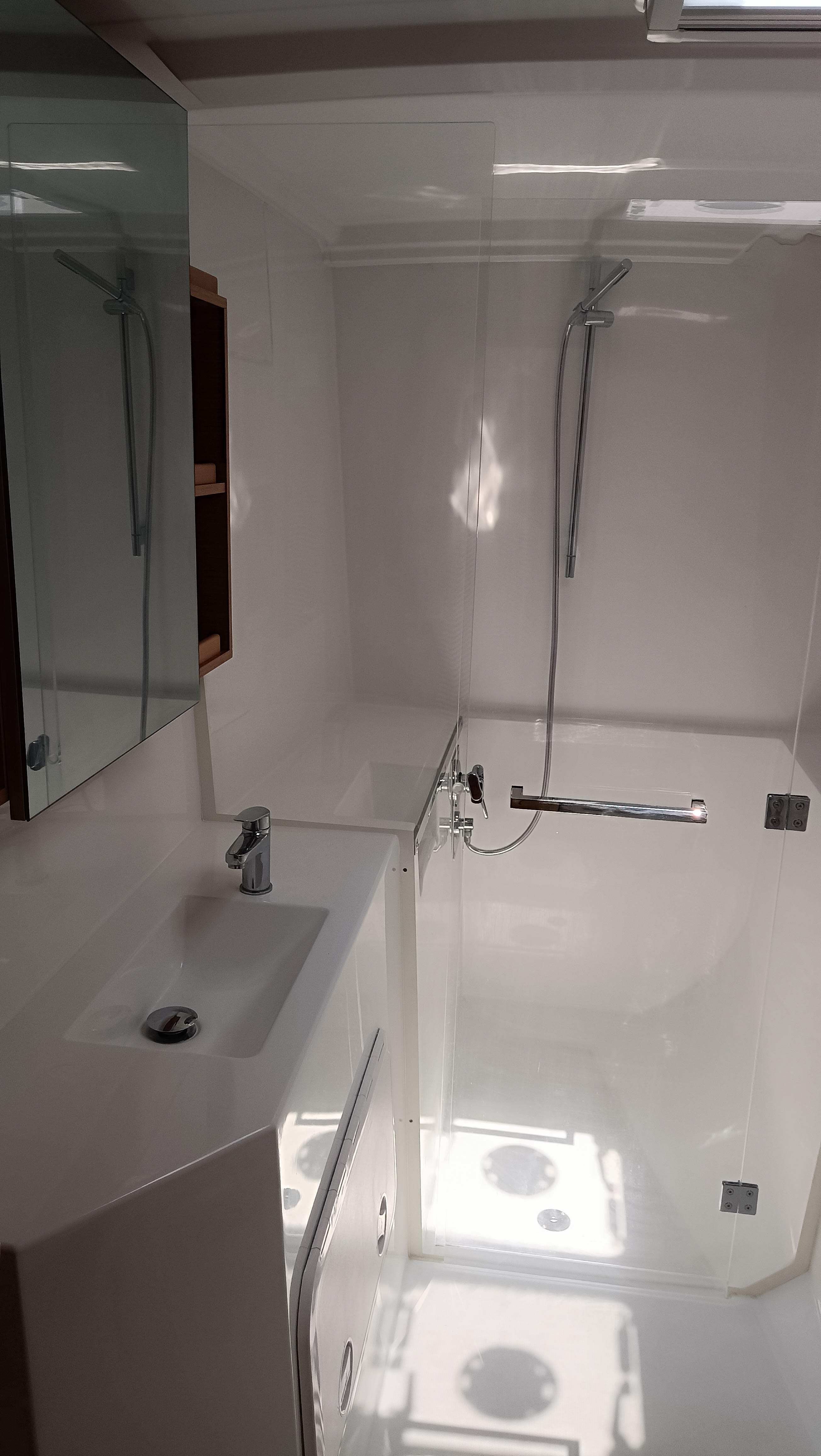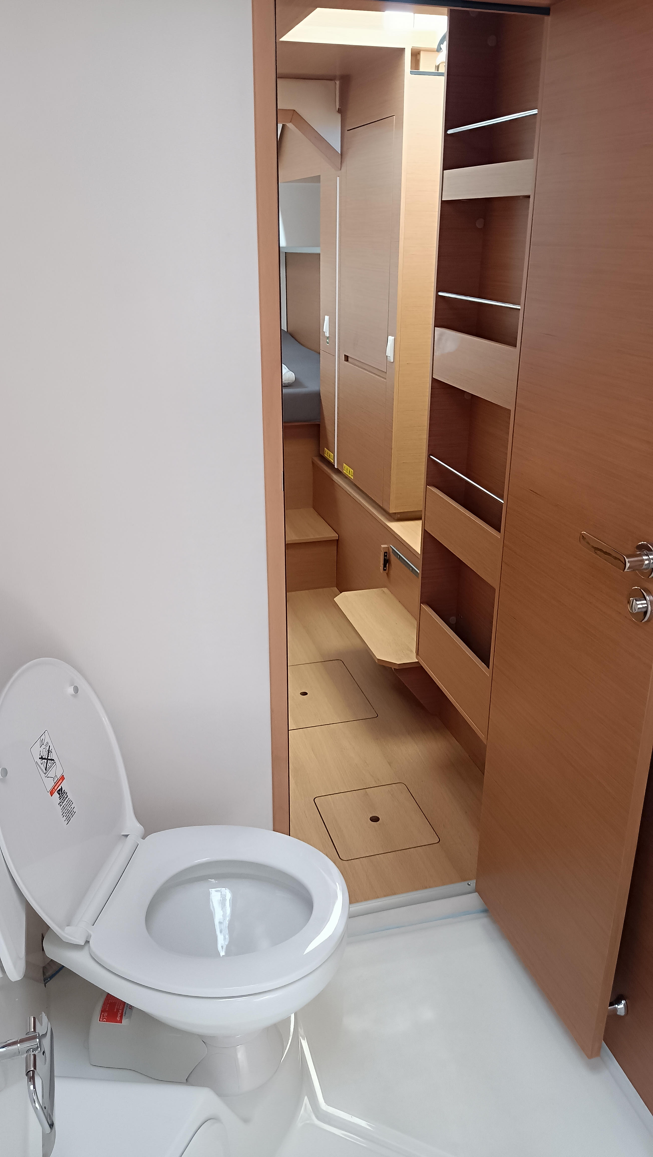 | Safety | AIS Empfänger, Bootsmannstuhl, Bordapotheke, Bordwerkzeug, elektr. Bilgepumpe, Feststoffschwimmwesten, Feuerlöscher, Navigationslichter, Nebelhorn, Notpinne, Notsignale, Radarreflektor, Taschenlampe, UKW-Funk, Zweitanker |
