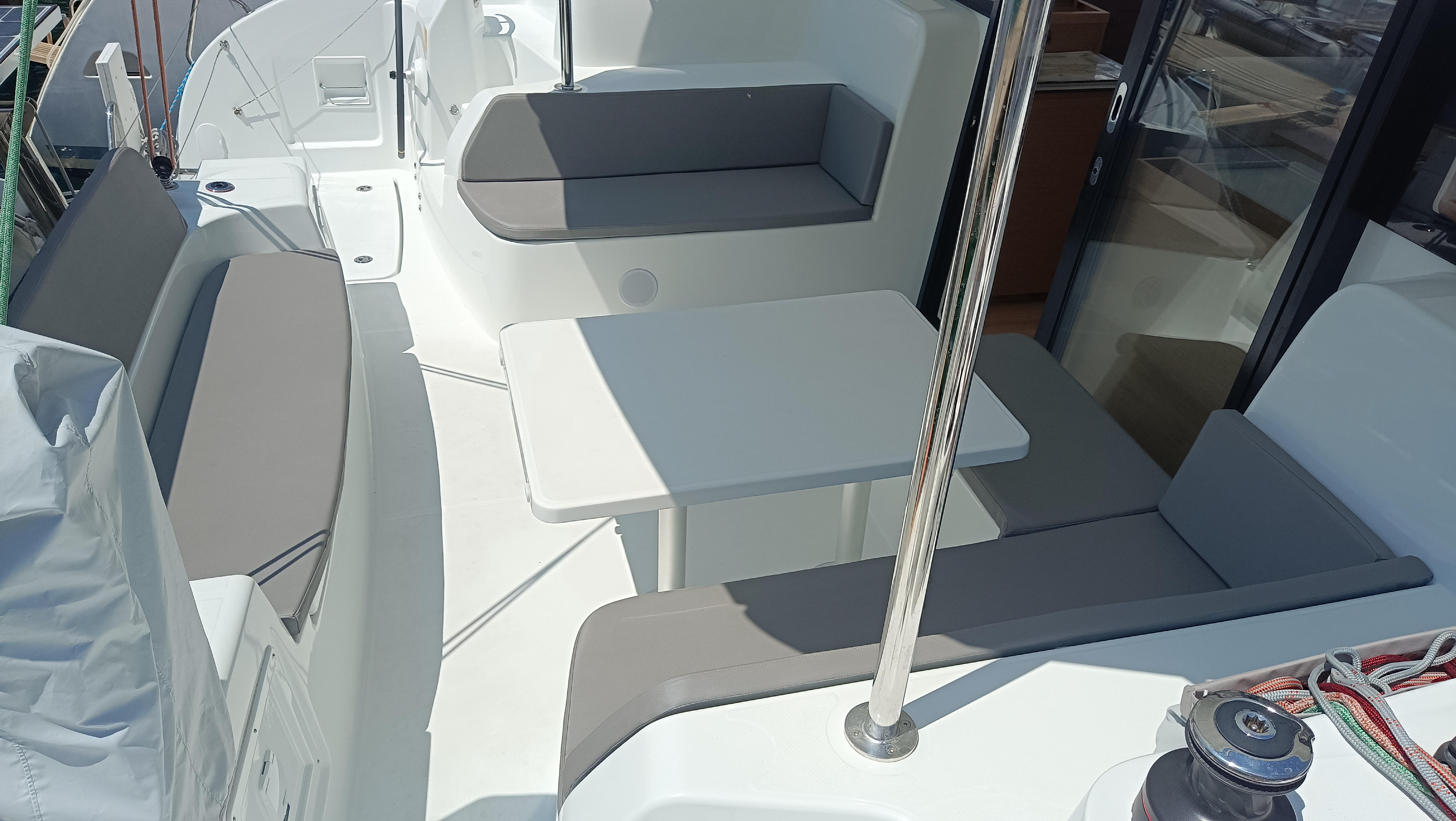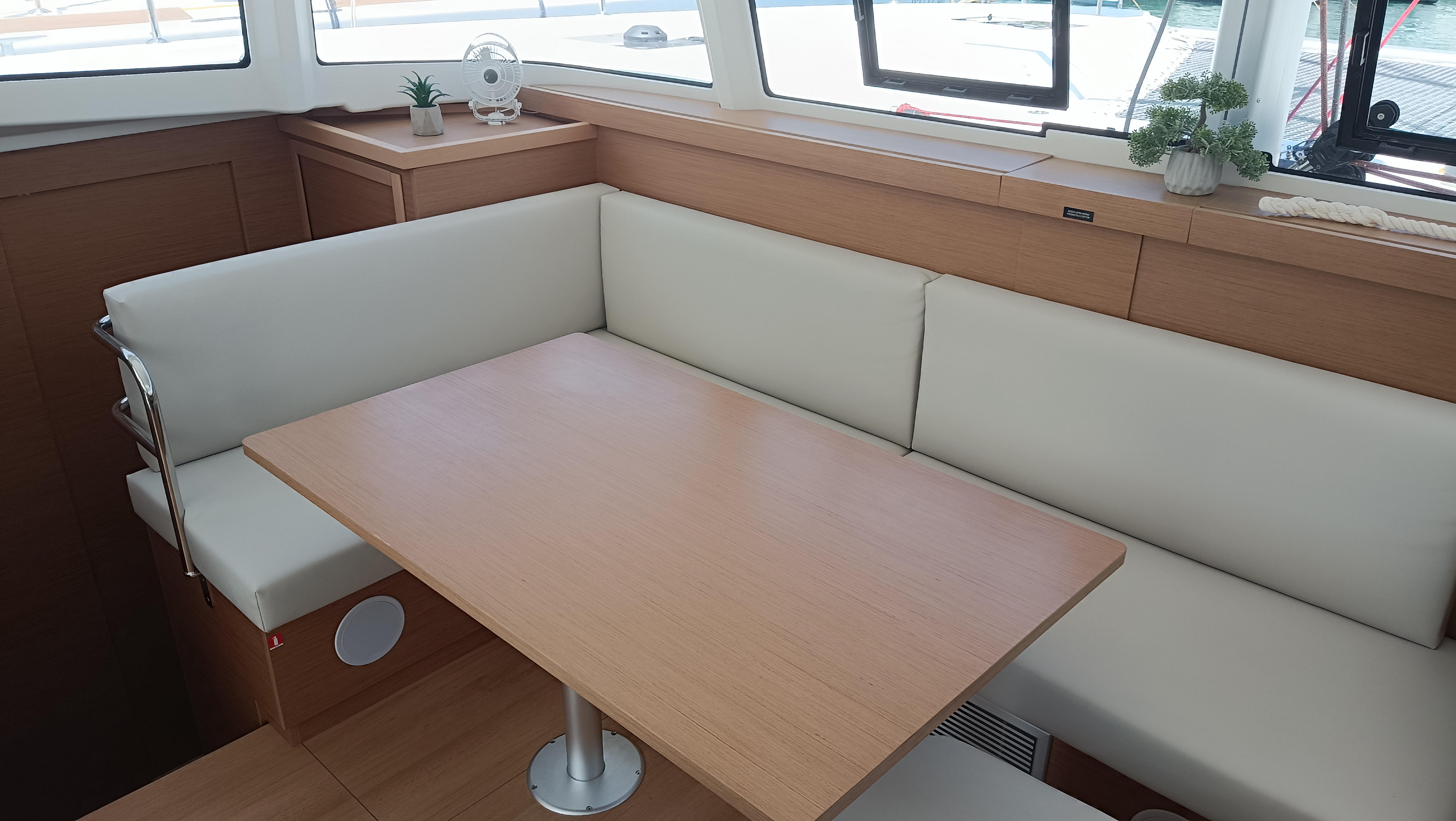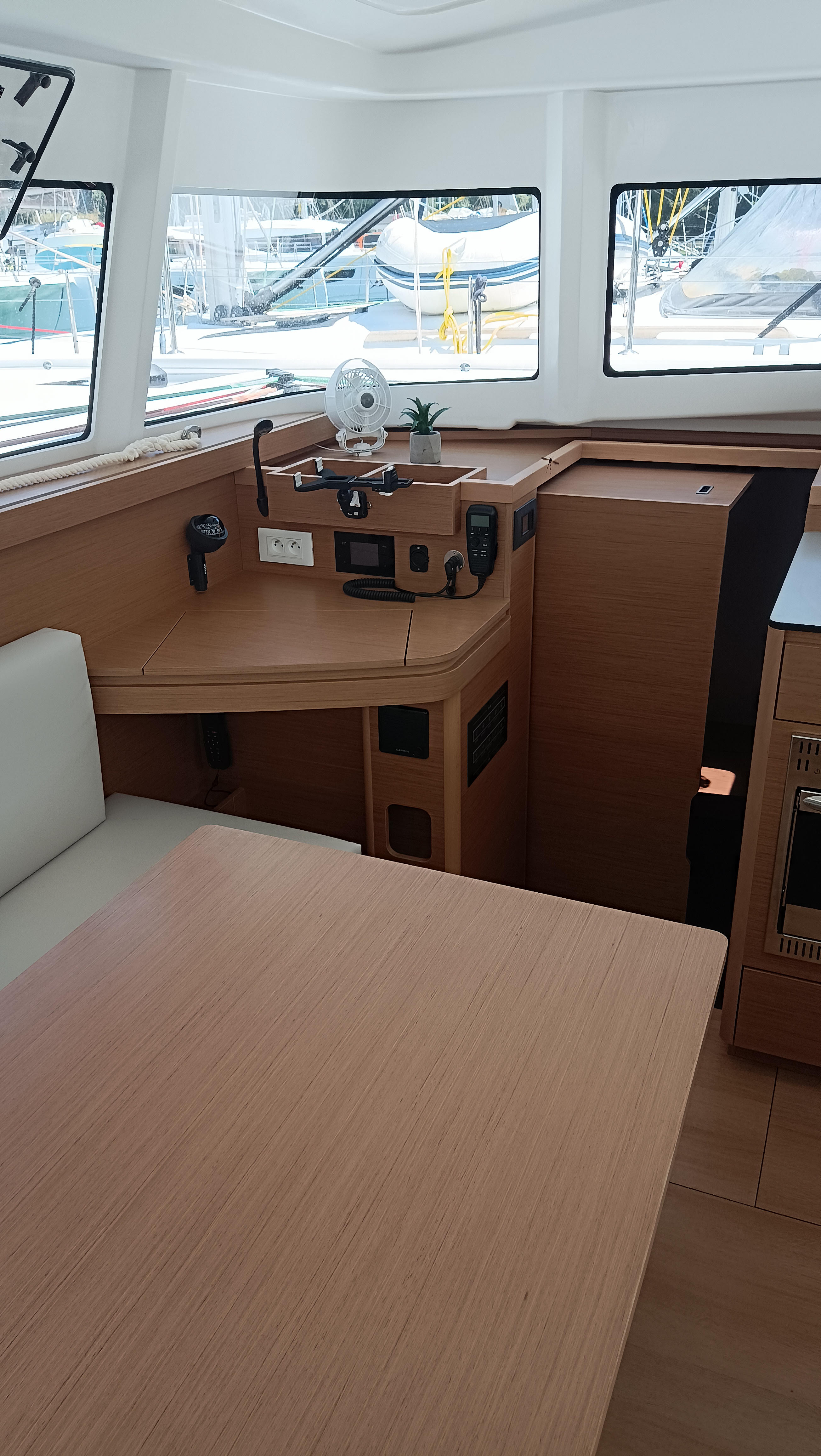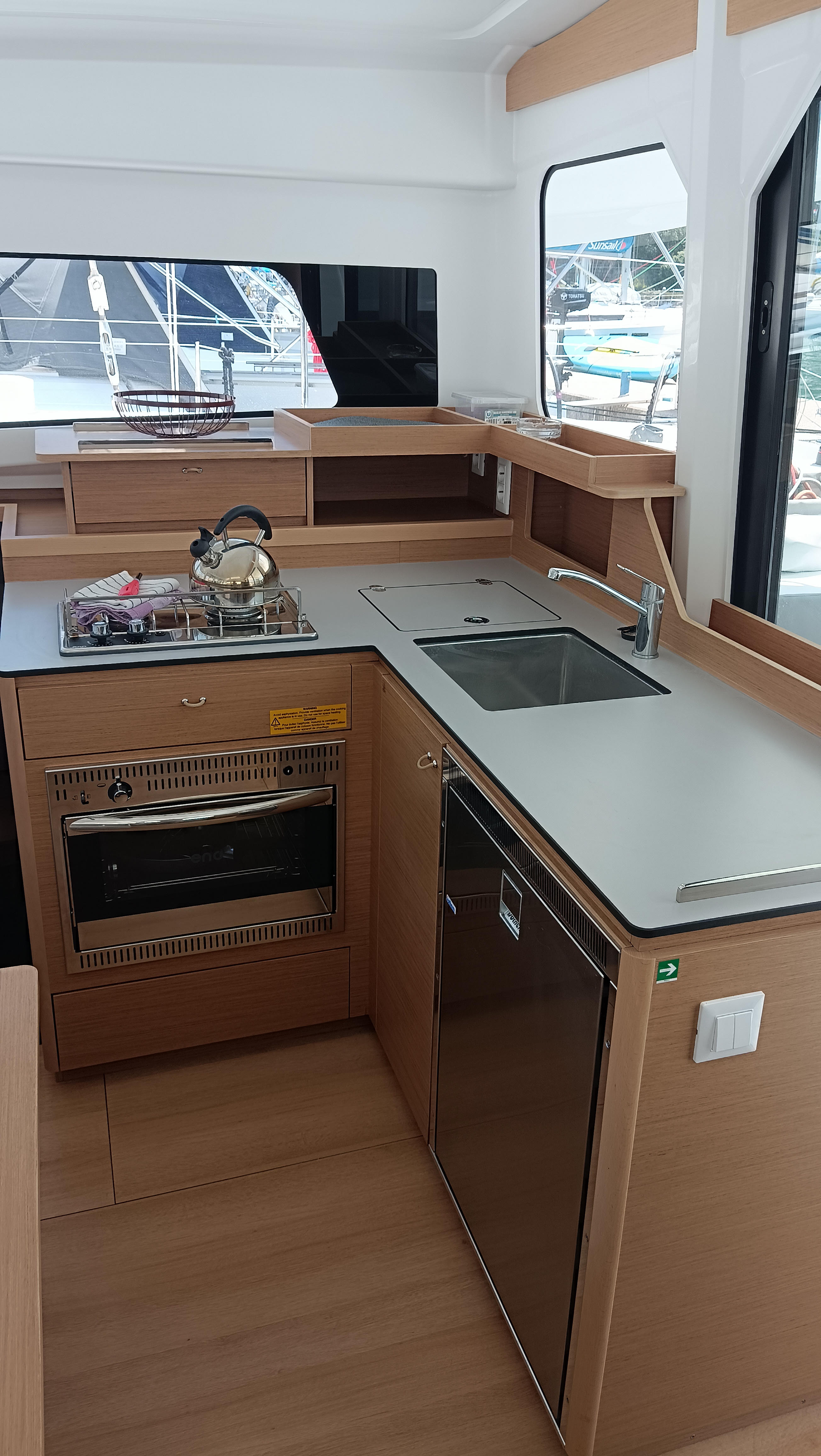| Inside | Backofen, Borduhr, elektr. Druckwasserpumpe, FUSION Sound System, Klimaanlage (Landstrom), Kühlschrank, Ladegerät, Landstromkabel, Luftpumpe für Beiboot, Radio mit CD oder MP3, Trichter, Ventilator, Warmwasser, WC (elektr.) |