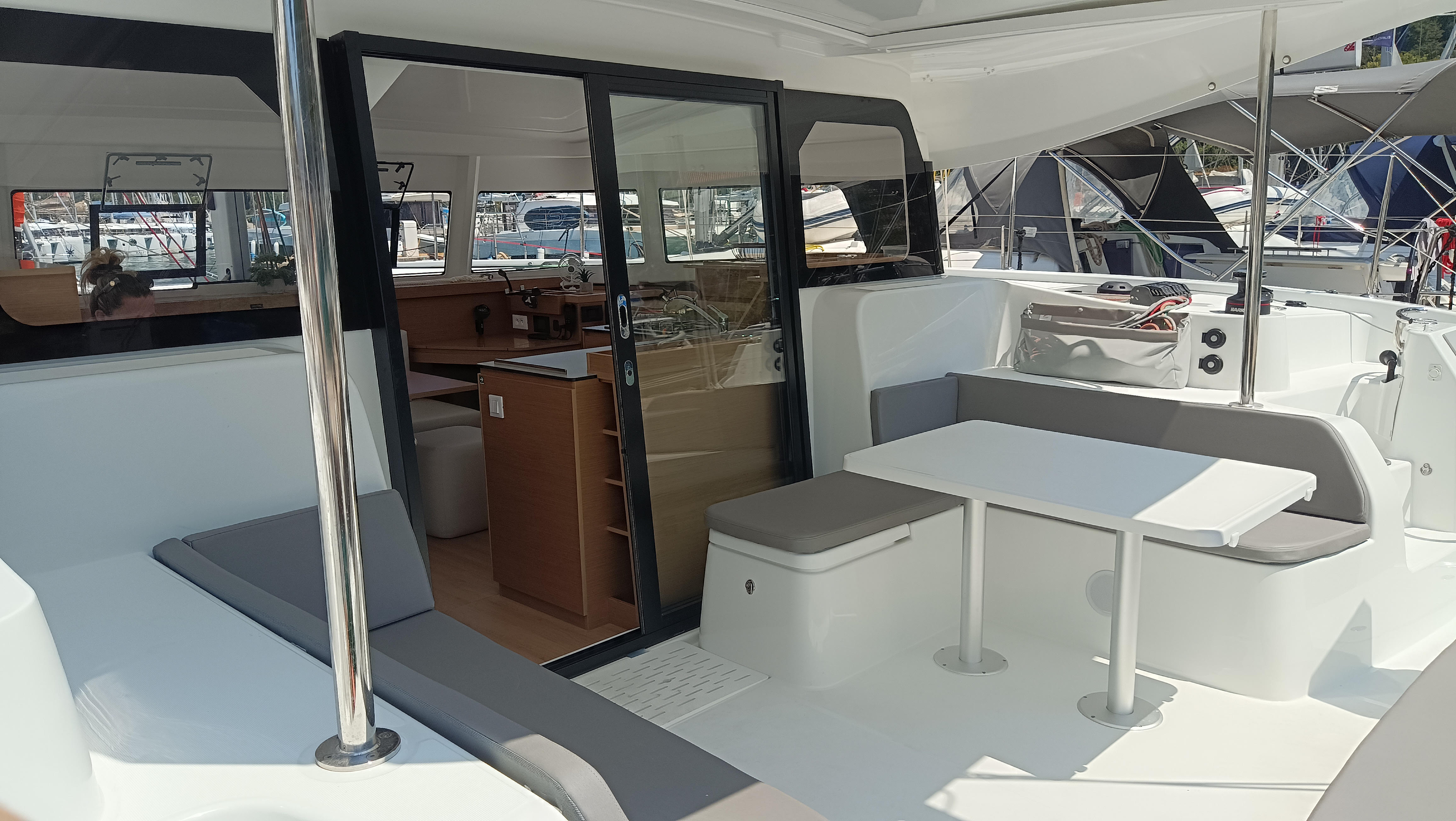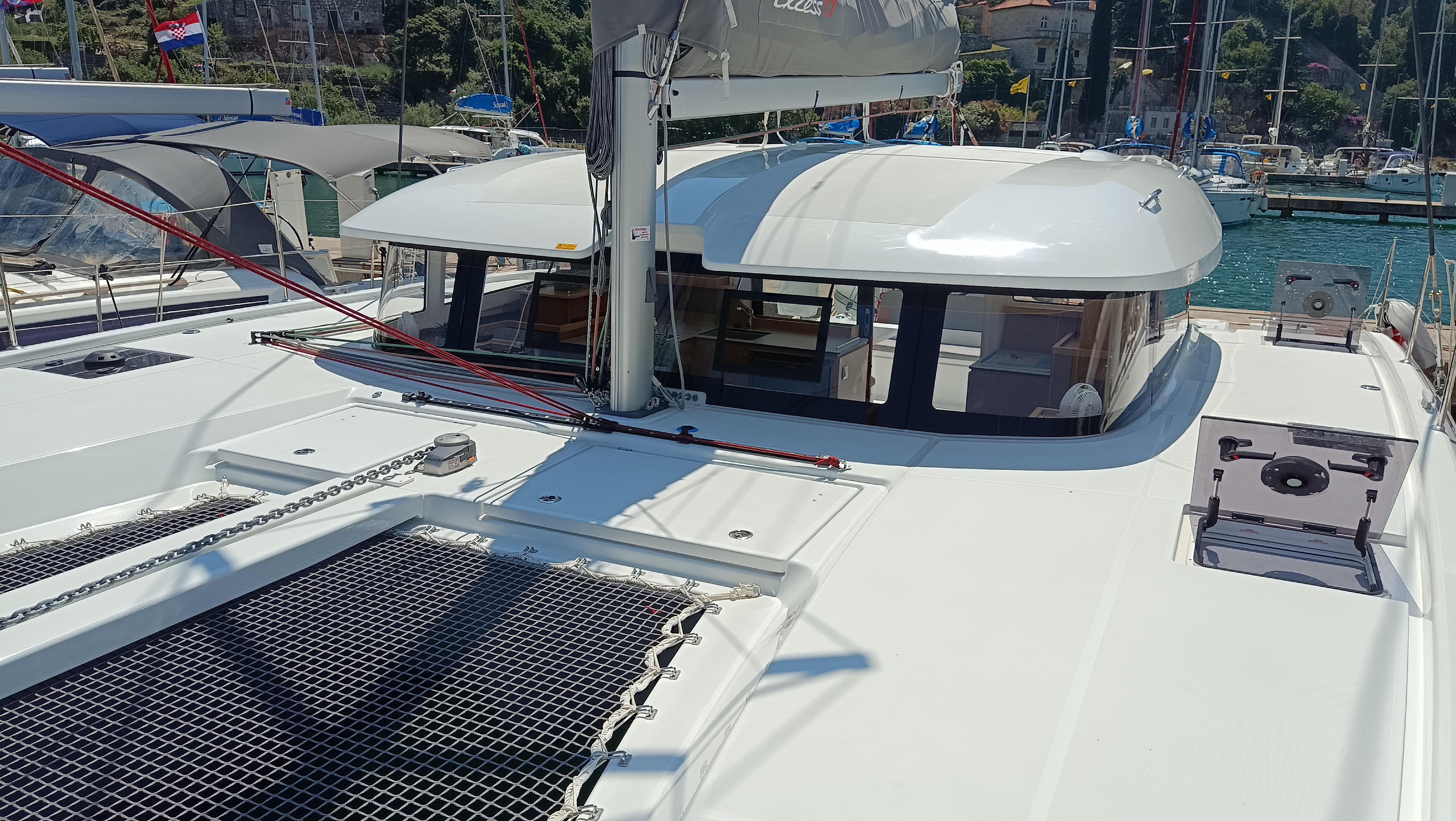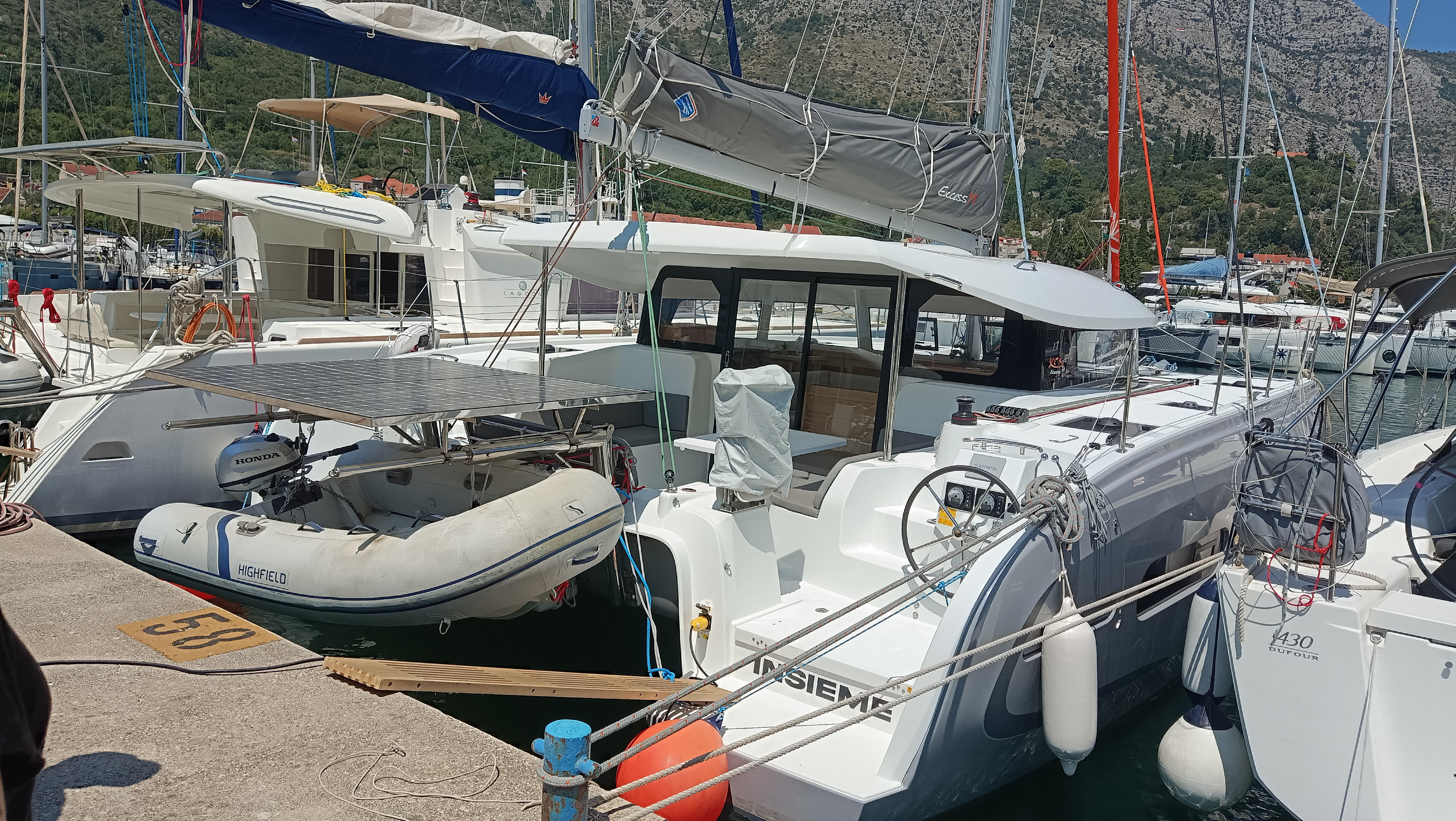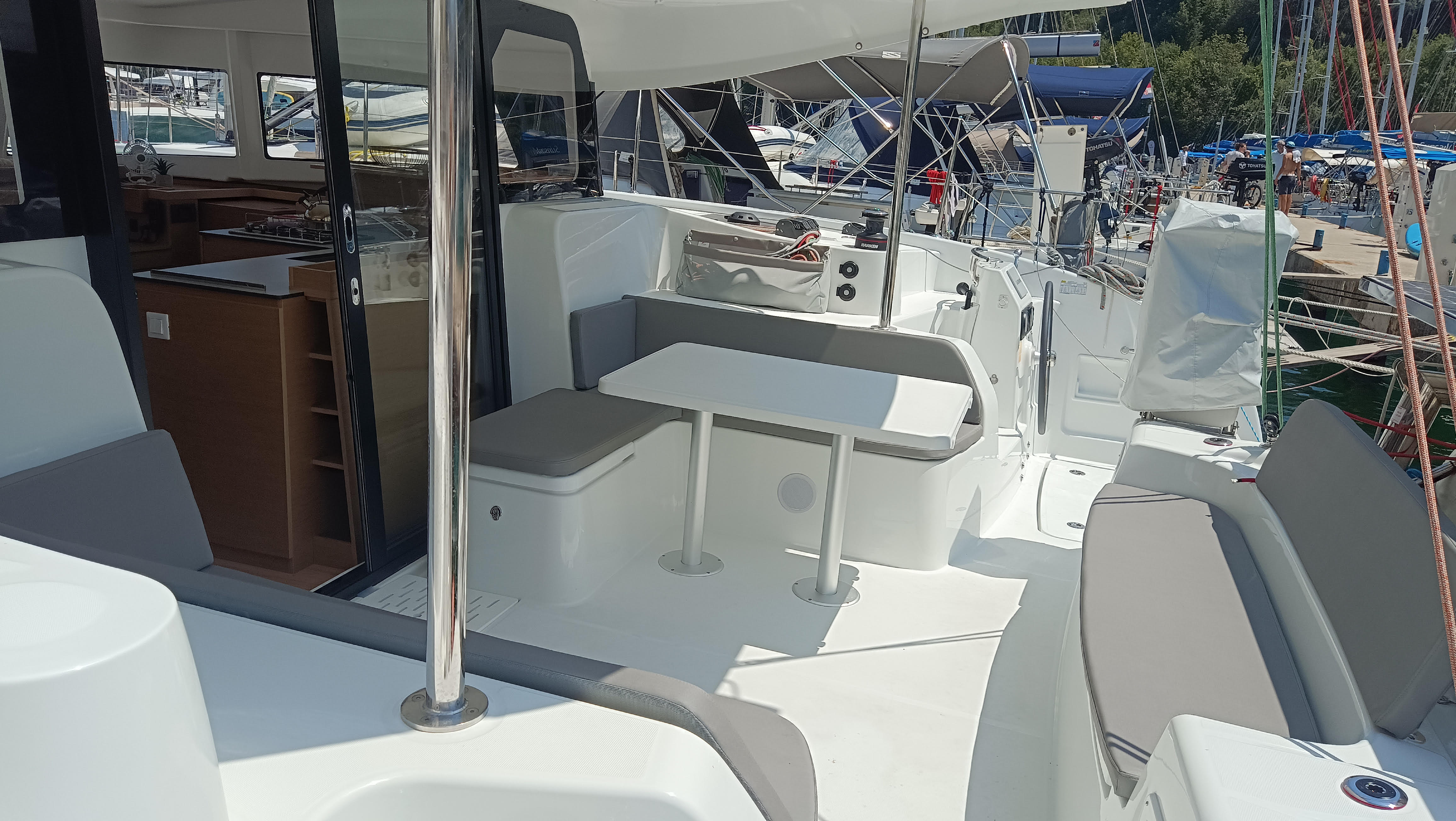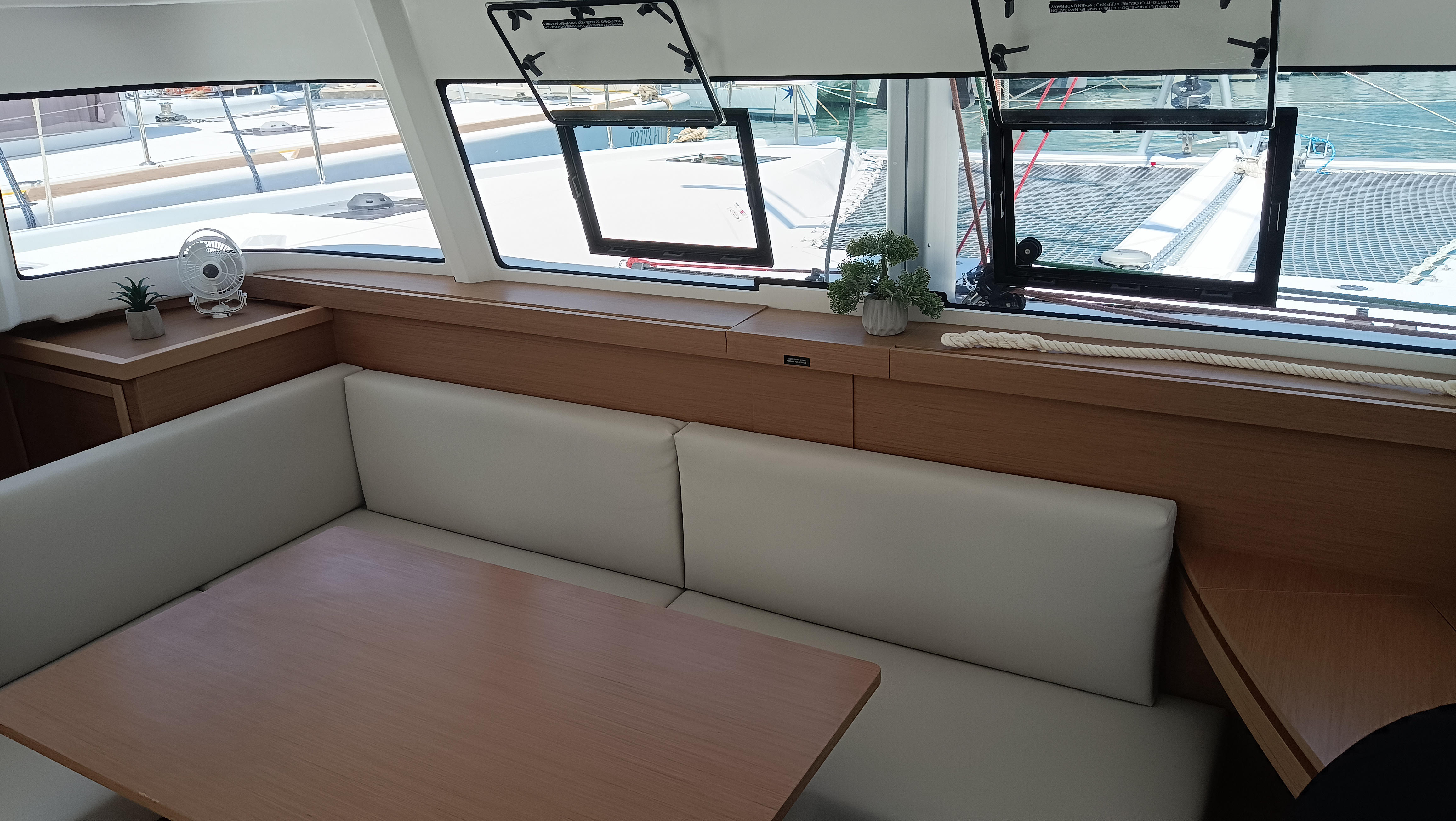 | Inside | Backofen, Borduhr, elektr. Druckwasserpumpe, FUSION Sound System, Klimaanlage (Landstrom), Kühlschrank, Ladegerät, Landstromkabel, Luftpumpe für Beiboot, Radio mit CD oder MP3, Trichter, Ventilator, Warmwasser, WC (elektr.) |