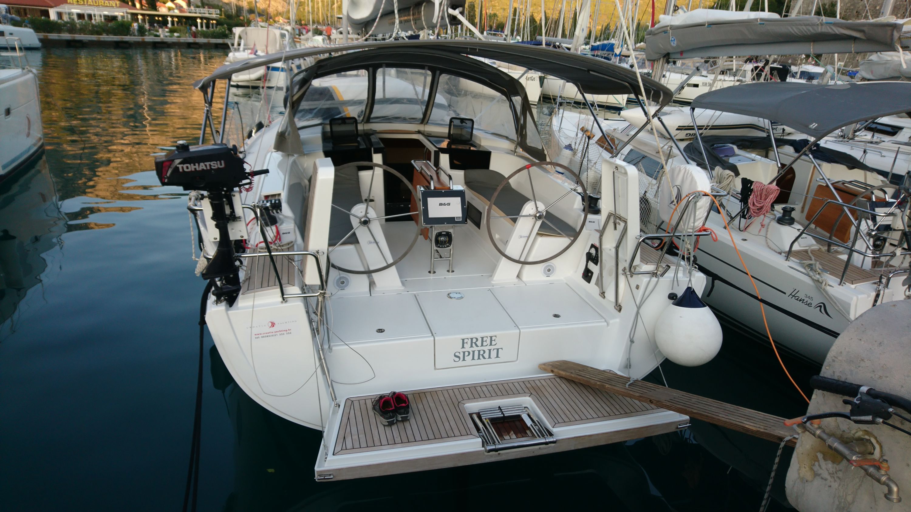 | Outside | Badeplattform, Biminitop, Cockpitdusche, Cockpitlautsprecher, Cockpittisch, elektr. Ankerwinsch, Sprayhood |