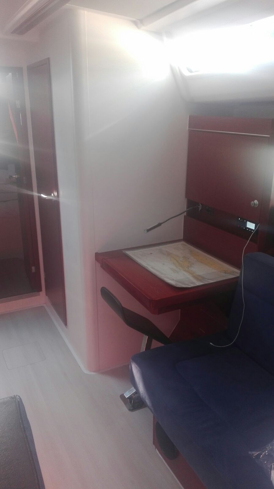 | Navigation | Barometer, Fernglas, GPS mit Kartenplotter im Cockpit, Hafenhandbücher, Handpeilkompass, Navigationsbesteck, Seekarten, Tridata (Log, Echolot, Windm.) |