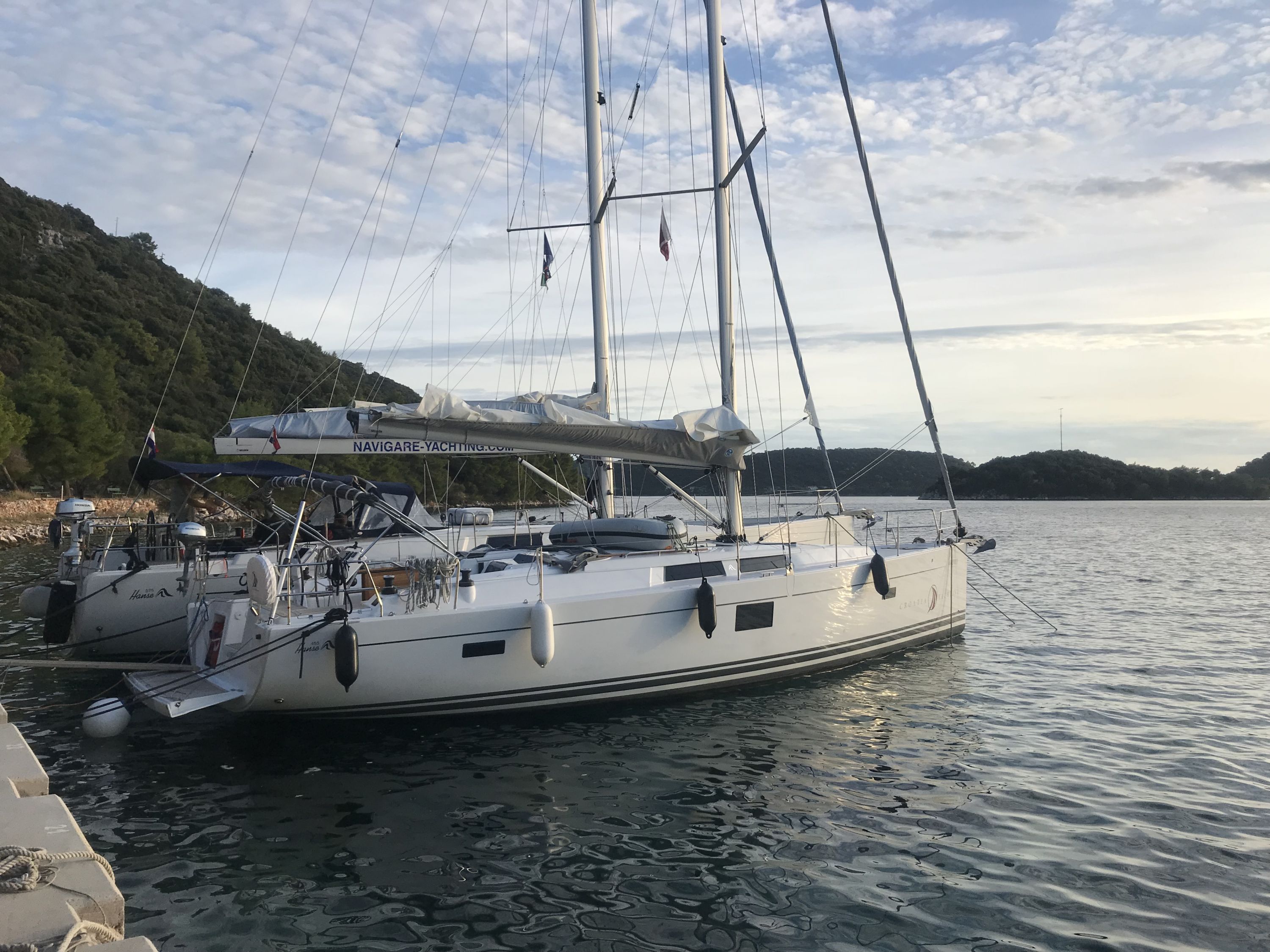 | Navigation | GPS mit Kartenplotter im Cockpit, Hafenhandbücher, Seekarten, Tridata (Log, Echolot, Windm.) |