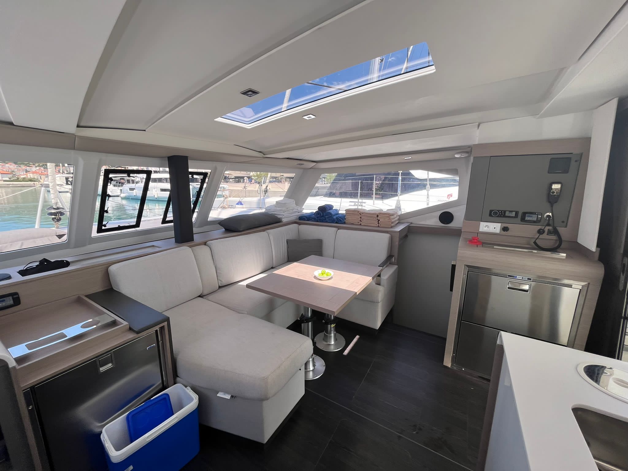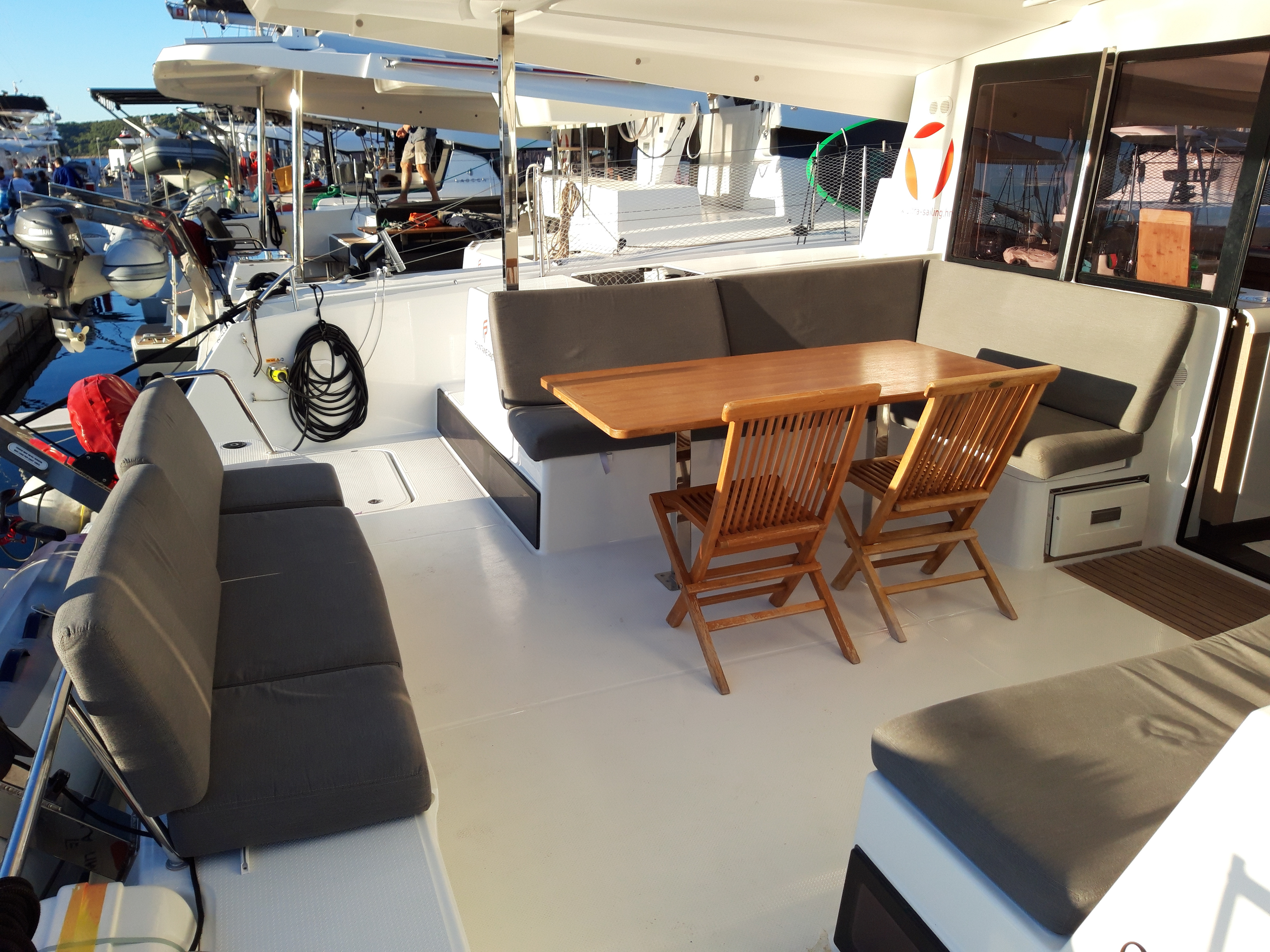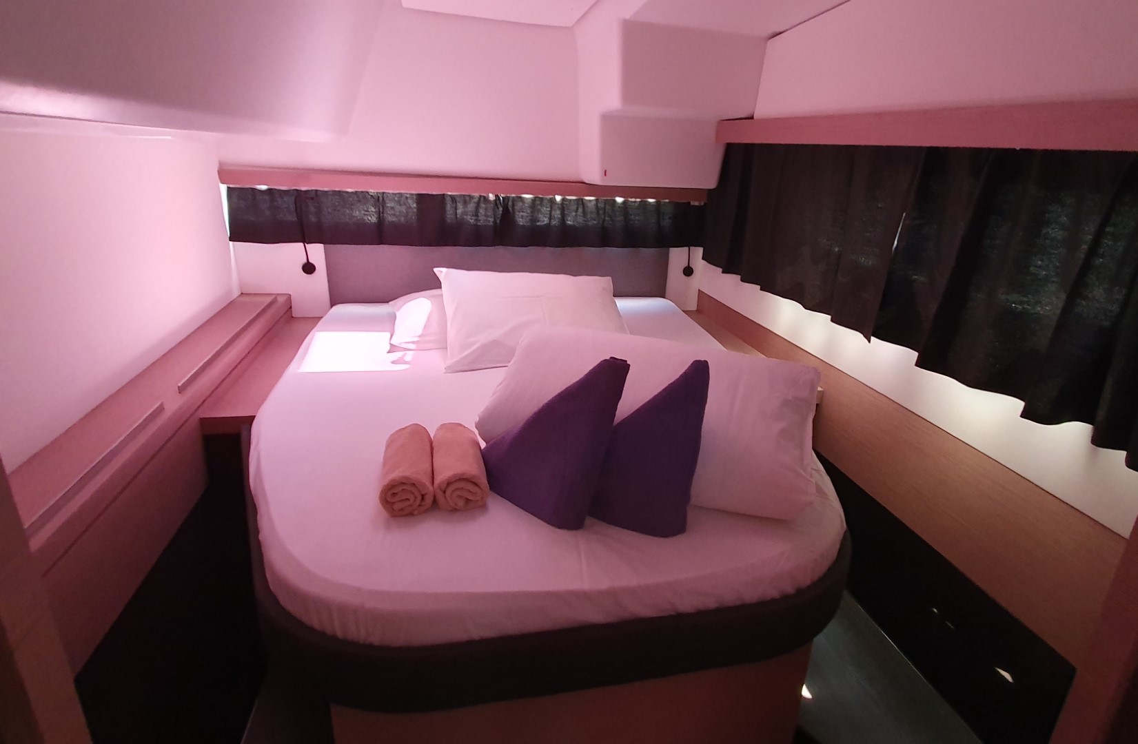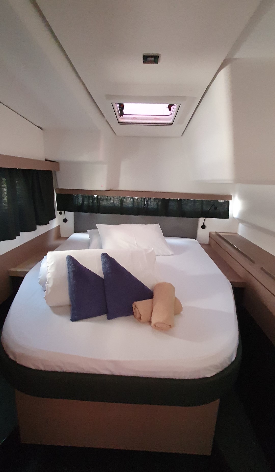 | Inside | FUSION Sound System, Gasherd mit Backofen, Inverter 12V/220V, Kaffeemaschine, Klimaanlage (Landstrom), Kühlschrank mit Gefrierfach, Ladegerät, Moskitonetze, Pantryausstattung, Radio mit CD und USB, Warmwasser |