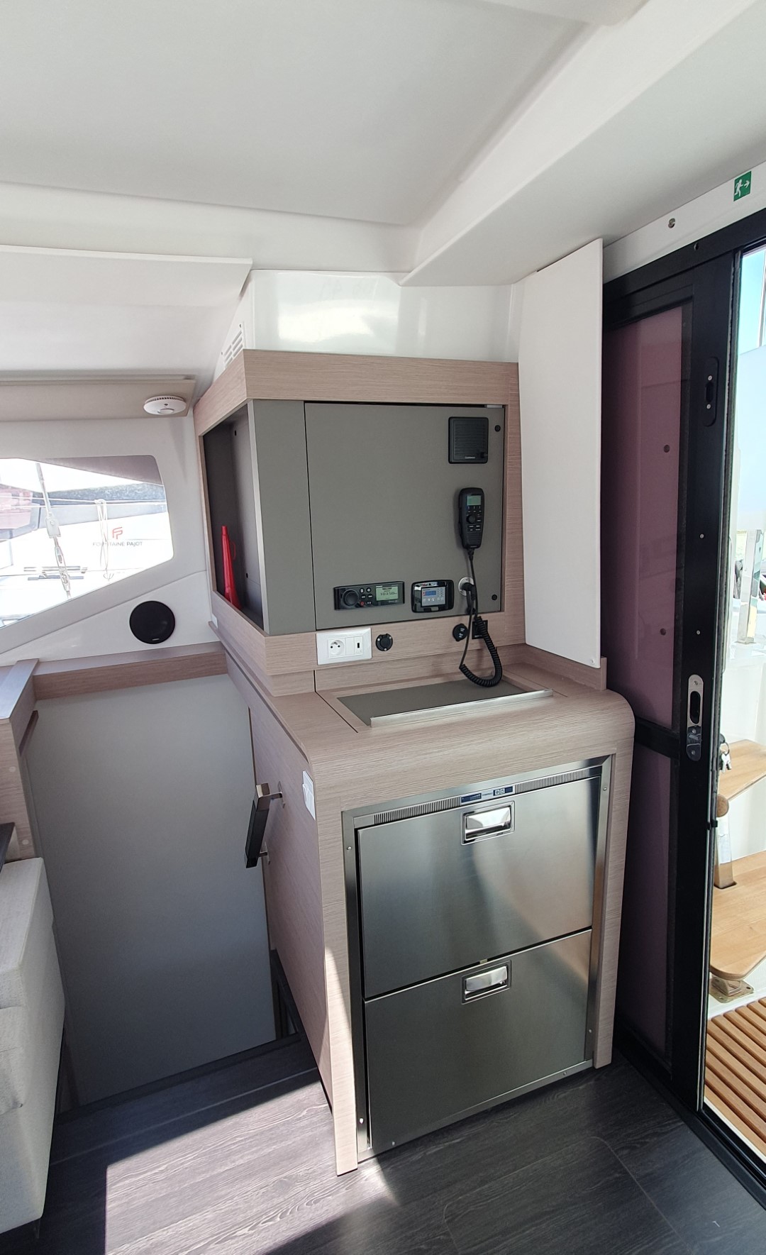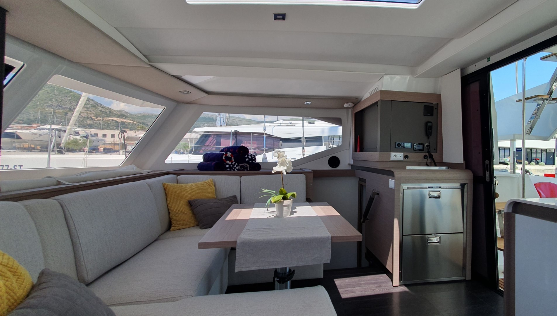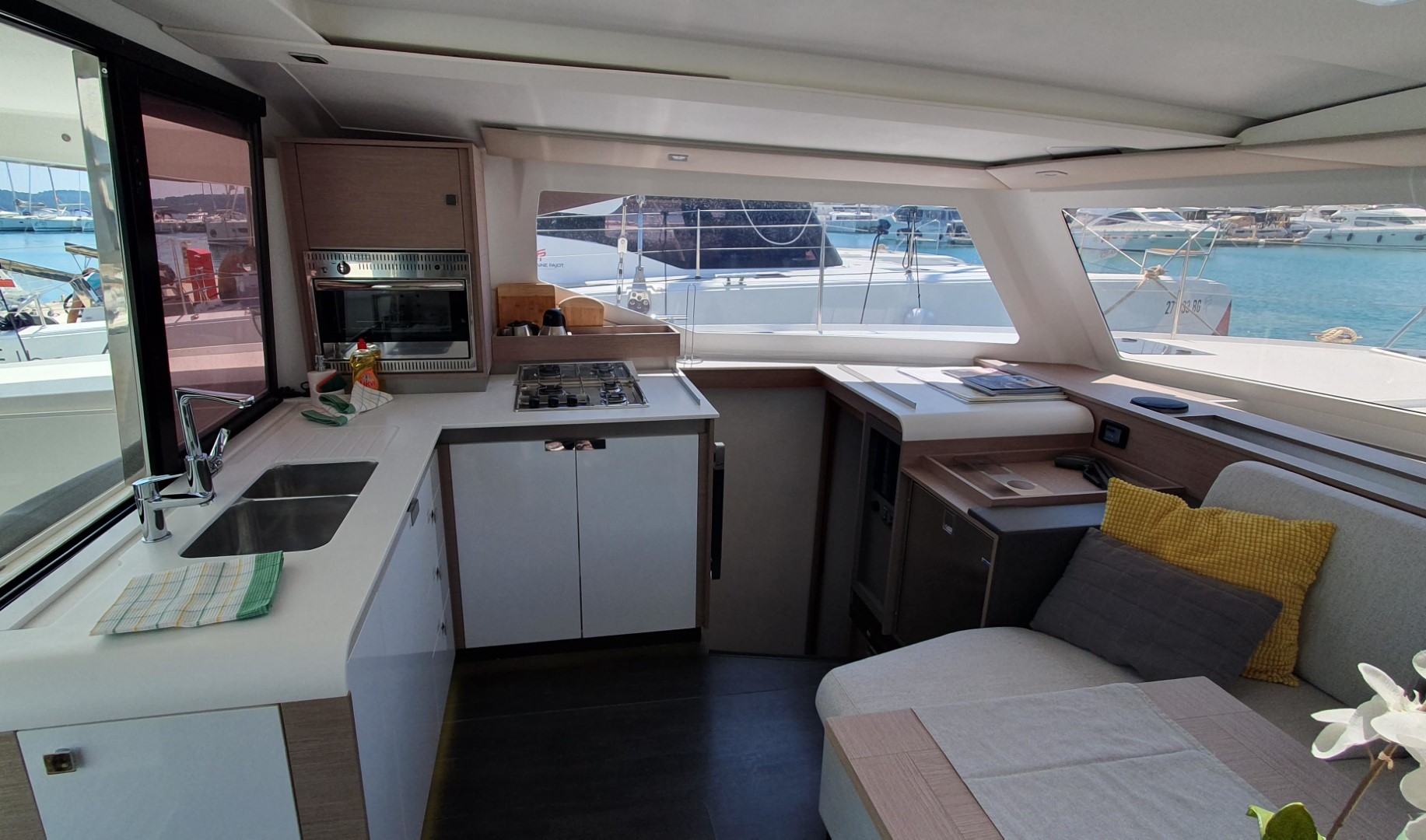 | Inside | FUSION Sound System, Gasherd mit Backofen, Inverter 12V/220V, Kaffeemaschine, Klimaanlage (Landstrom), Kühlschrank mit Gefrierfach, Ladegerät, Moskitonetze, Pantryausstattung, Radio mit CD und USB, Warmwasser |