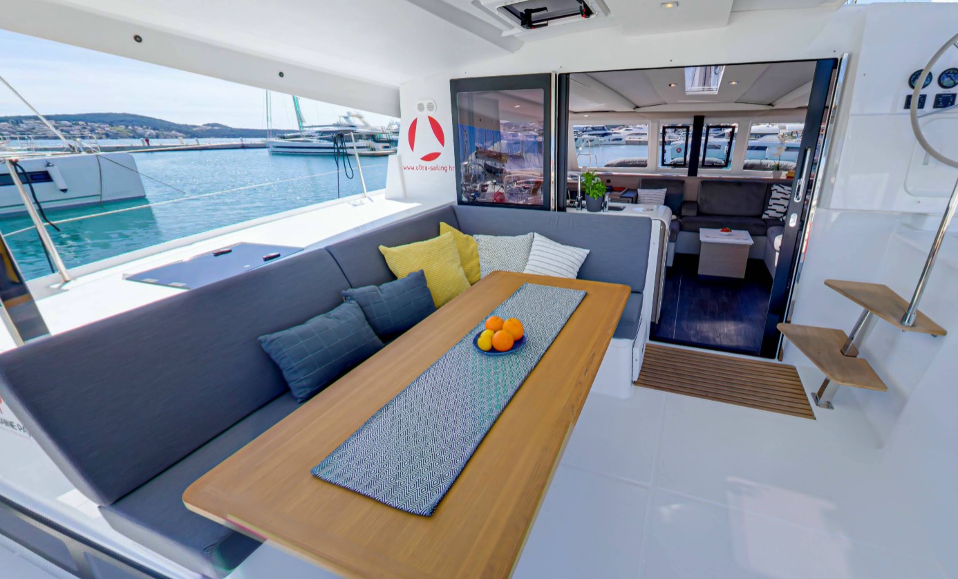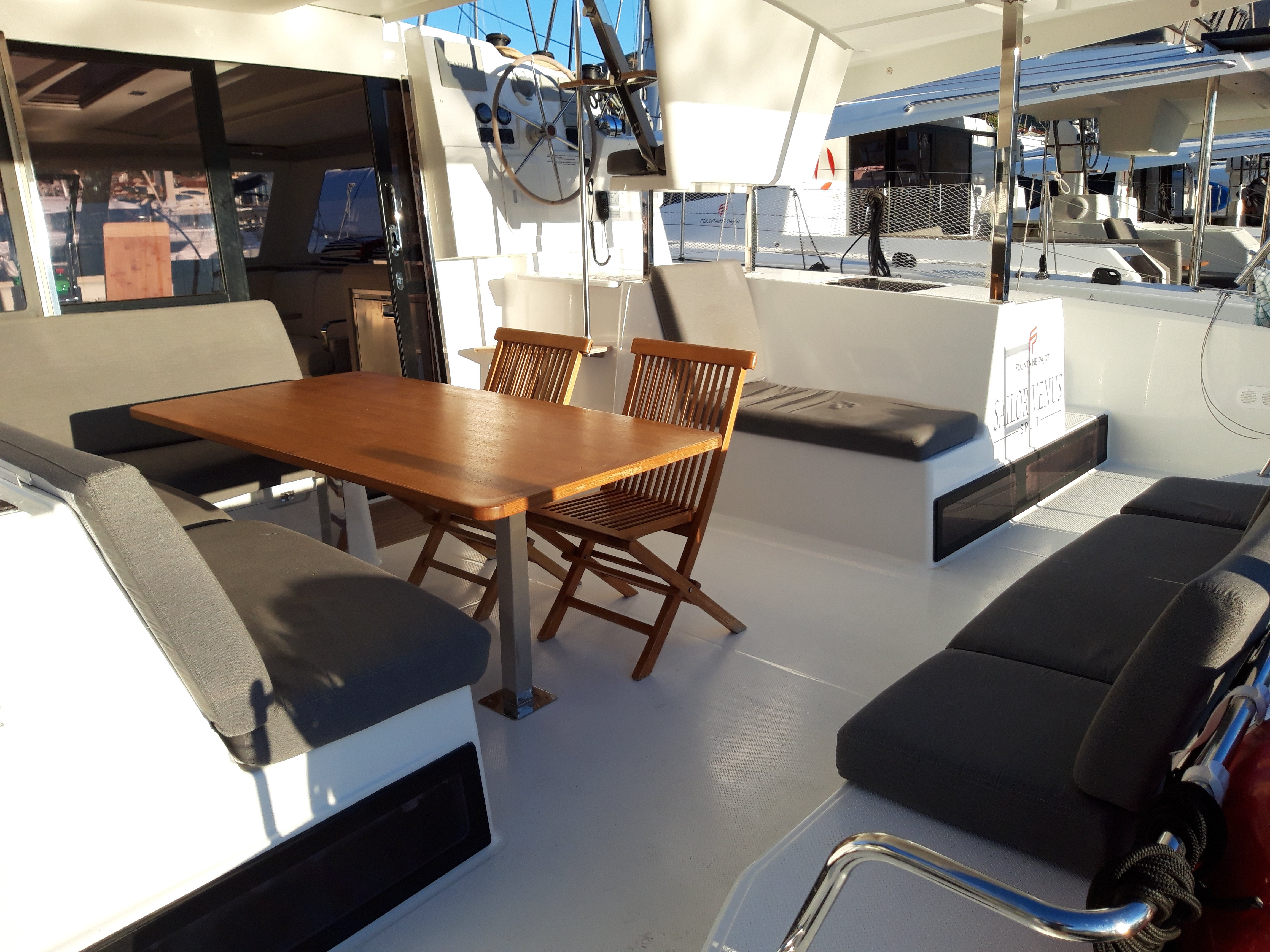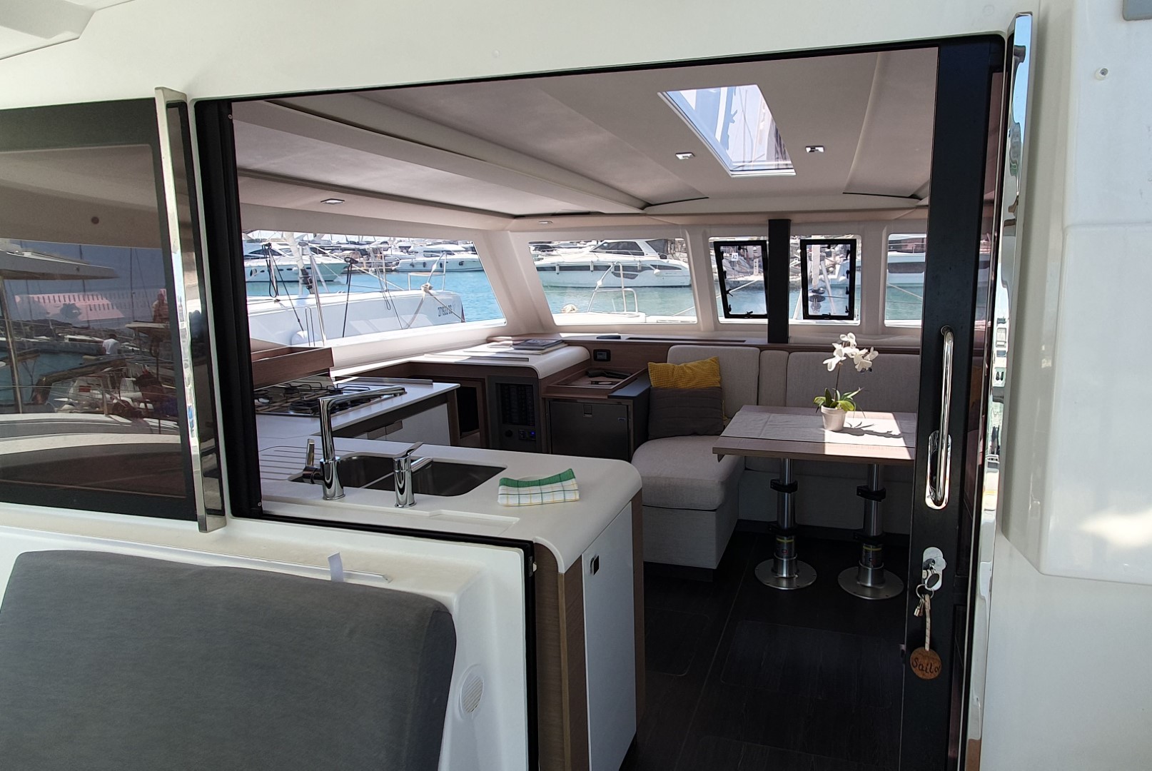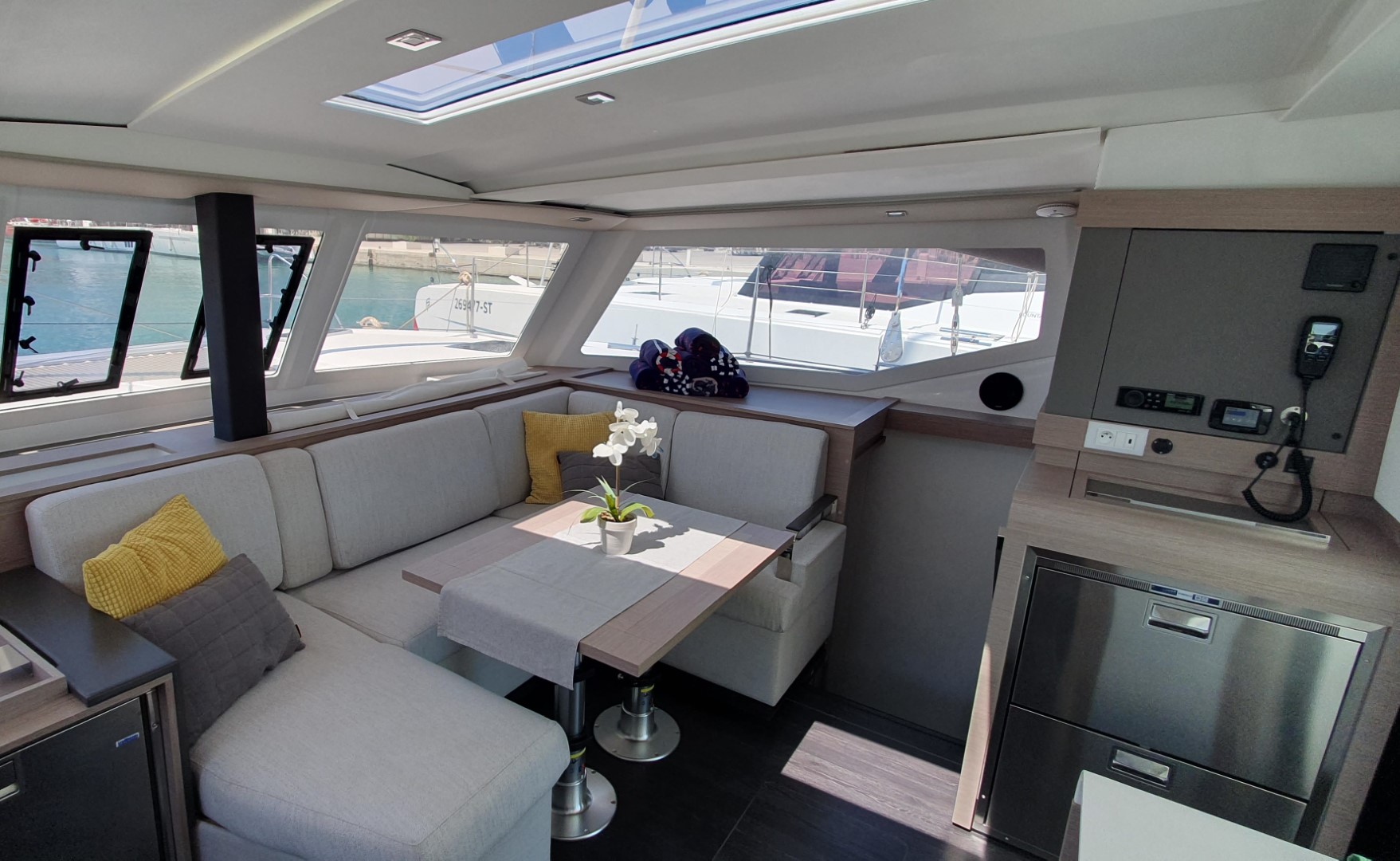 | Inside | FUSION Sound System, Gasherd mit Backofen, Inverter 12V/220V, Kaffeemaschine, Klimaanlage (Landstrom), Kühlschrank mit Gefrierfach, Ladegerät, Moskitonetze, Pantryausstattung, Radio mit CD und USB, Warmwasser |