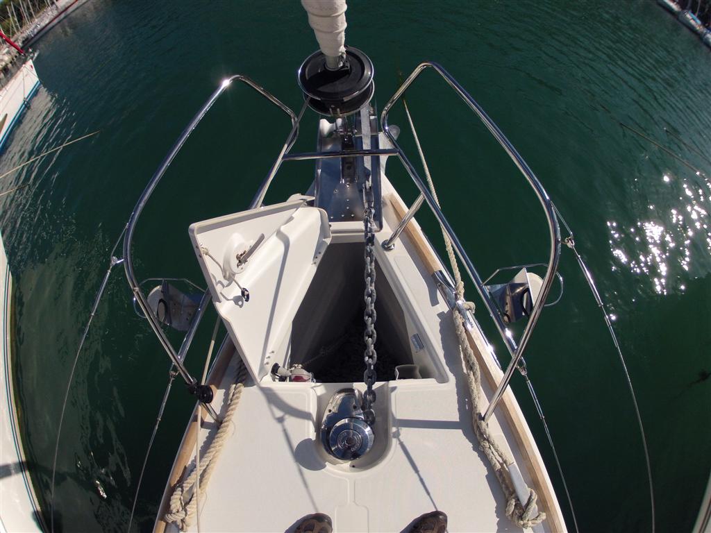 | Outside | Anker mit Kette, Ankerwinsch, Biminitop, Bootshaken, Cockpitdusche, Cockpitlautsprecher, Deckbürste, Dieselkanister , elektr. Ankerwinsch, Fender, Fernsteuerung für elektr. Ankerwinsch, Gangway, Kunststoff-Eimer (Pütz), Sprayhood, Wasserkanister , Wasserschlauch, Windex |