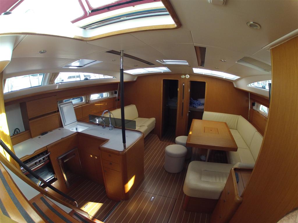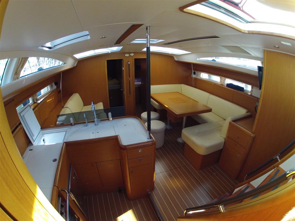 | Inside | Borduhr, elektr. Druckwasserpumpe, Heizung, Klimaanlage (Landstrom), Kühlschrank, Ladegerät, Landstromkabel, LCD Fernseher + DVD, Luftpumpe für Beiboot, Radio mit CD oder MP3, Salontisch absenkbar, Trichter, Warmwasser |