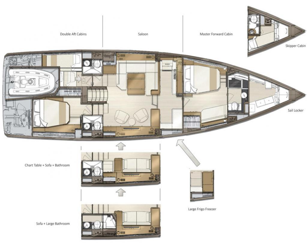 | Kabinen: | 3 | Kojen: | 6+1 |