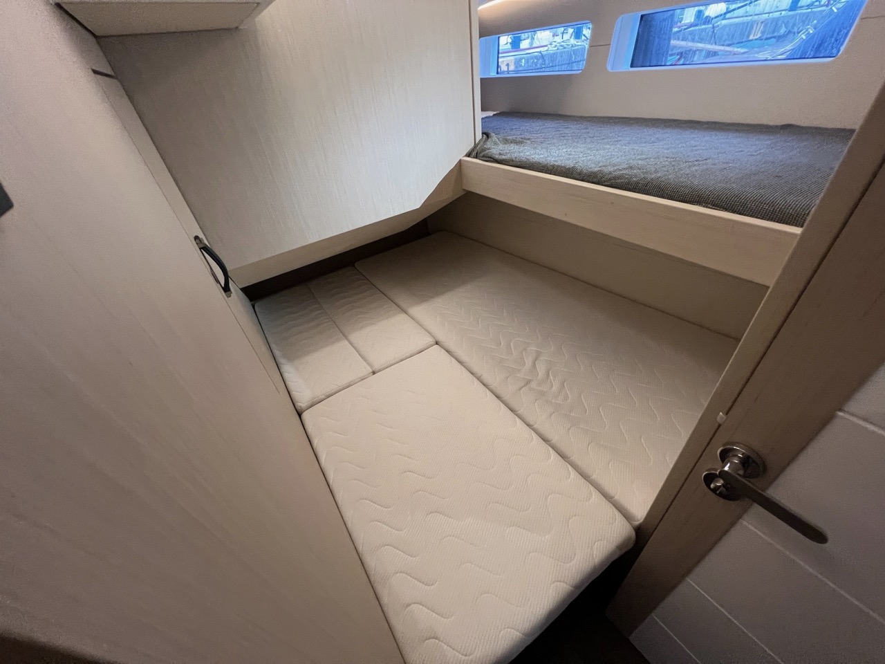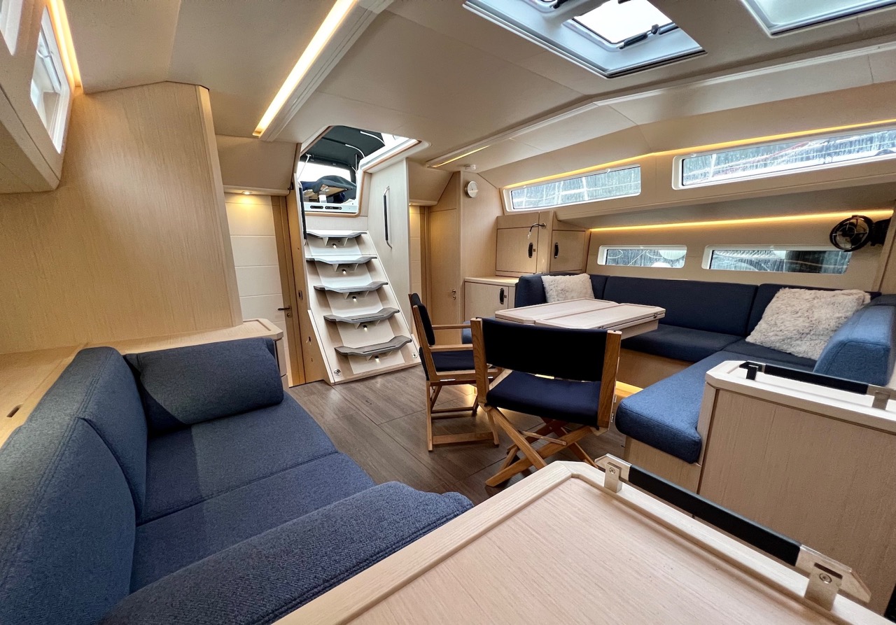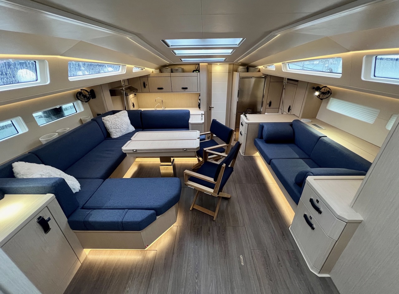 | Safety | AIS Empfänger, Autopilot, Bootsmannstuhl, Bordapotheke, Bordwerkzeug, Bugstrahlruder, Feststoffschwimmwesten, Feuerlöscher, Handbilgepumpe, Lifebelts, Nebelhorn, Notpinne, Notsignale, Radarreflektor, Rettungsinsel, Rettungswesten, Taschenlampe, UKW-Funk m. DSC, Zweitanker |