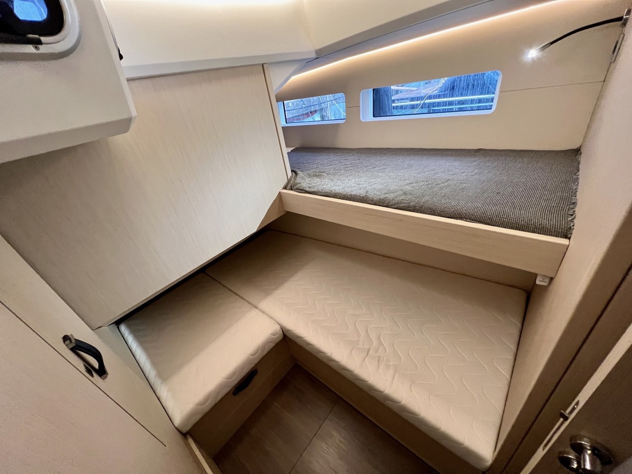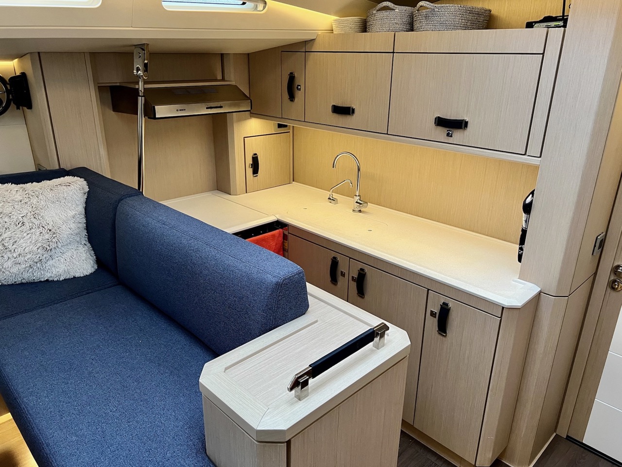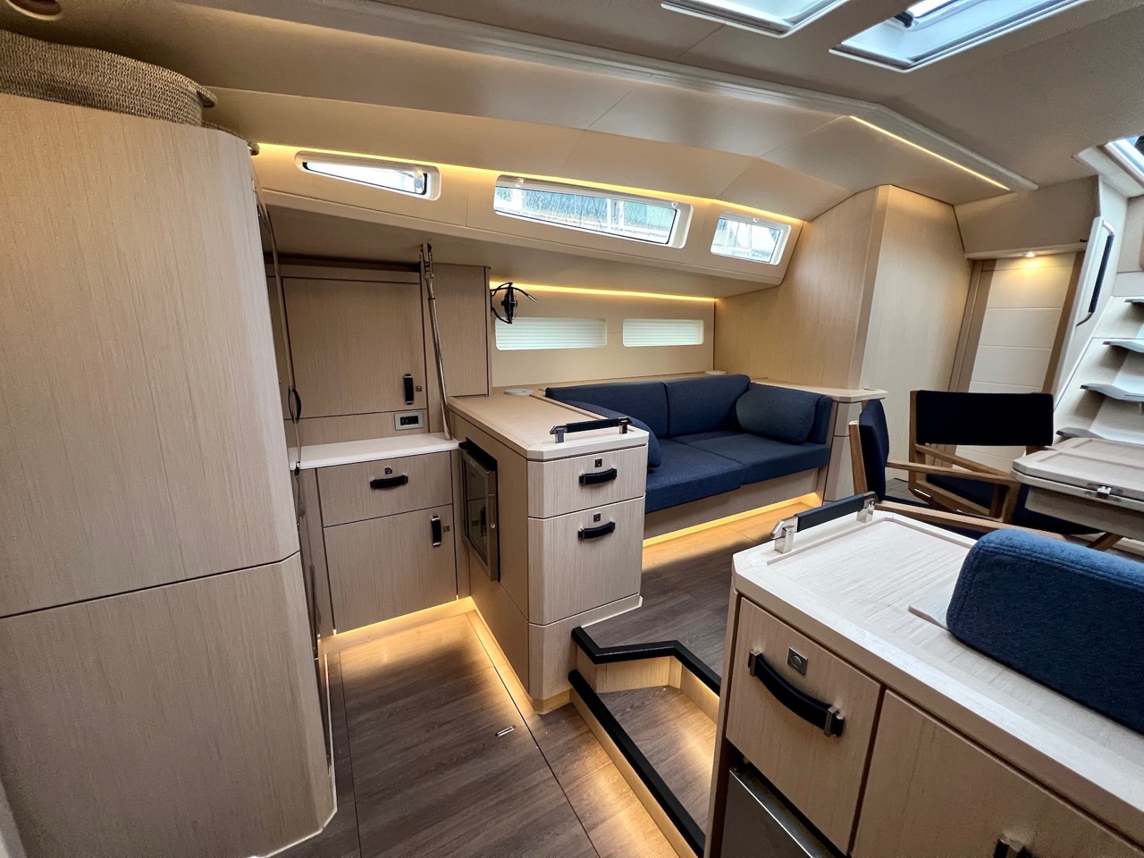 | Safety | AIS Empfänger, Autopilot, Bootsmannstuhl, Bordapotheke, Bordwerkzeug, Bugstrahlruder, Feststoffschwimmwesten, Feuerlöscher, Handbilgepumpe, Lifebelts, Nebelhorn, Notpinne, Notsignale, Radarreflektor, Rettungsinsel, Rettungswesten, Taschenlampe, UKW-Funk m. DSC, Zweitanker |